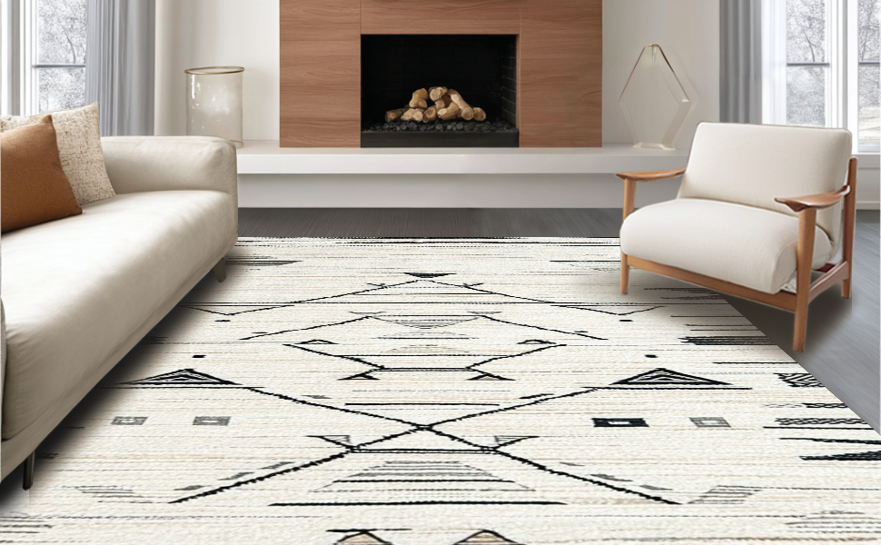 Ultra Soft Area Rug, Non Slip, Stain Resistant, Washable Area Rugs for Living Room, Bedroom, Elegant Geometric Textured Arrangement(Beige) Overview: