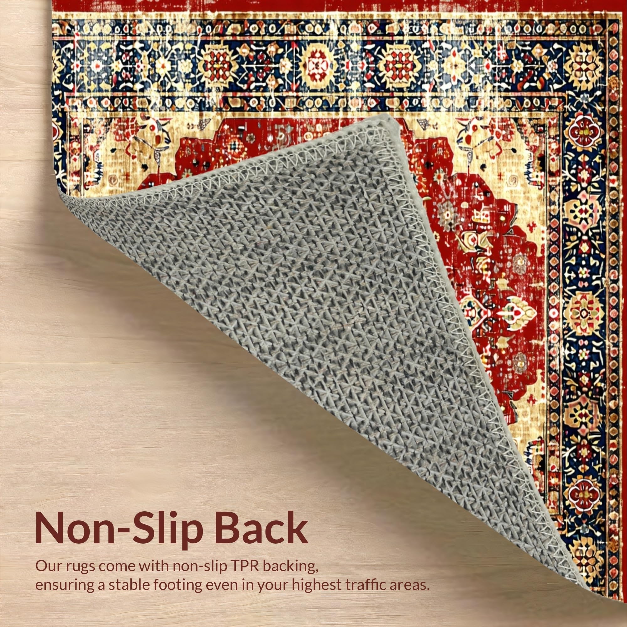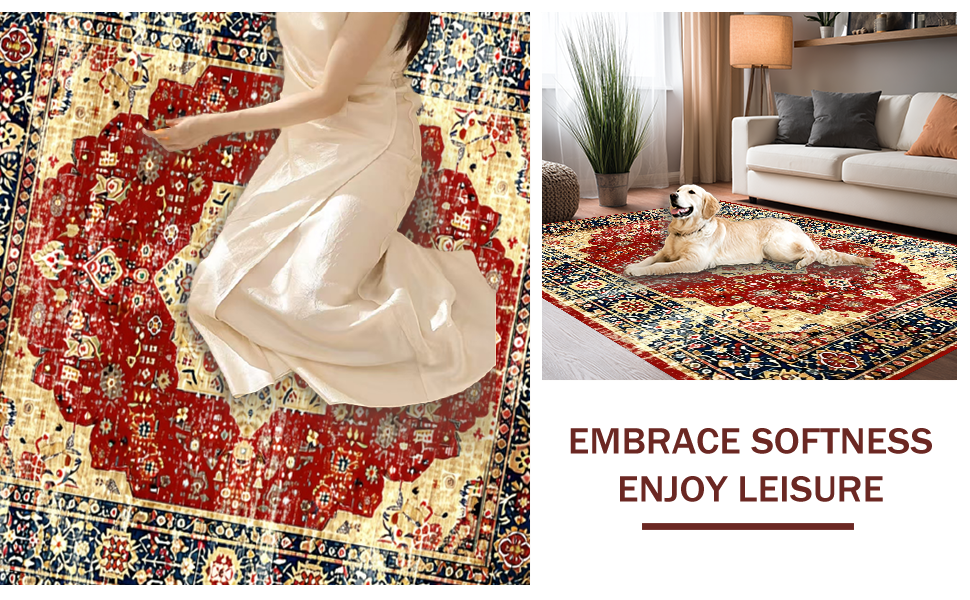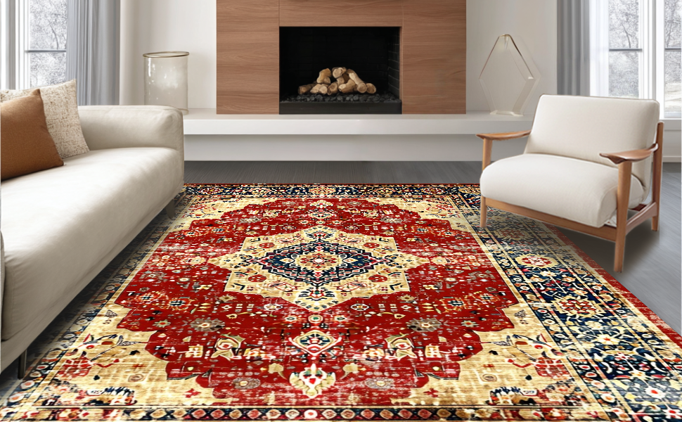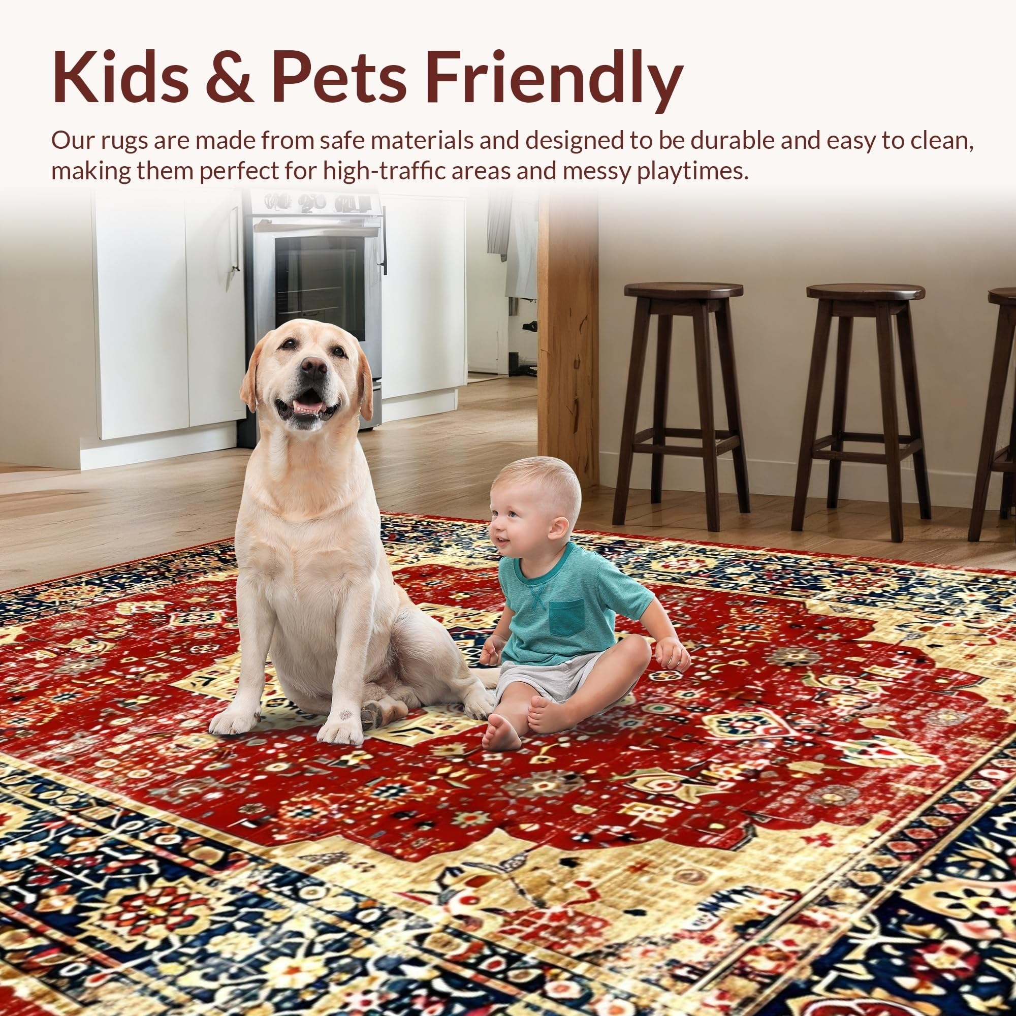 Ultra Soft Area Rug, Non Slip, Stain Resistant, Washable Area Rugs for Living Room, Bedroom, Elegant Geometric Tiled Pattern(Red) Overview: