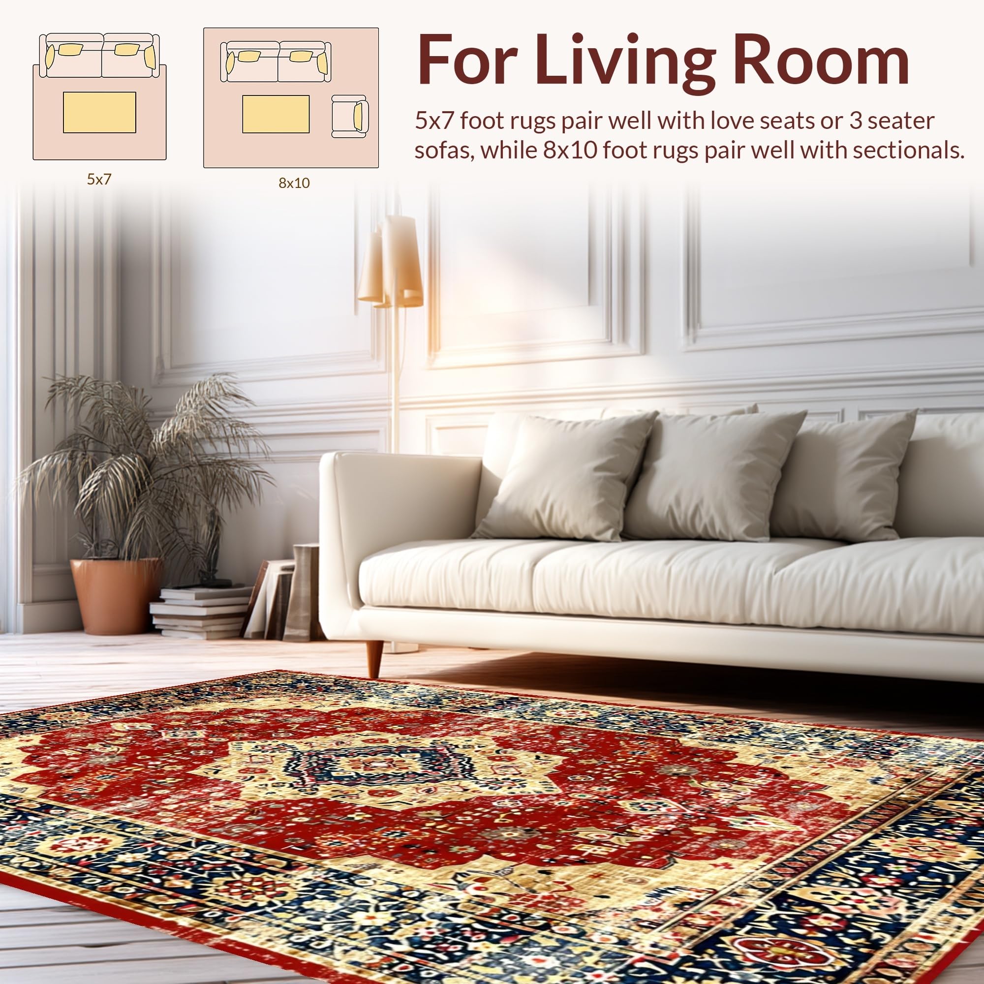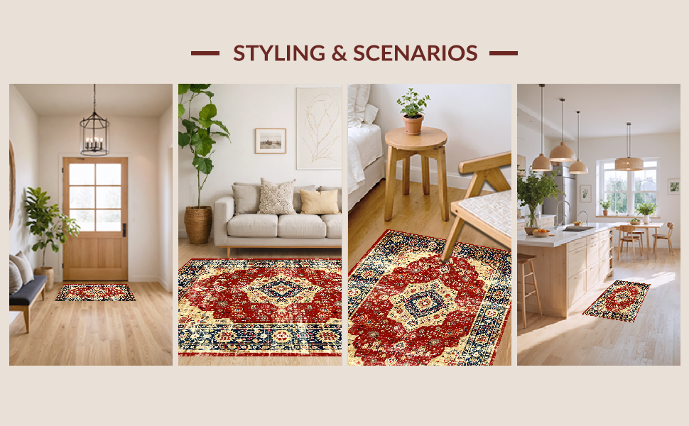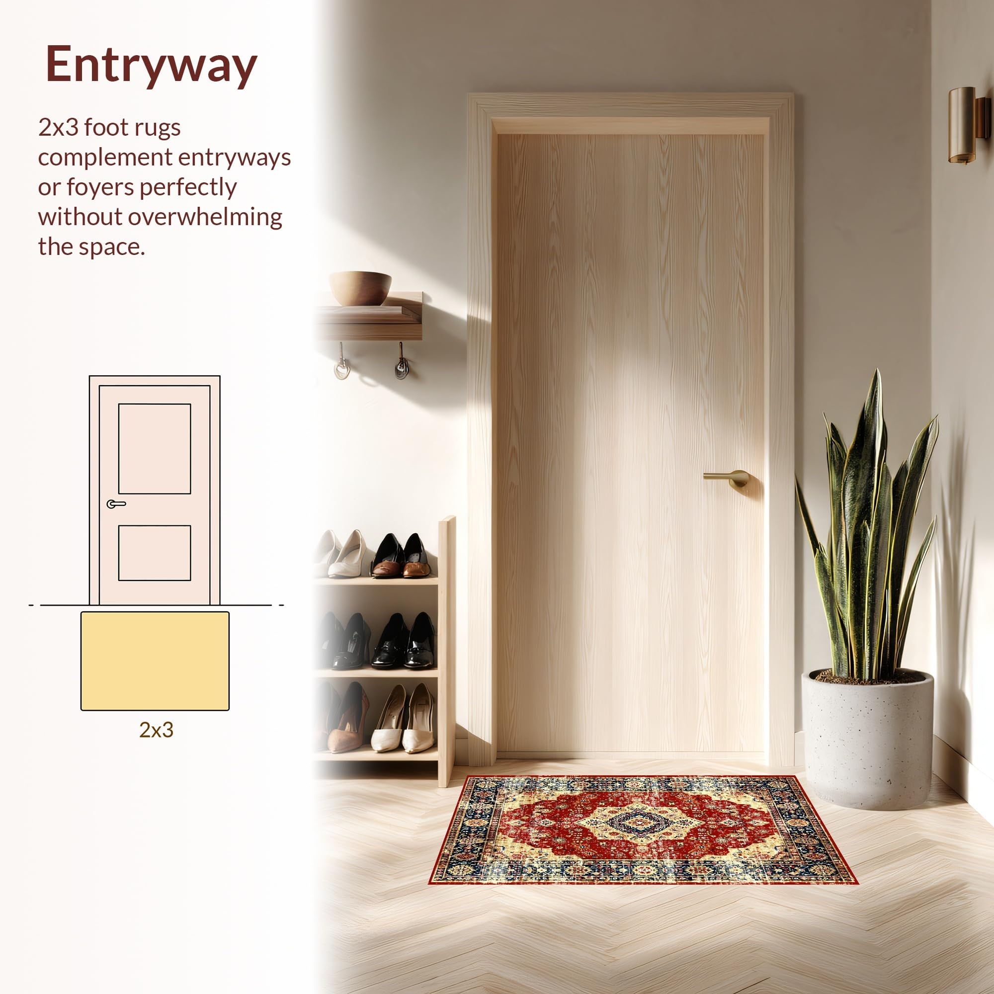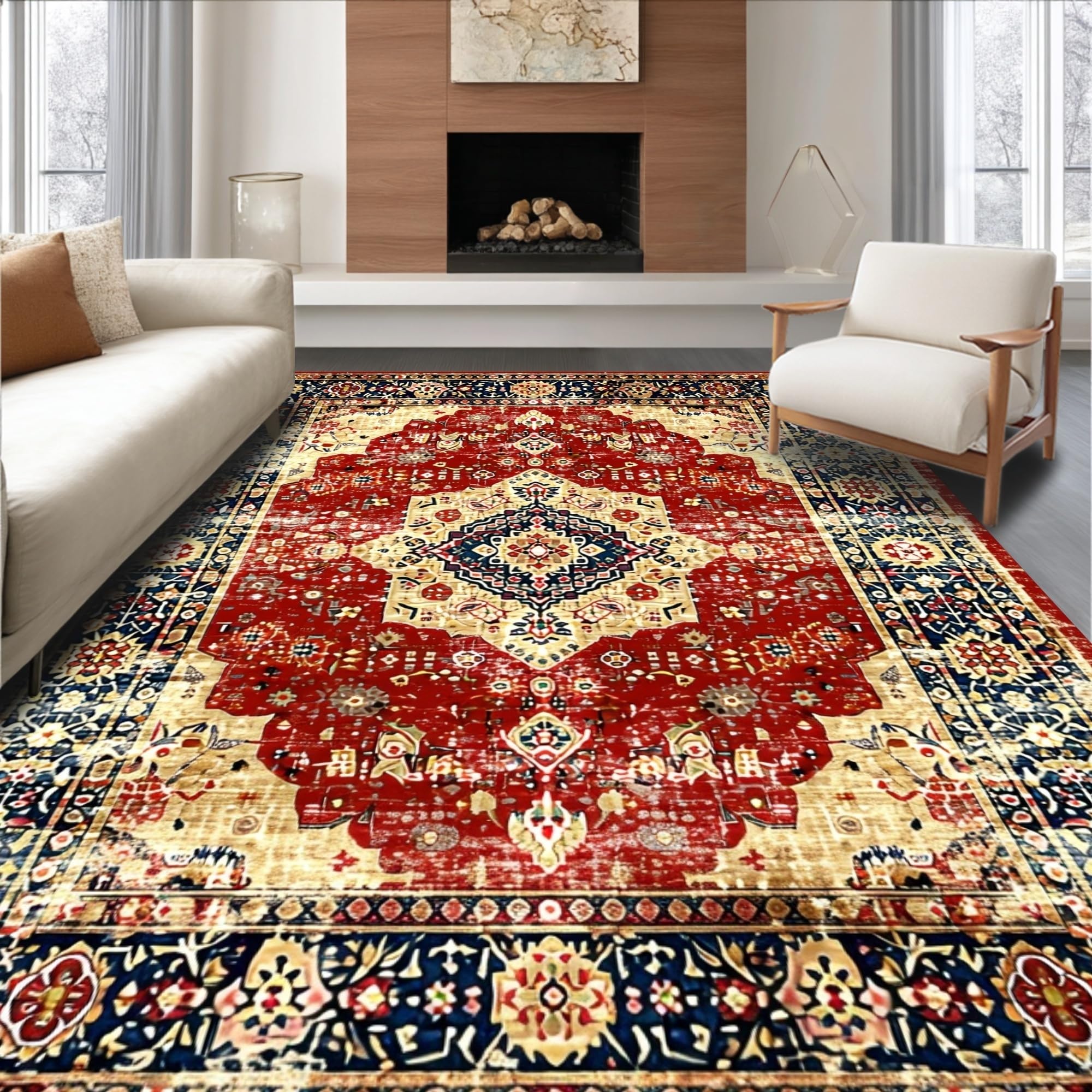 Ultra Soft Area Rug, Non Slip, Stain Resistant, Washable Area Rugs for Living Room, Bedroom, Elegant Geometric Tiled Pattern(Red) Overview: