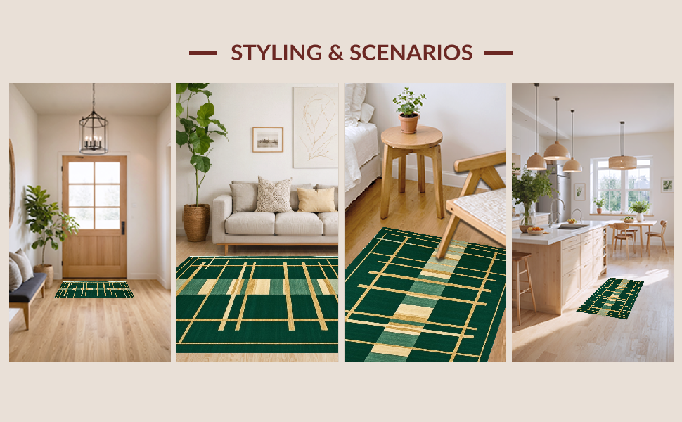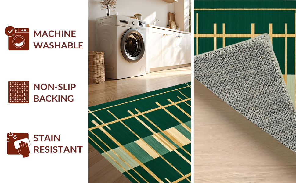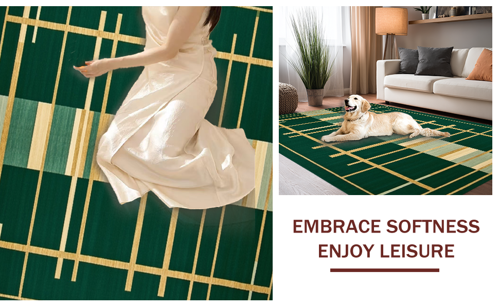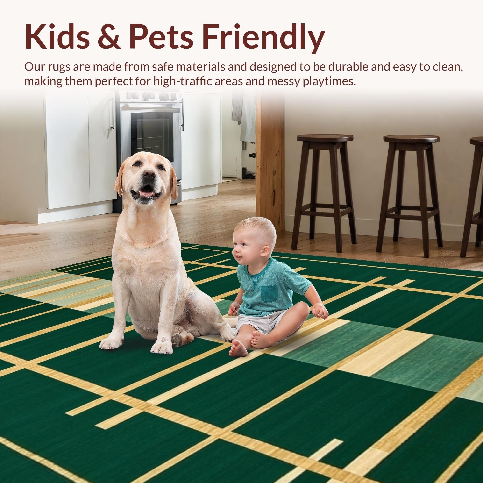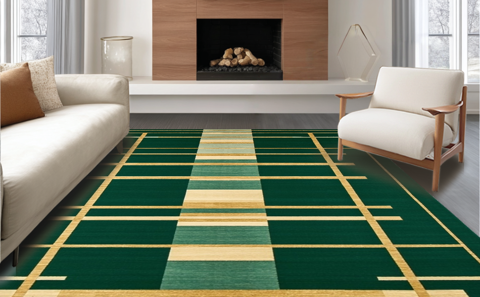 Ultra Soft Area Rug, Non Slip, Stain Resistant, Washable Area Rugs for Living Room, Bedroom, Elegant Gray and Gold Harmony(Green) Overview:
