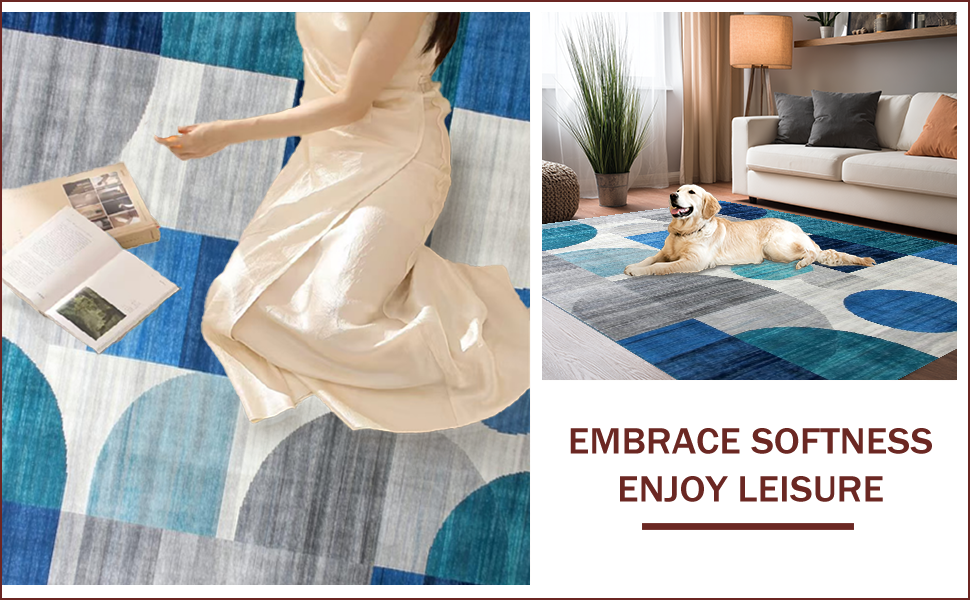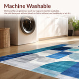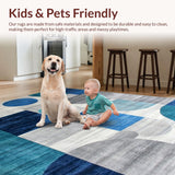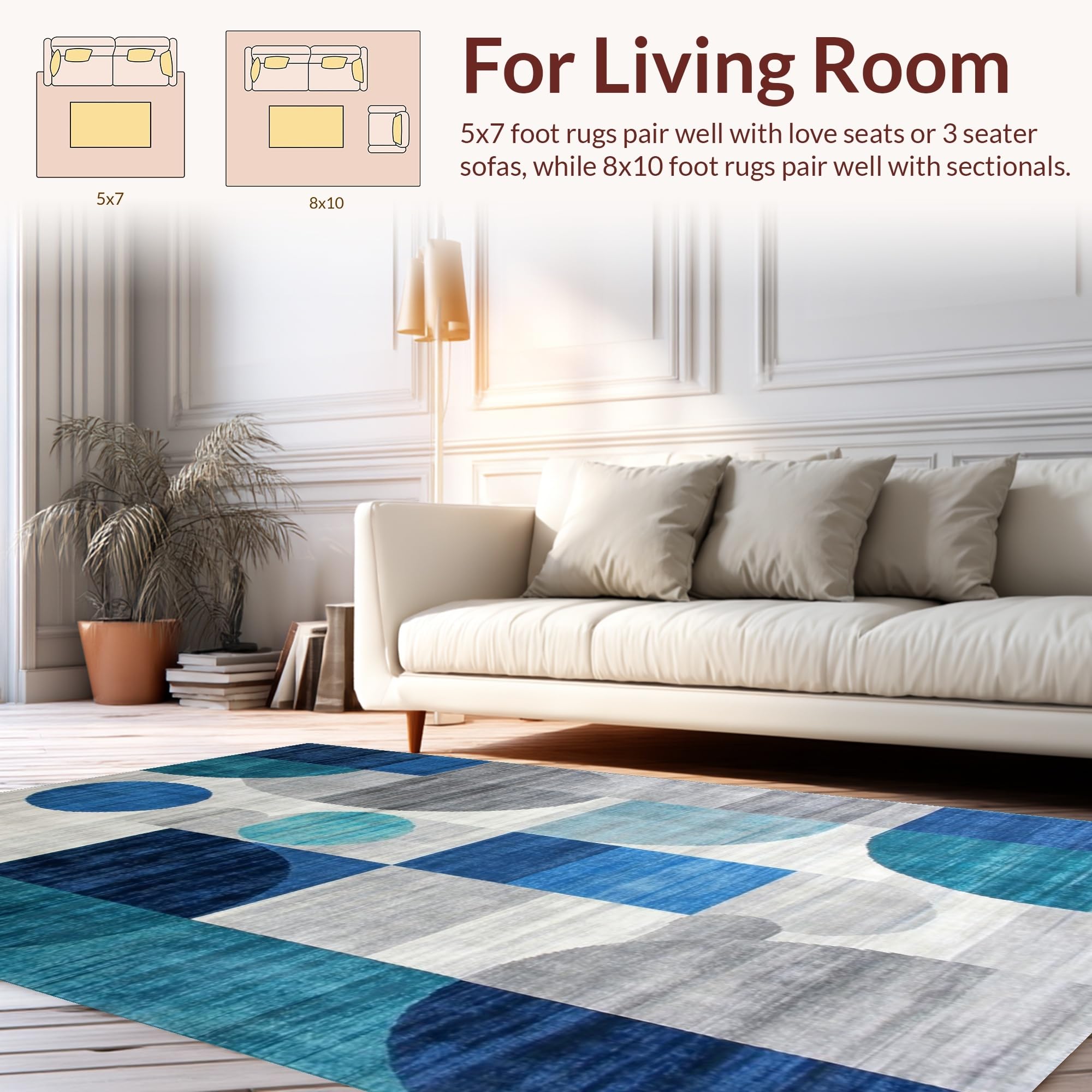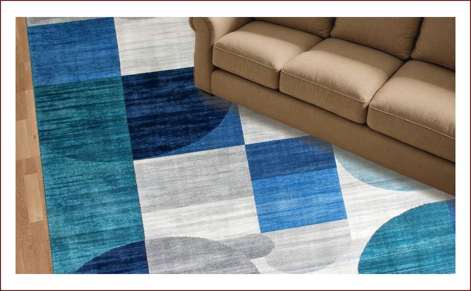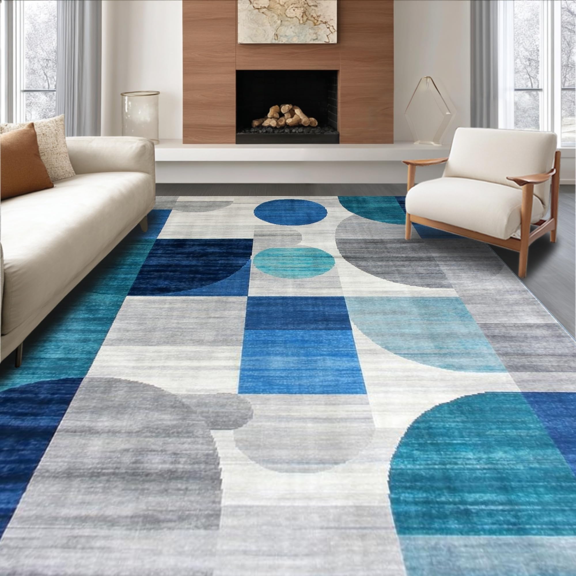 Ultra Soft Area Rug, Non Slip, Stain Resistant, Washable Area Rugs for Living Room, Bedroom, Elegant Gray Geometric Motif(Blue) Overview: