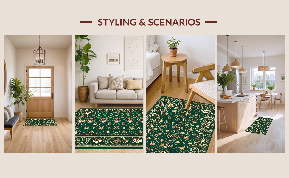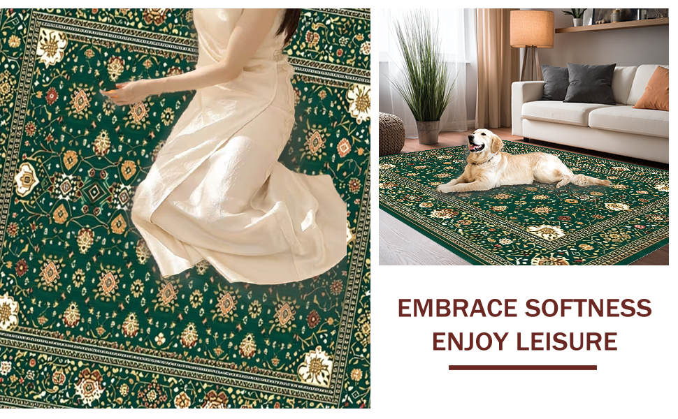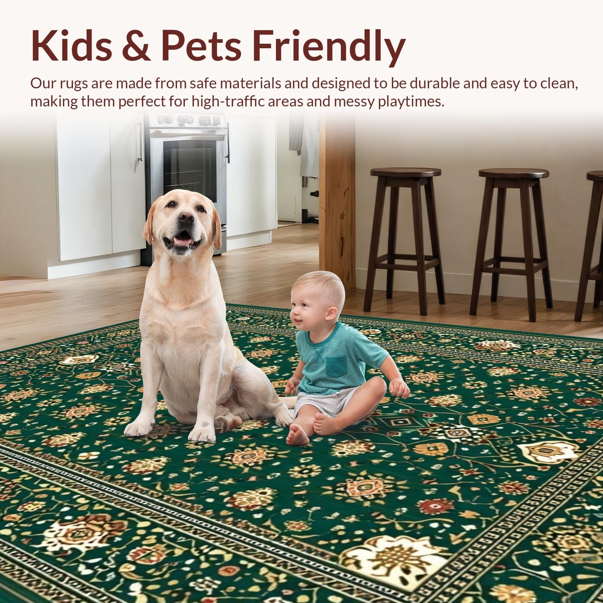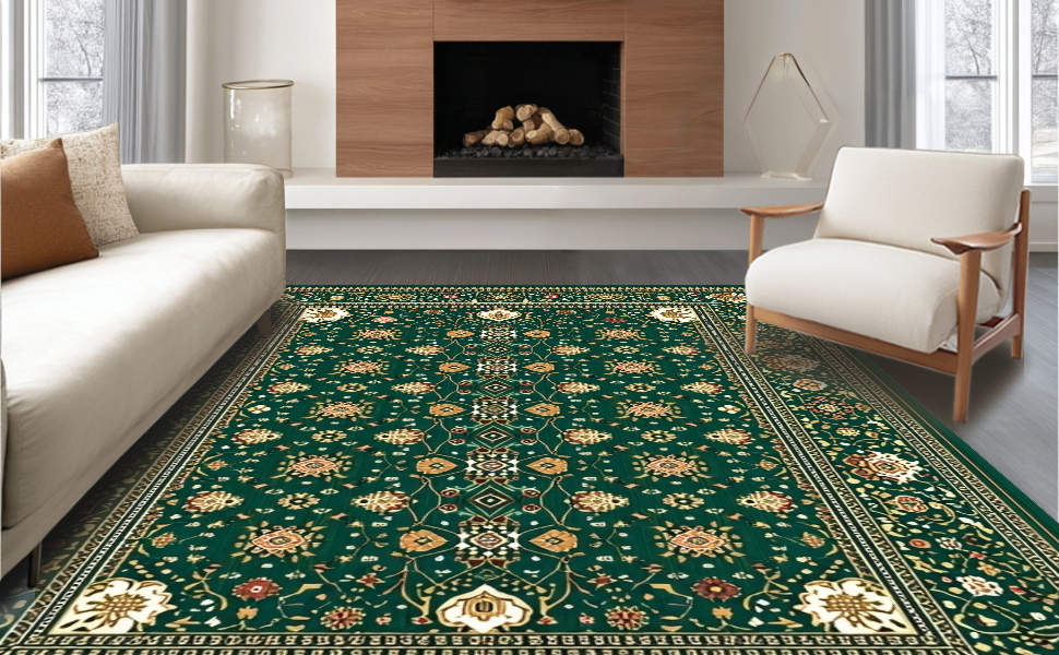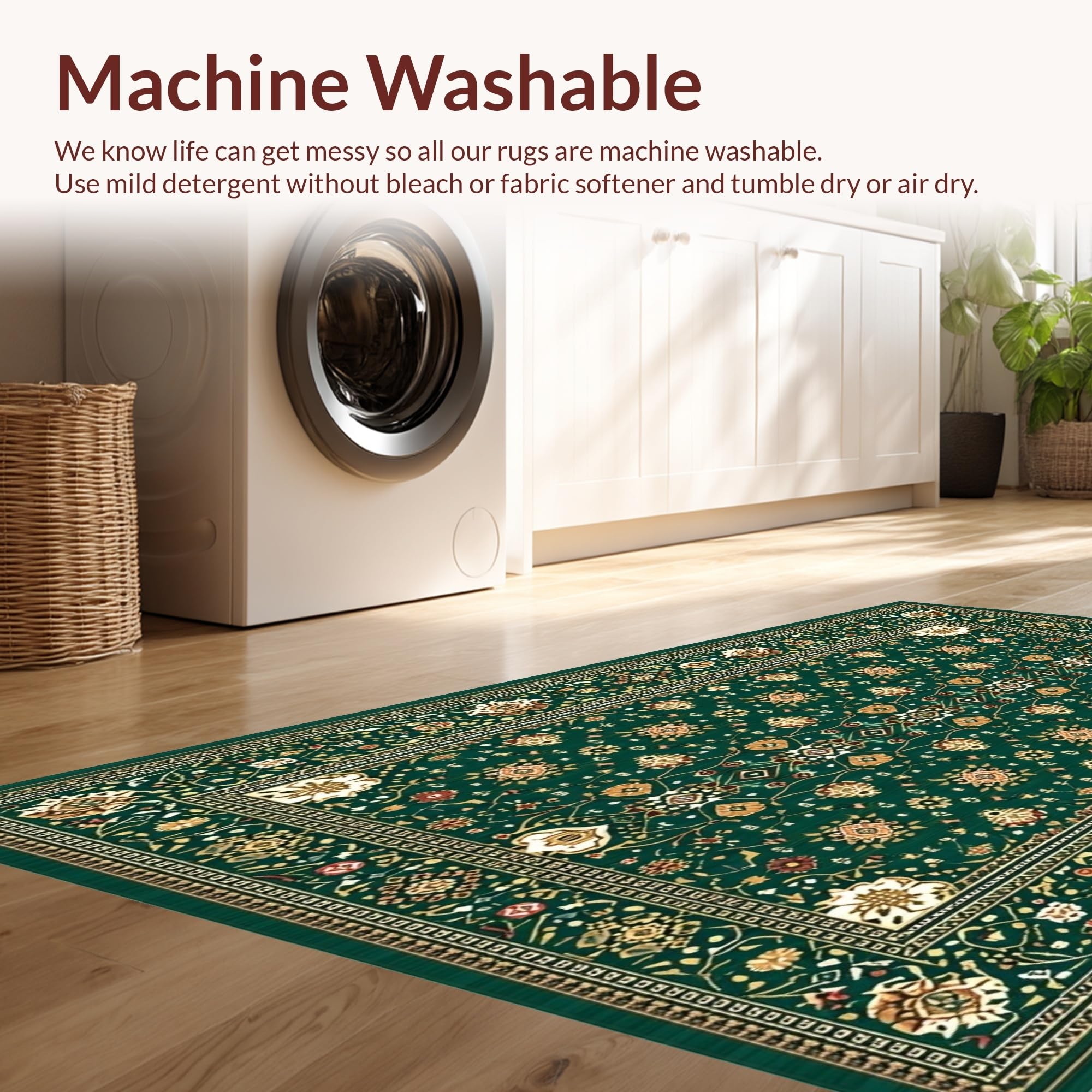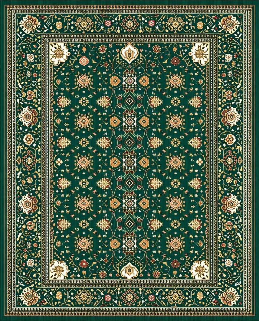 Ultra Soft Area Rug, Non Slip, Stain Resistant, Washable Area Rugs for Living Room, Bedroom, Elegant Green Gold Ornate Design(Green) Overview: