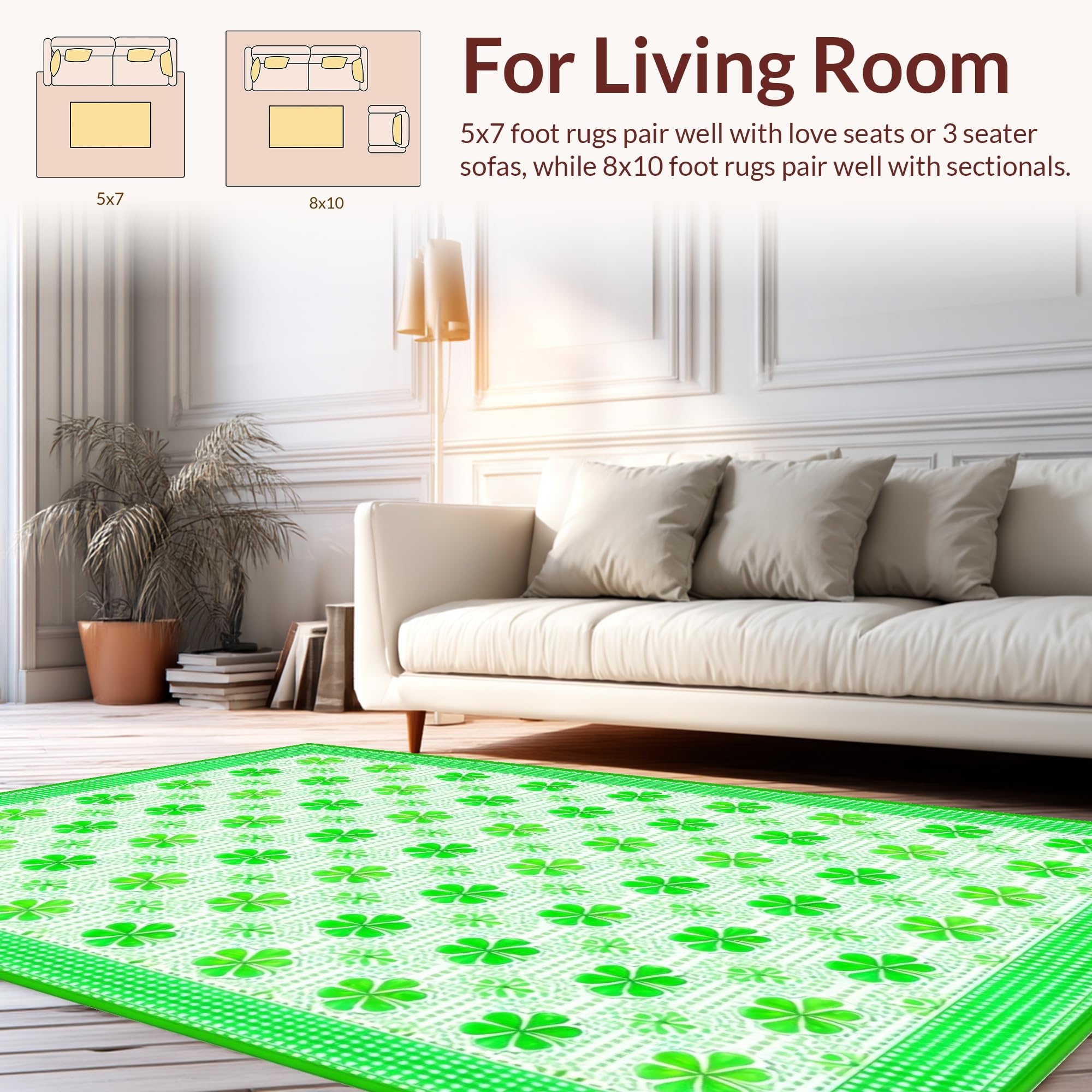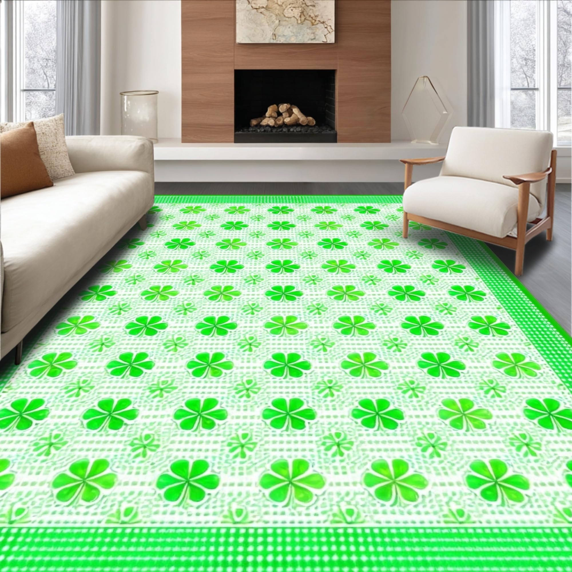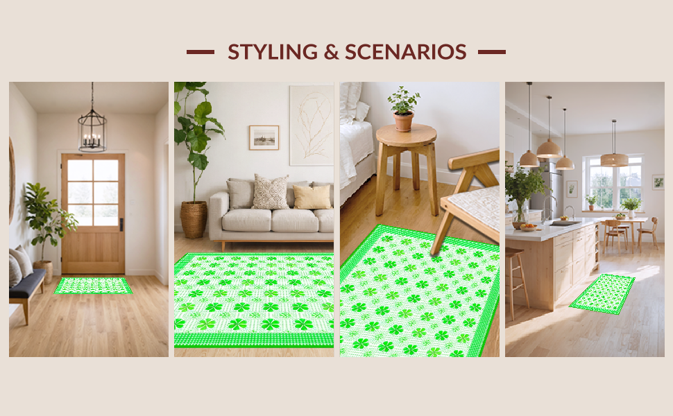 Ultra Soft Area Rug, Non Slip, Stain Resistant, Washable Area Rugs for Living Room, Bedroom, Elegant Green Trellis Design(Green) Overview: