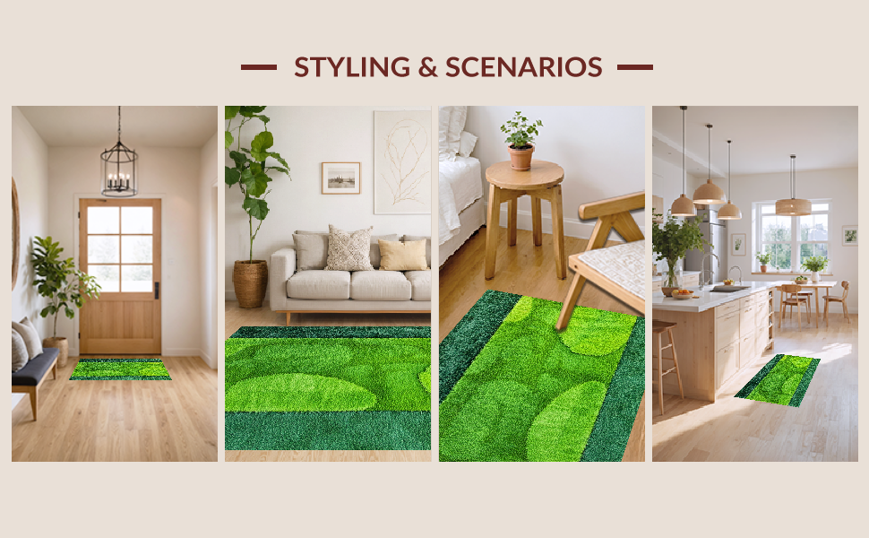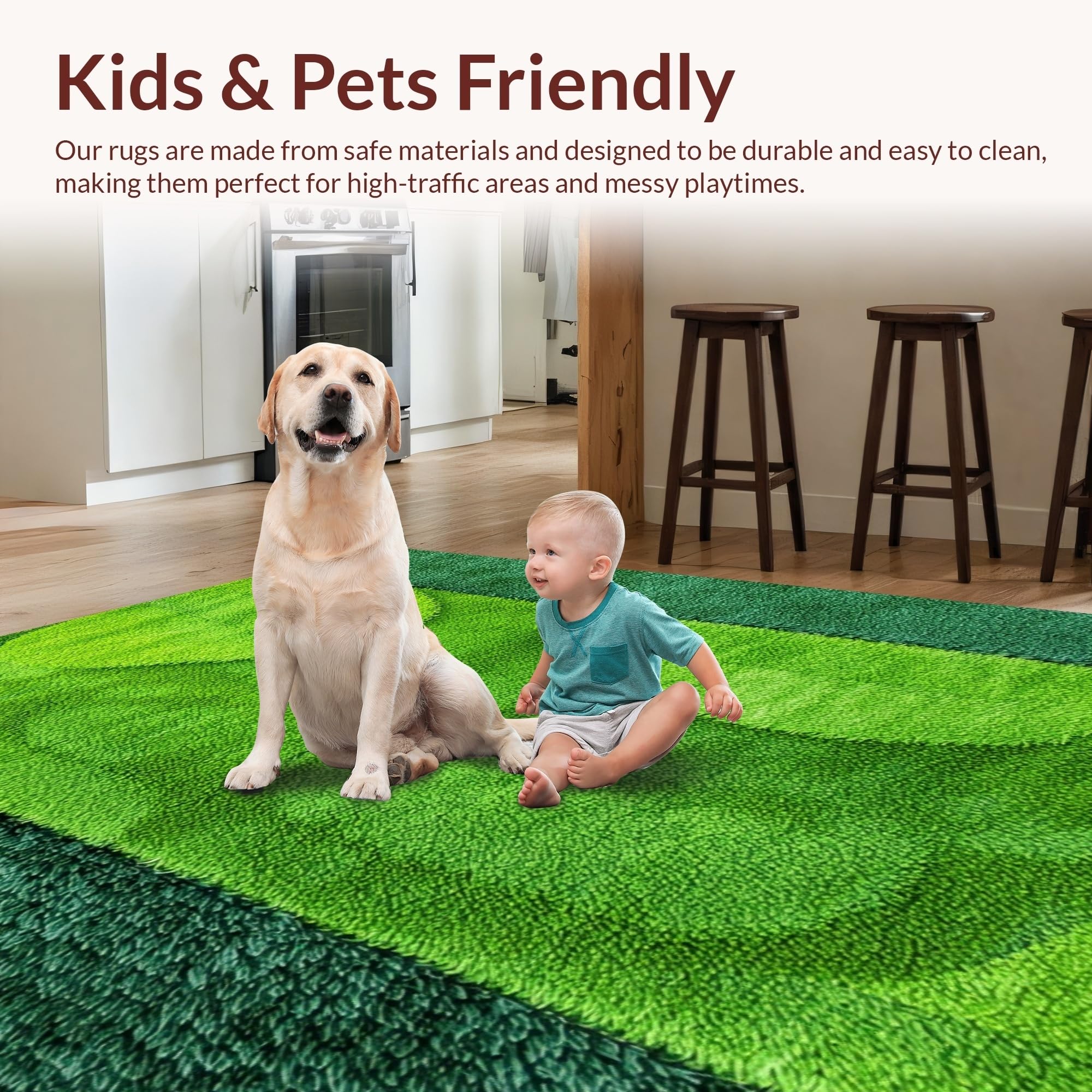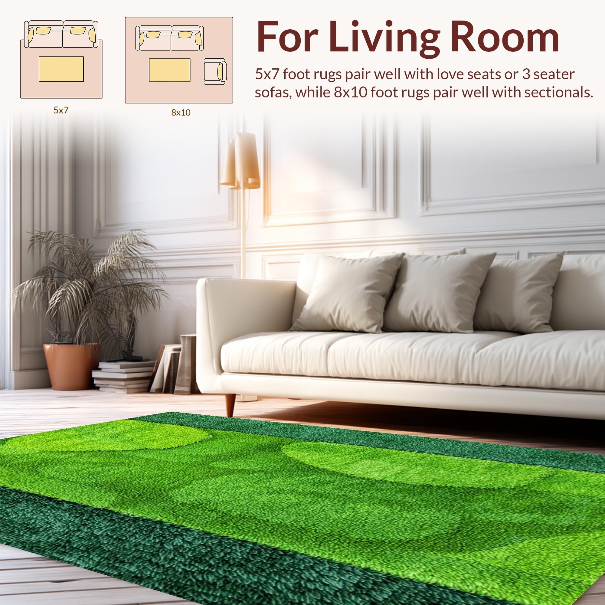 Ultra Soft Area Rug, Non Slip, Stain Resistant, Washable Area Rugs for Living Room, Bedroom, Elegant Greenery Abstract Print(Green) Overview: