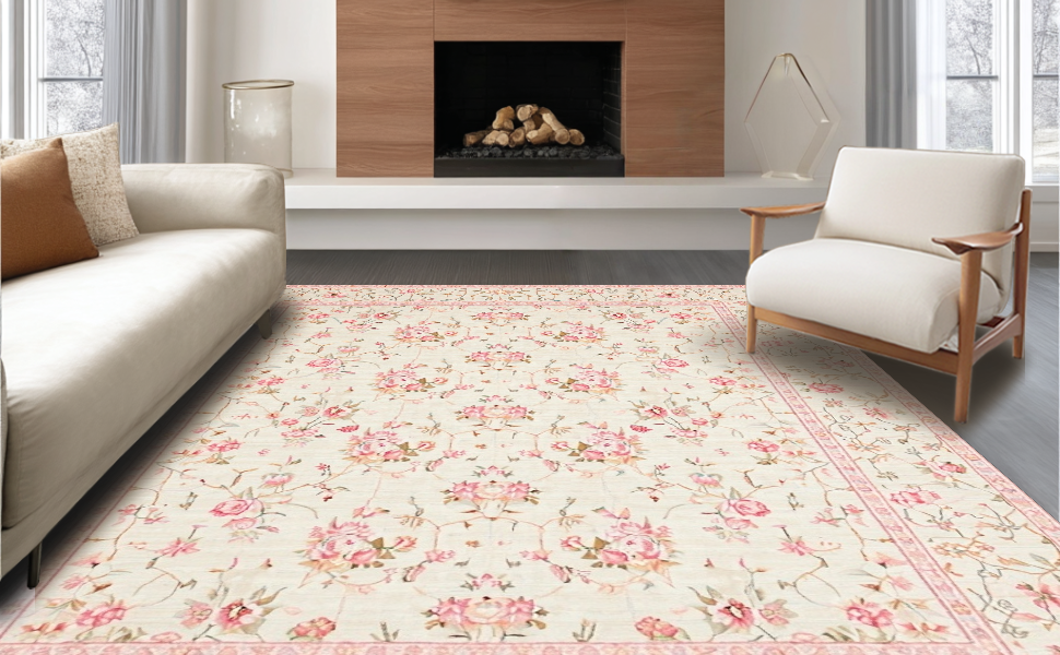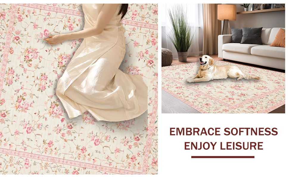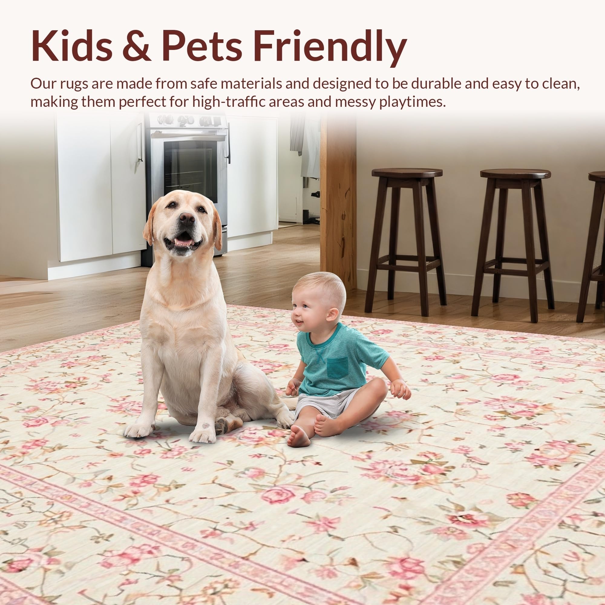 Ultra Soft Area Rug, Non Slip, Stain Resistant, Washable Area Rugs for Living Room, Bedroom, Elegant Greenery Inspired Decor(Ivory) Overview: