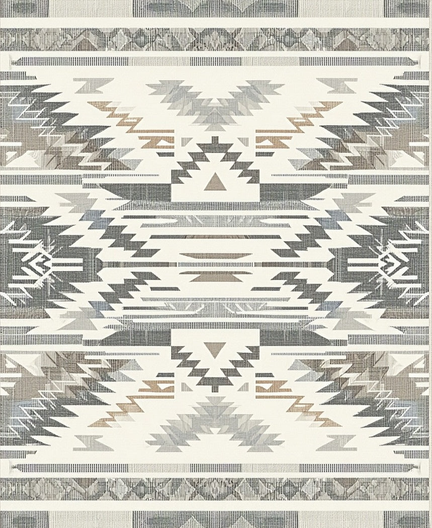 Elegant Greige Aztec Patterned With Layered Linear And Chevron Details(Gray)