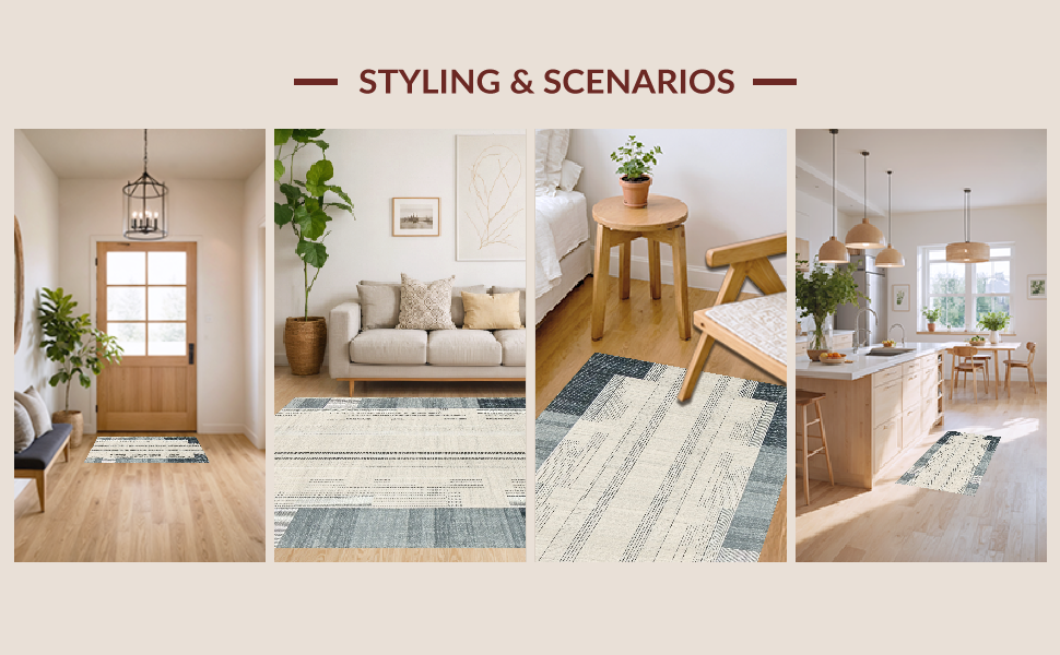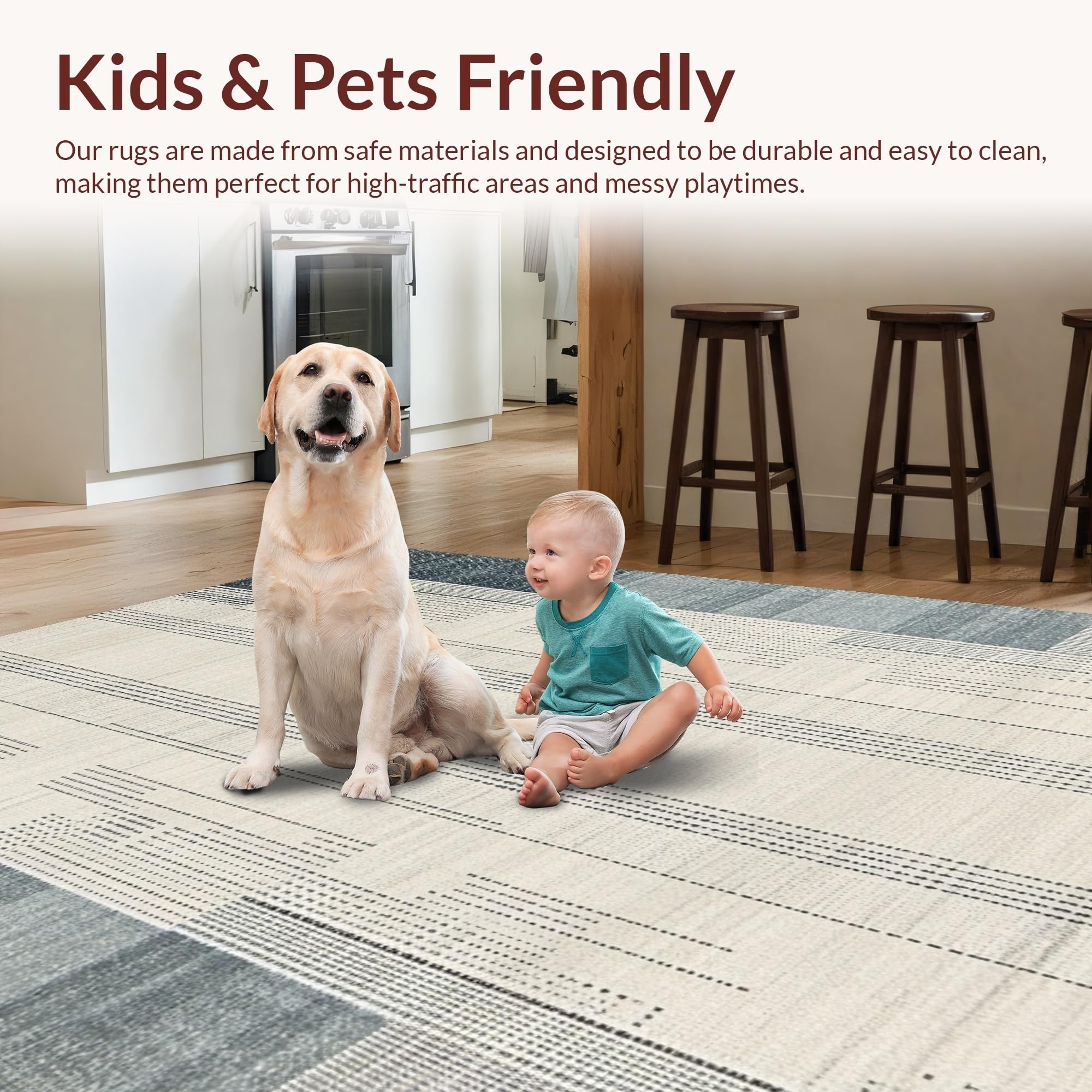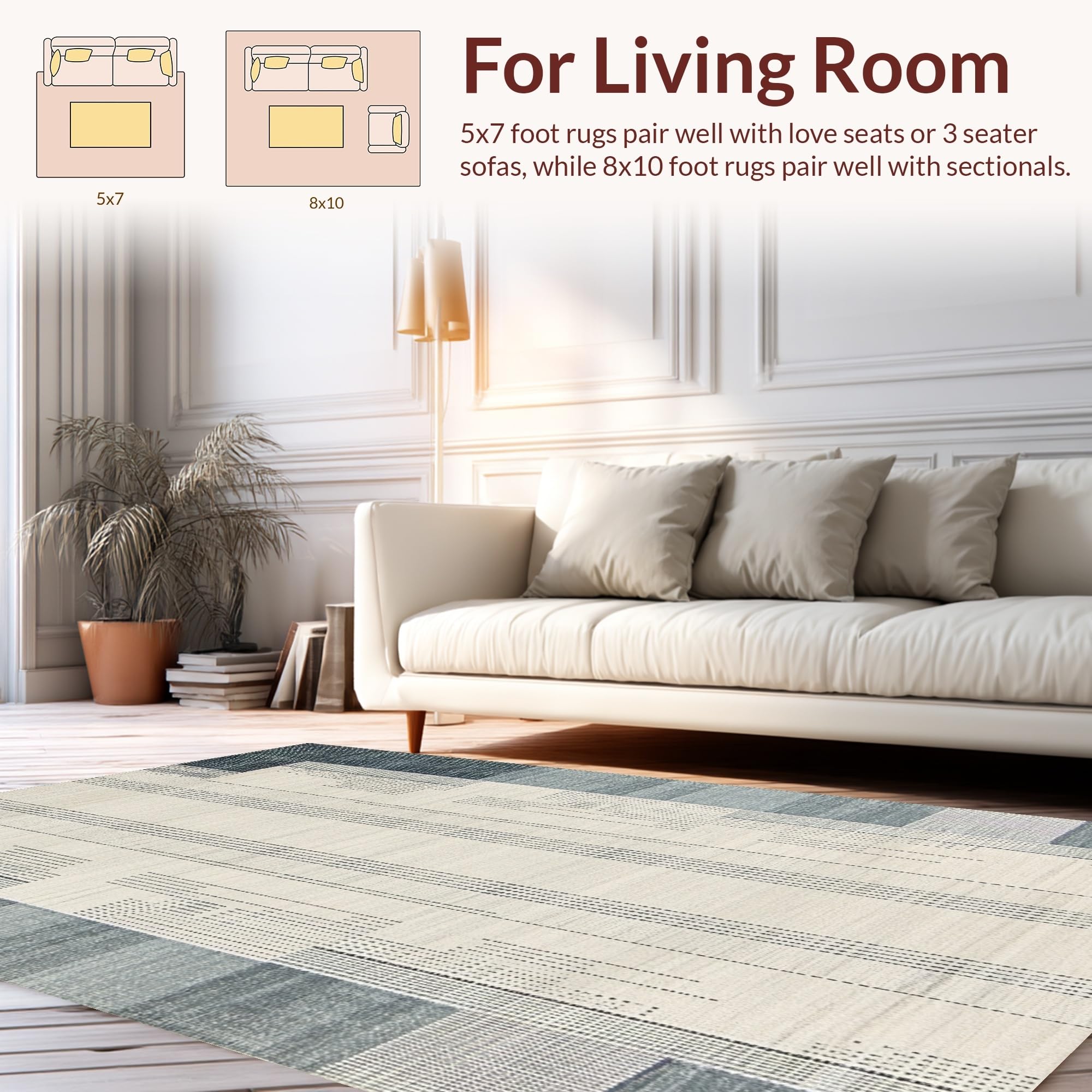 Ultra Soft Area Rug, Non Slip, Stain Resistant, Washable Area Rugs for Living Room, Bedroom, Elegant Grey and White Rustic Aesthetic(Beige) Overview: