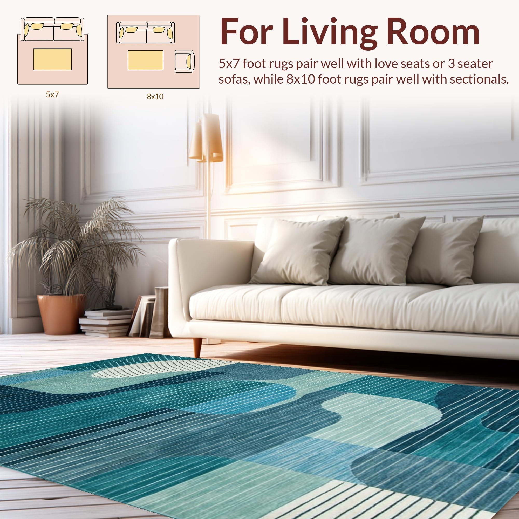 Ultra Soft Area Rug, Non Slip, Stain Resistant, Washable Area Rugs for Living Room, Bedroom, Elegant Grey Toned Minimalist Artwork(Blue) Overview: