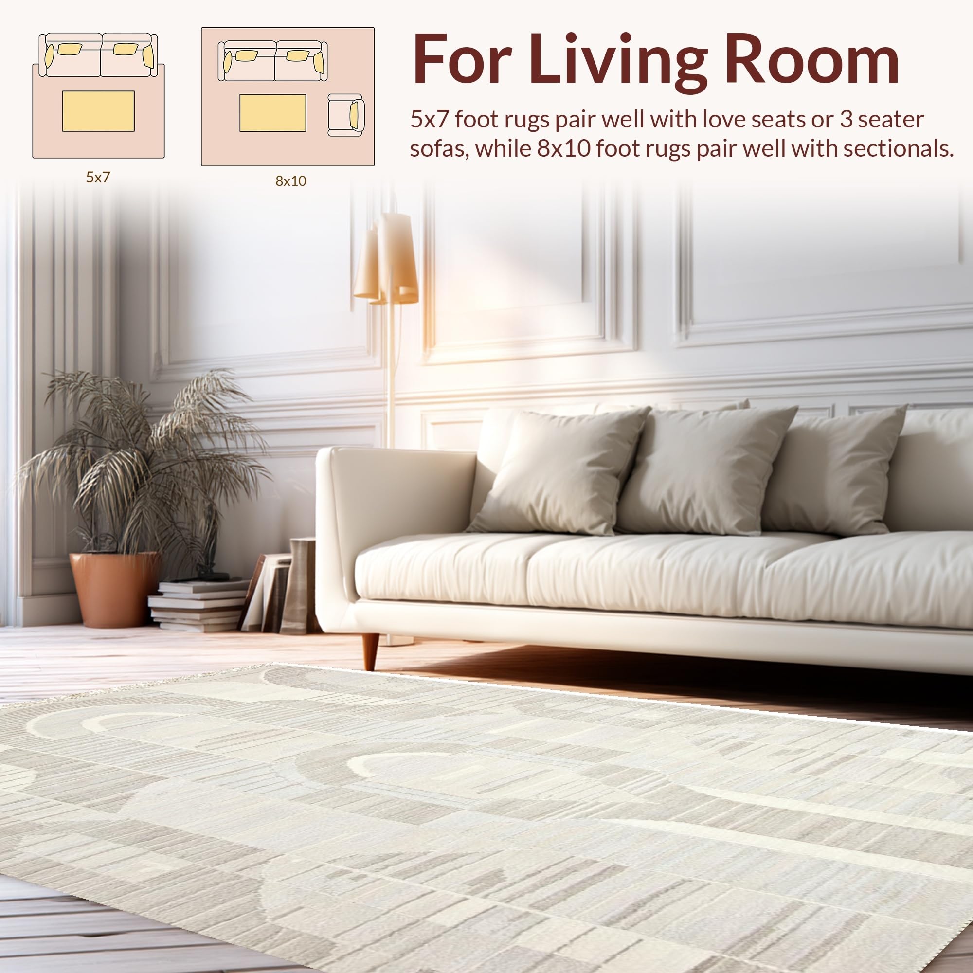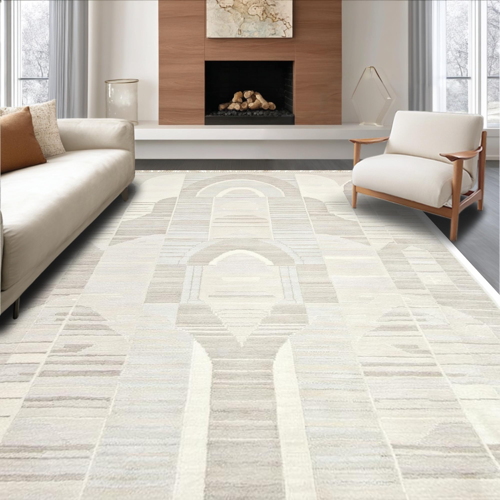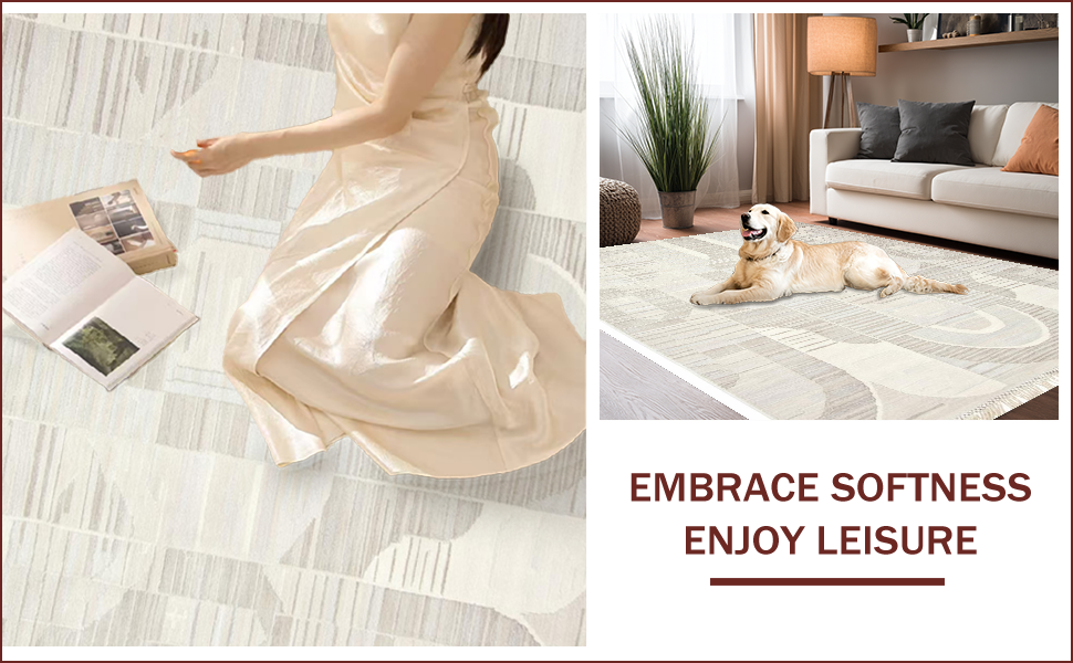 Ultra Soft Area Rug, Non Slip, Stain Resistant, Washable Area Rugs for Living Room, Bedroom, Elegant High-Low Geometric Aesthetic(Beige) Overview: