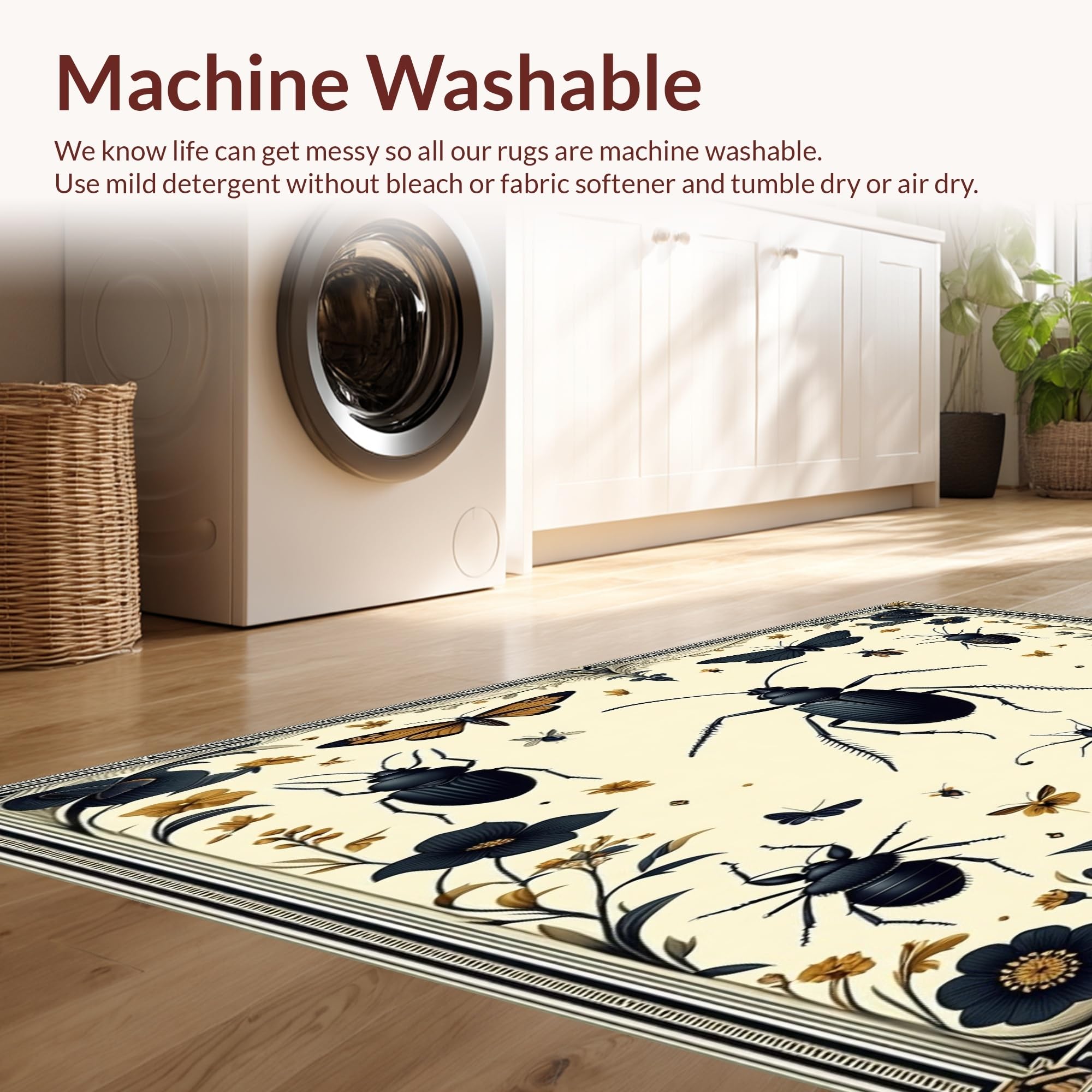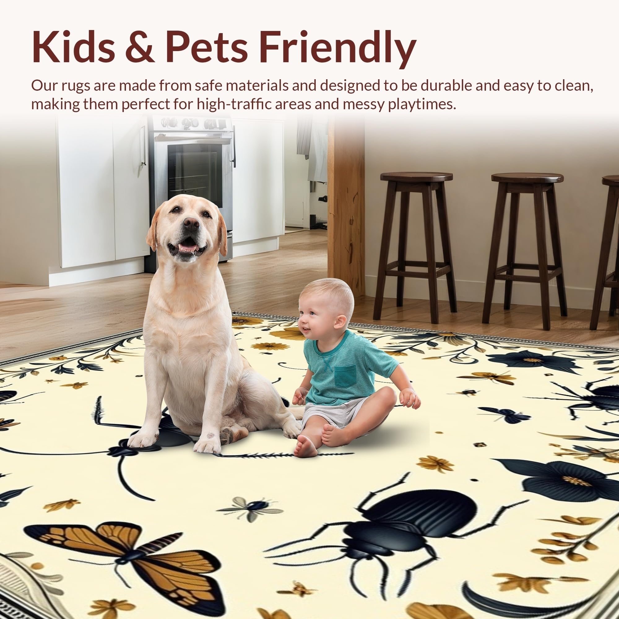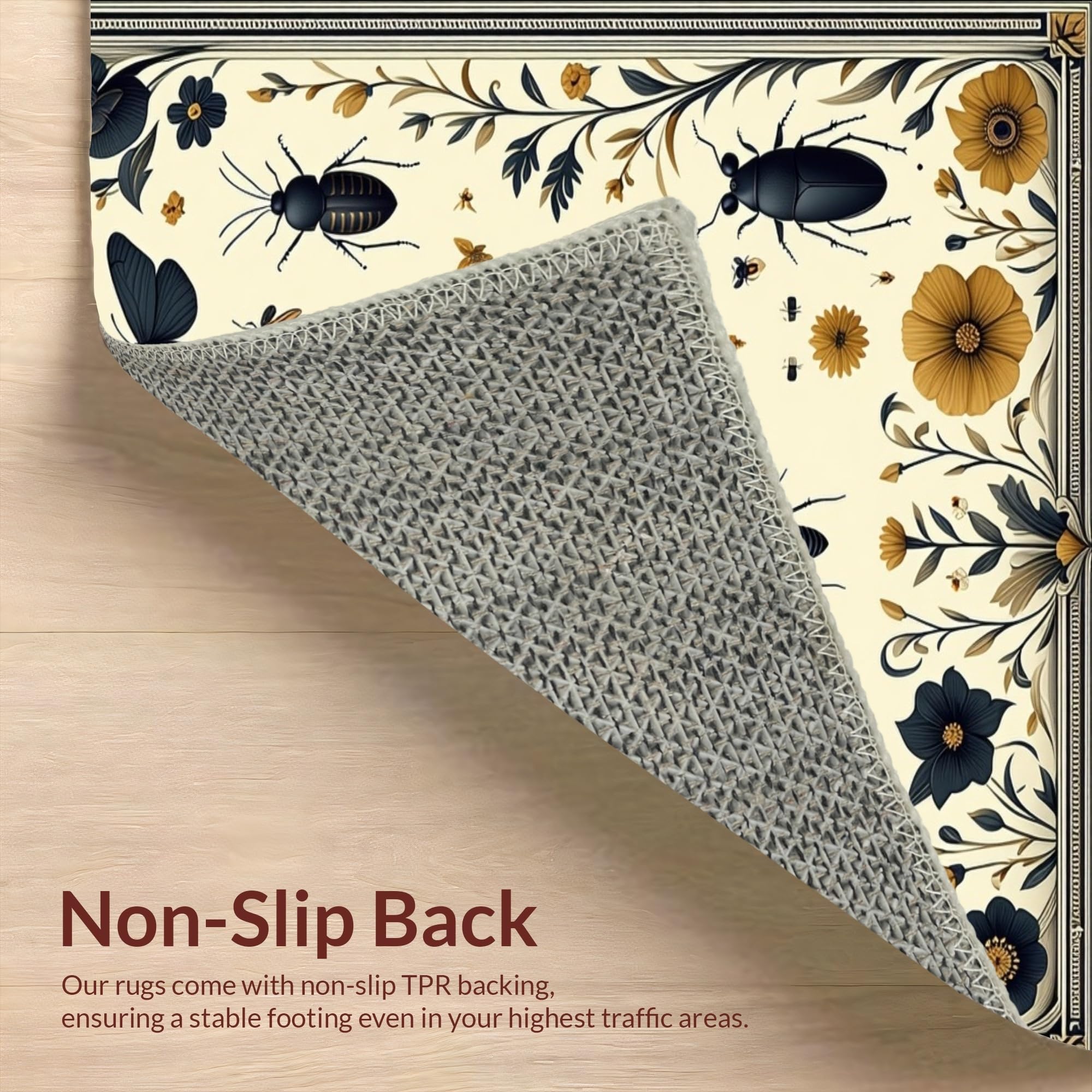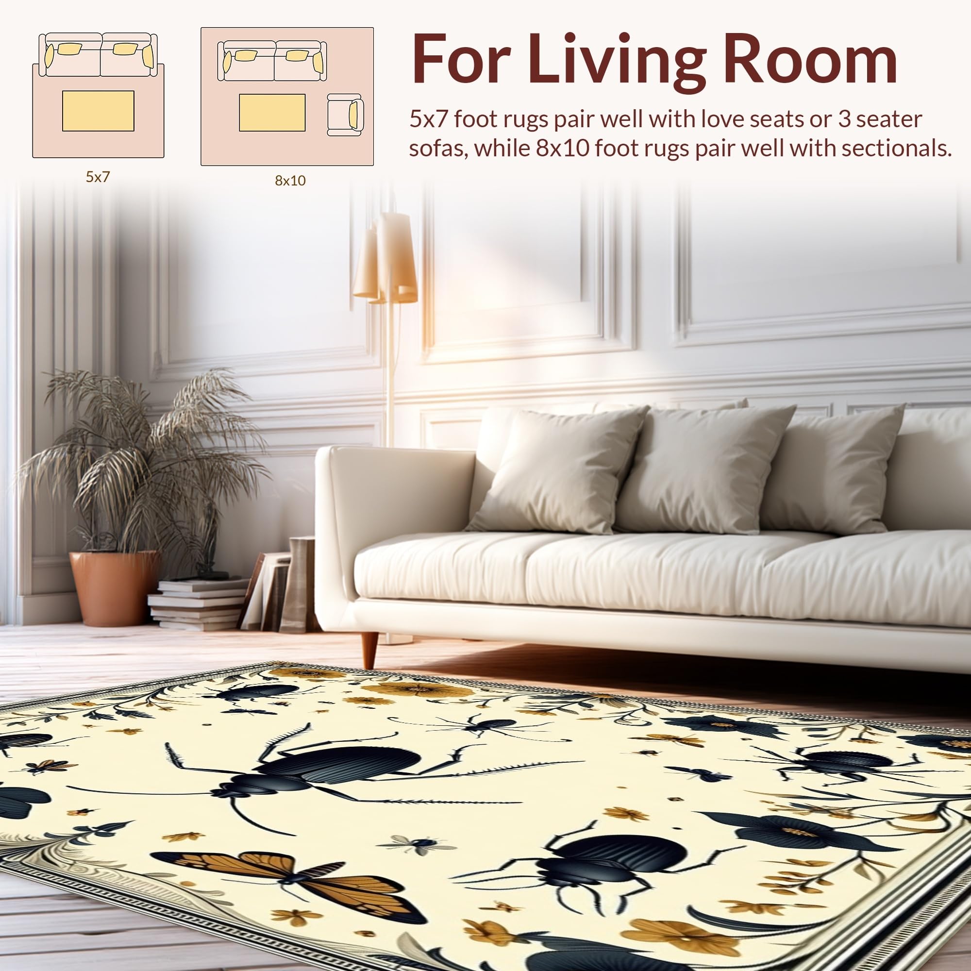 Ultra Soft Area Rug, Non Slip, Stain Resistant, Washable Area Rugs for Living Room, Bedroom, Elegant Insect Artistry Area with Sophisticated Floral Medallions(Ivory) Overview: