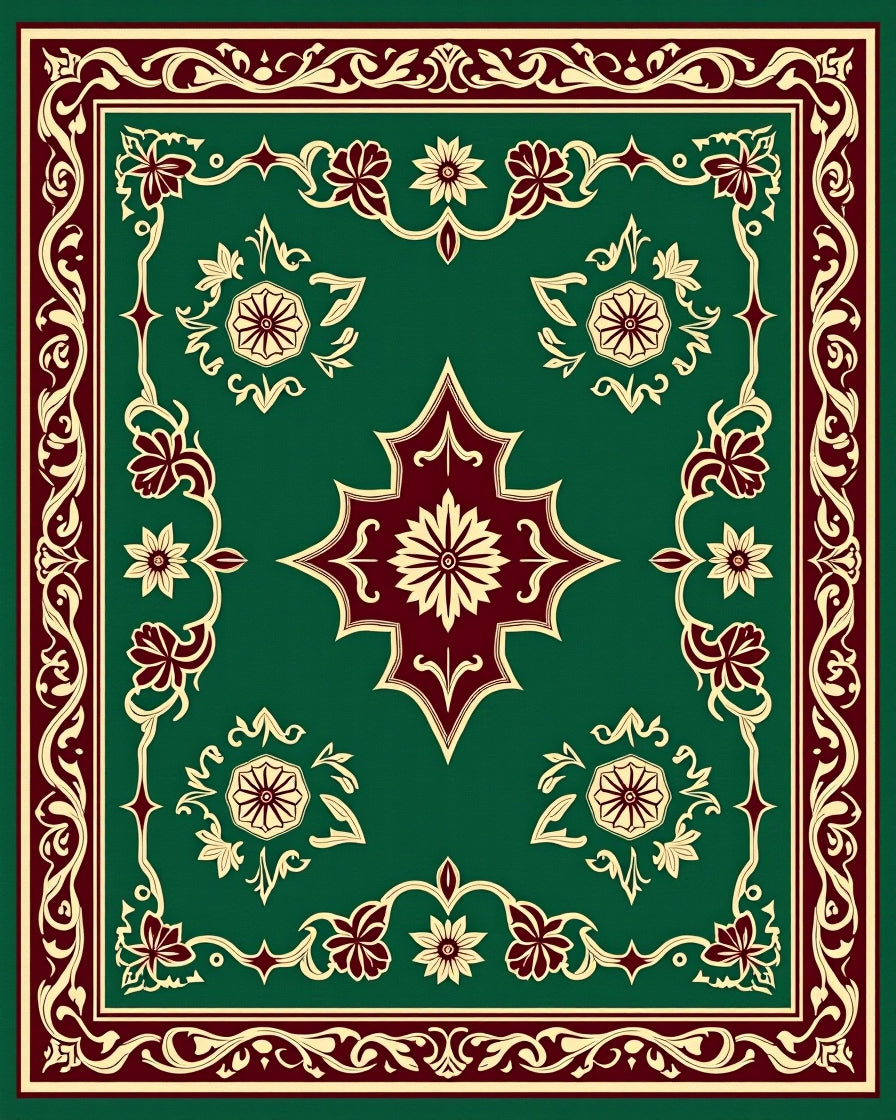 Elegant Interlocking Chevron with Ornate Floral Accents(Green)