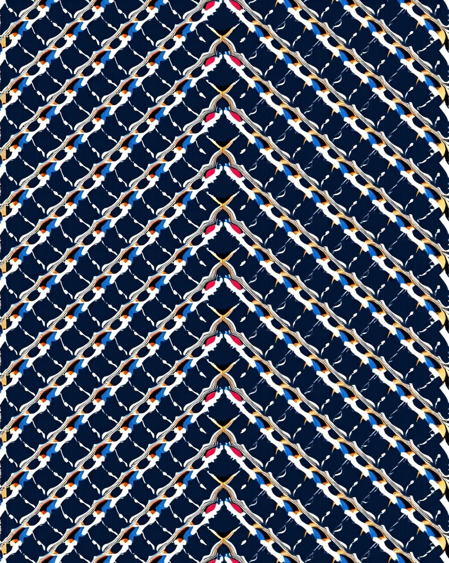 Elegant Interlocking Lattice Contemporary Motif(Blue)