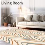 Ultra Soft Area Rug, Non Slip, Stain Resistant, Washable Area Rugs for Living Room, Bedroom, Elegant Interlocking Waves with Subtle Chevron Accents and Neutral Tones(Ivory) Overview: