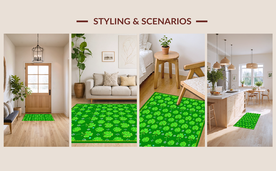 Ultra Soft Area Rug, Non Slip, Stain Resistant, Washable Area Rugs for Living Room, Bedroom, Elegant Irish Floral Design(Green) Overview: