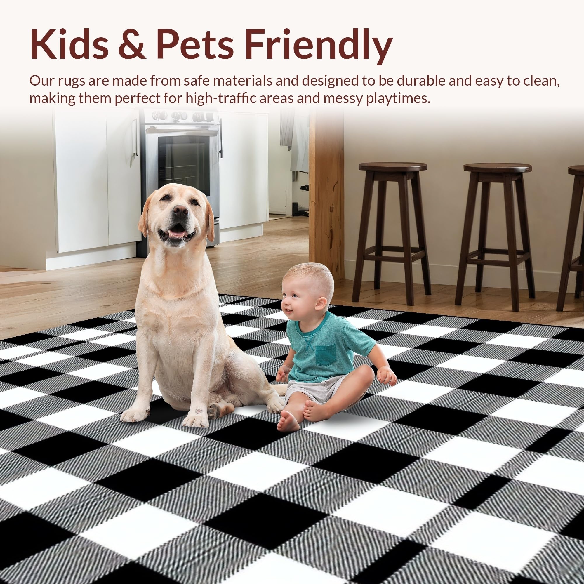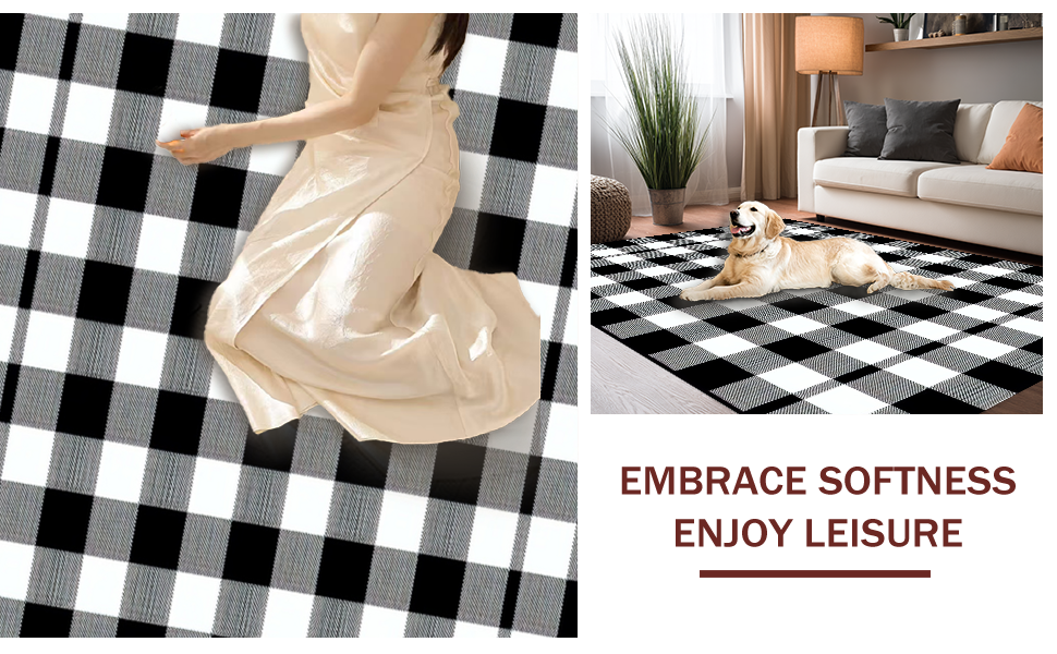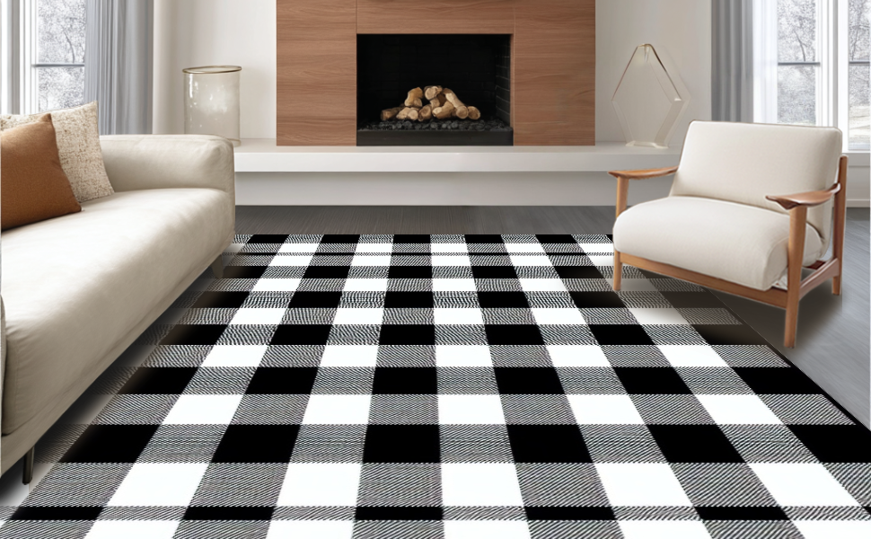 Ultra Soft Area Rug, Non Slip, Stain Resistant, Washable Area Rugs for Living Room, Bedroom, Elegant Lattice Pattern in Contrast(Black) Overview: