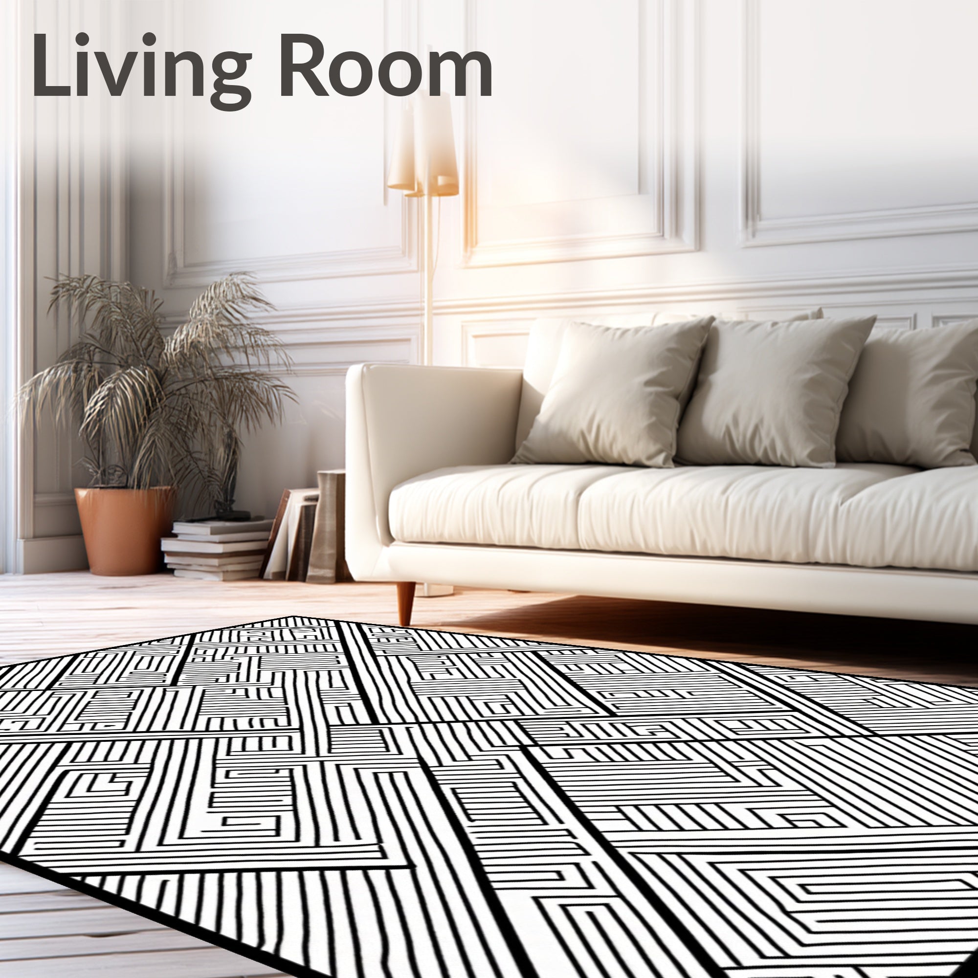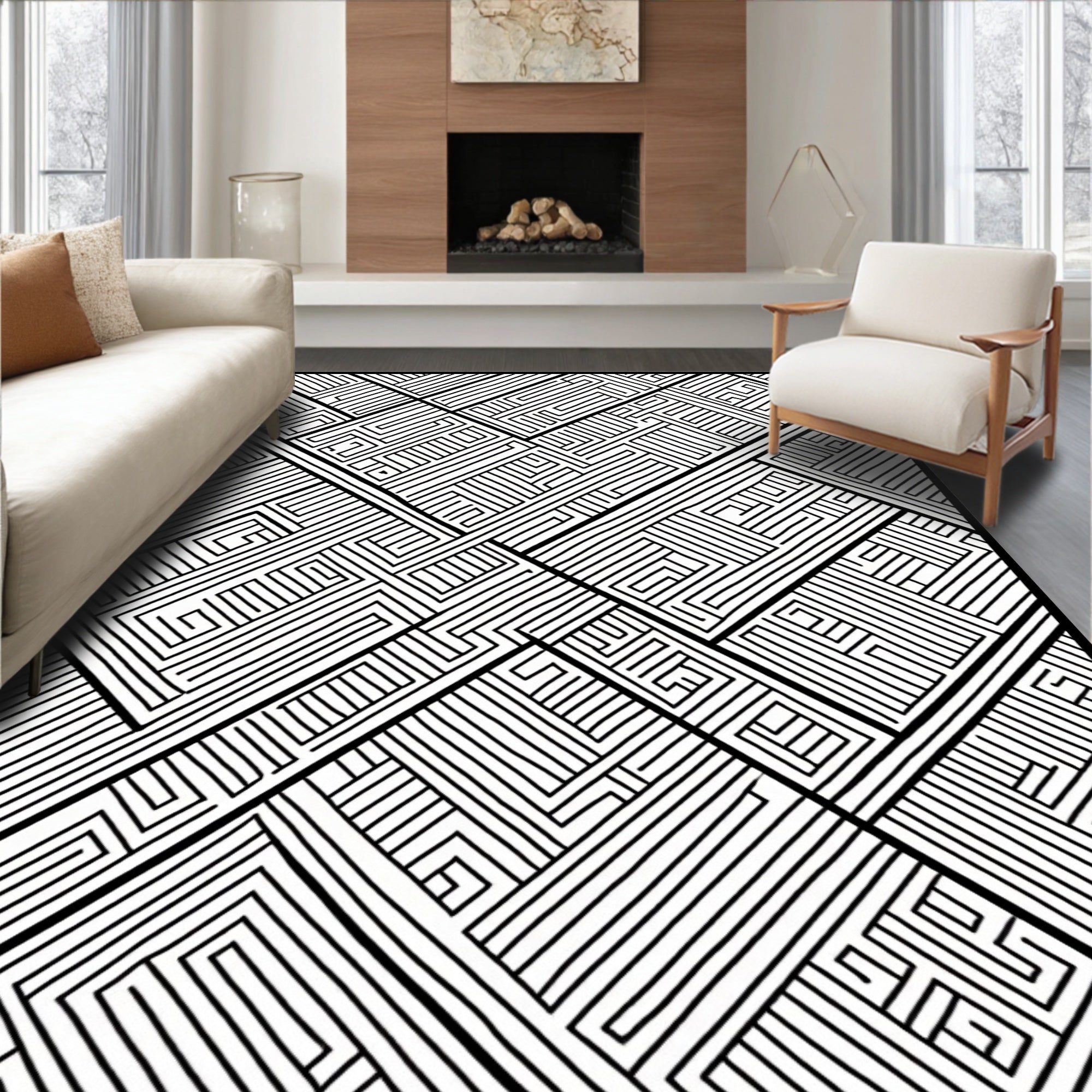 Ultra Soft Area Rug, Non Slip, Stain Resistant, Washable Area Rugs for Living Room, Bedroom, Elegant Lattice Trellis Decorative Accent(Black) Overview: