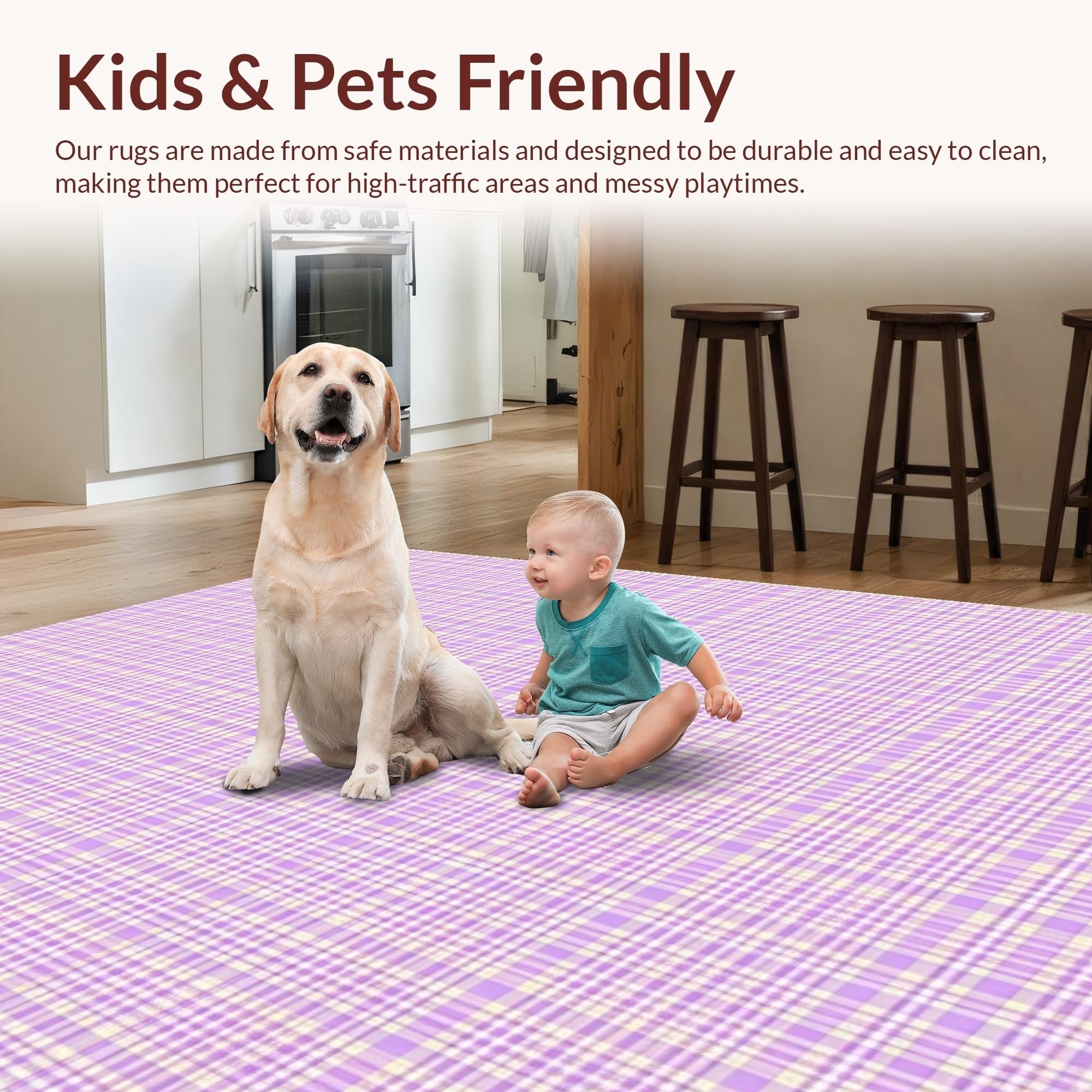 Ultra Soft Area Rug, Non Slip, Stain Resistant, Washable Area Rugs for Living Room, Bedroom, Elegant Lavender Diamond Motif(Purple) Overview: