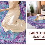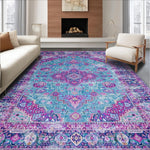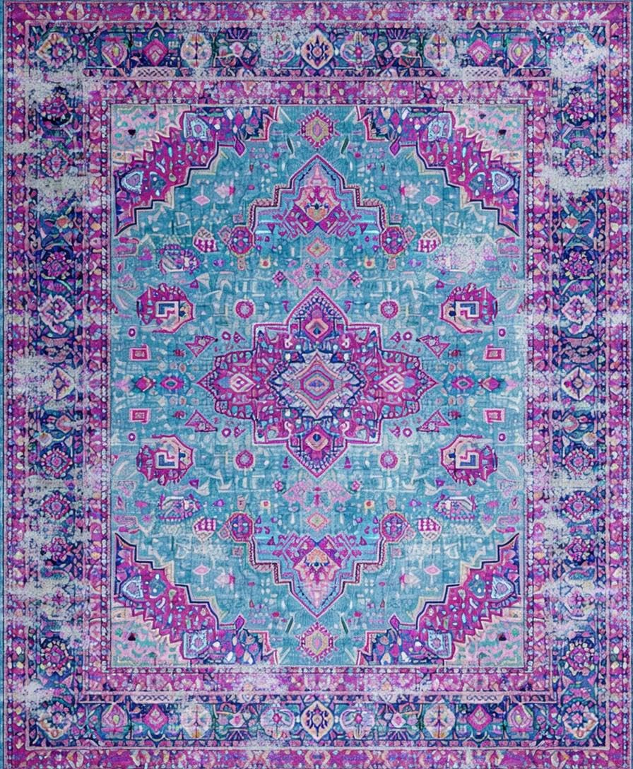 Ultra Soft Area Rug, Non Slip, Stain Resistant, Washable Area Rugs for Living Room, Bedroom, Elegant Light Blue Tiled Design(Pink) Overview:
