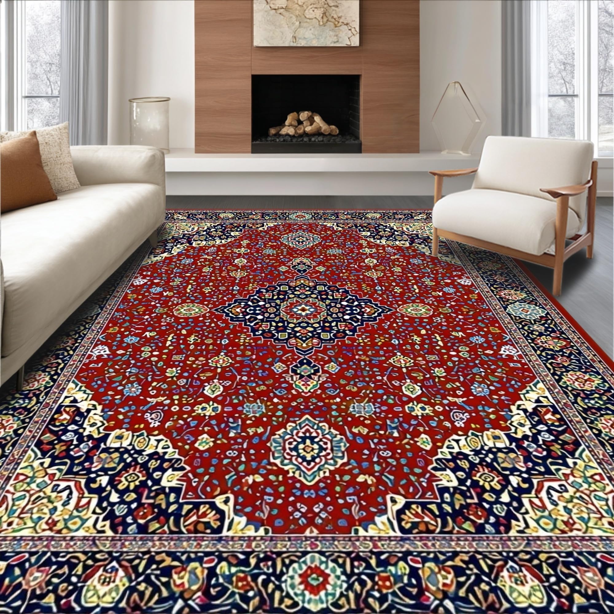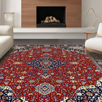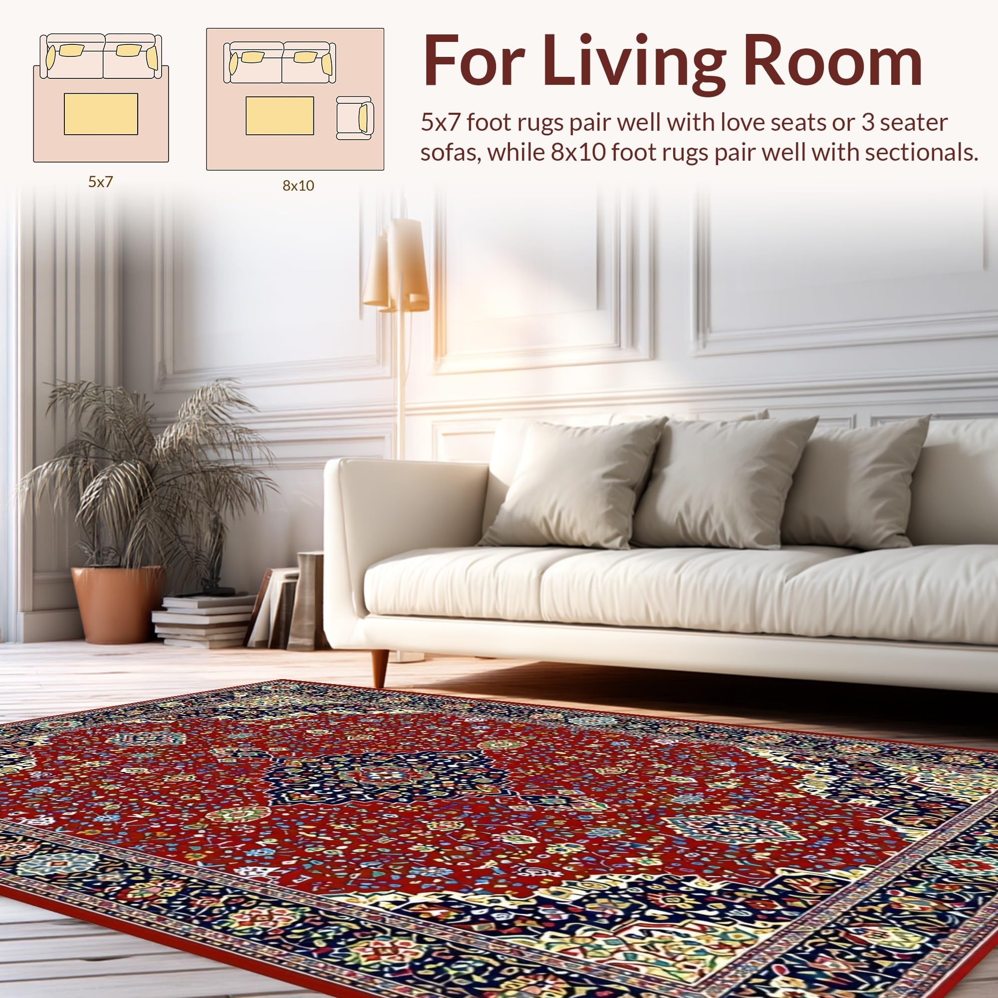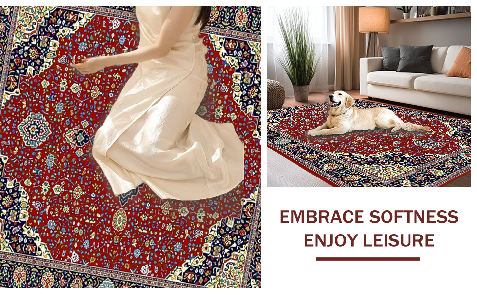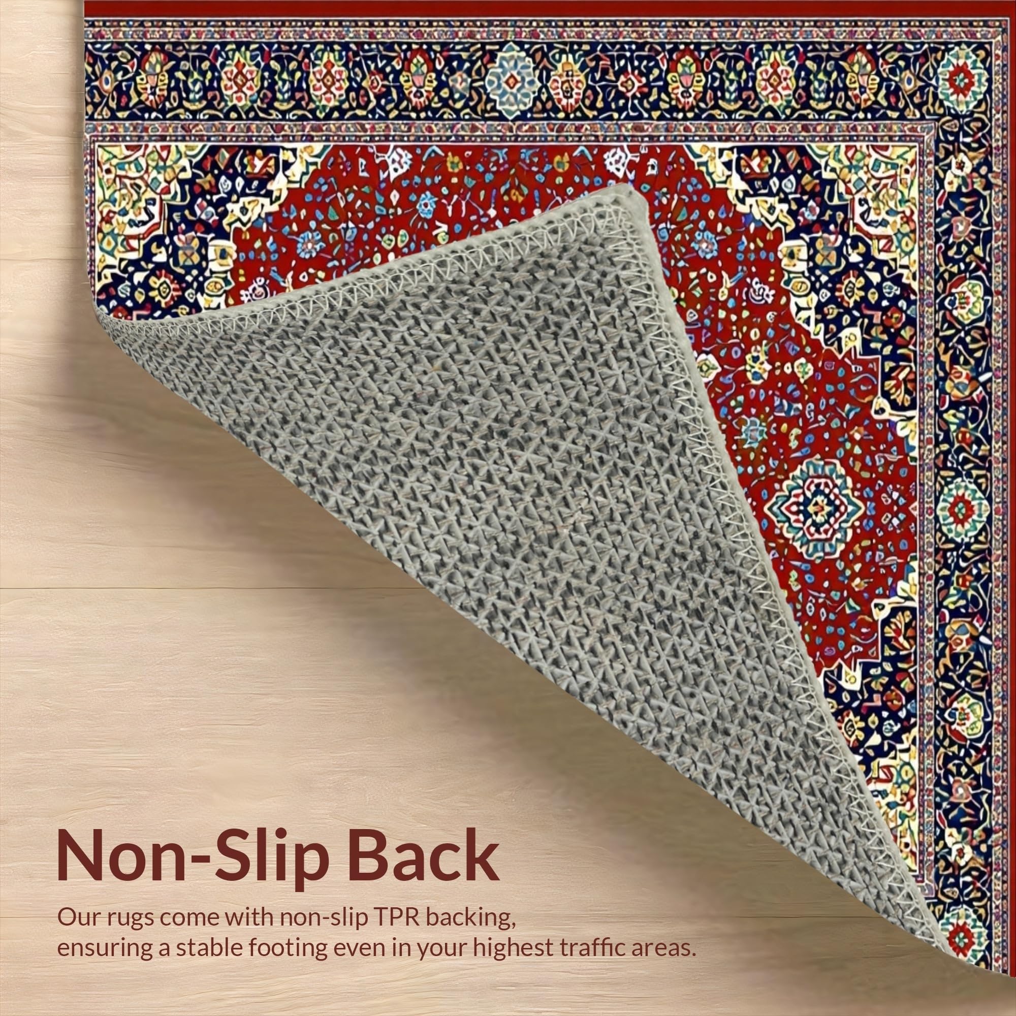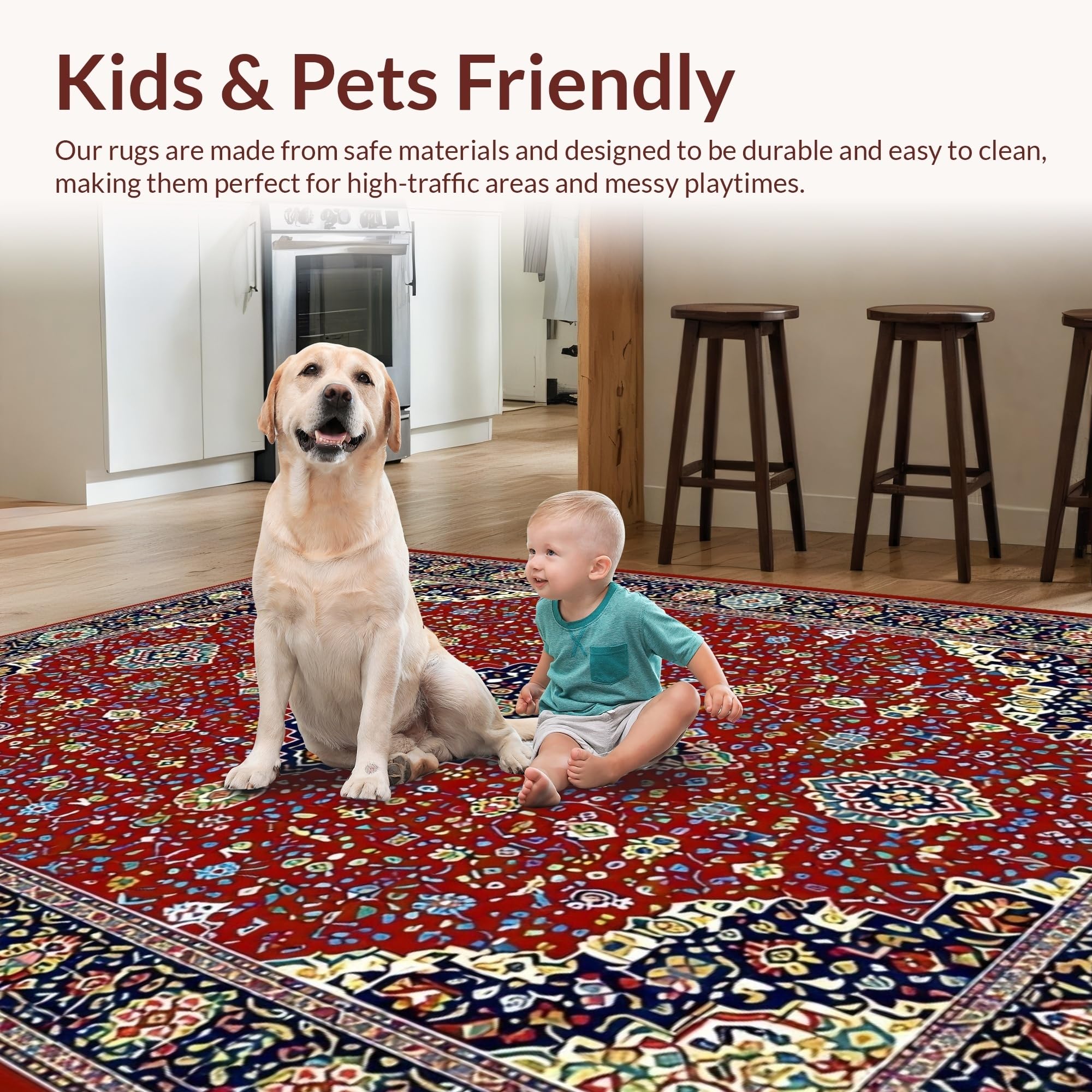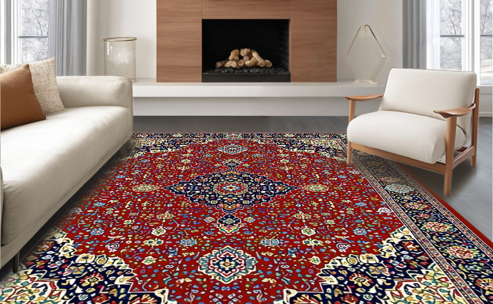 Ultra Soft Area Rug, Non Slip, Stain Resistant, Washable Area Rugs for Living Room, Bedroom, Elegant Linear Trellis in Soft Tones(Red) Overview: