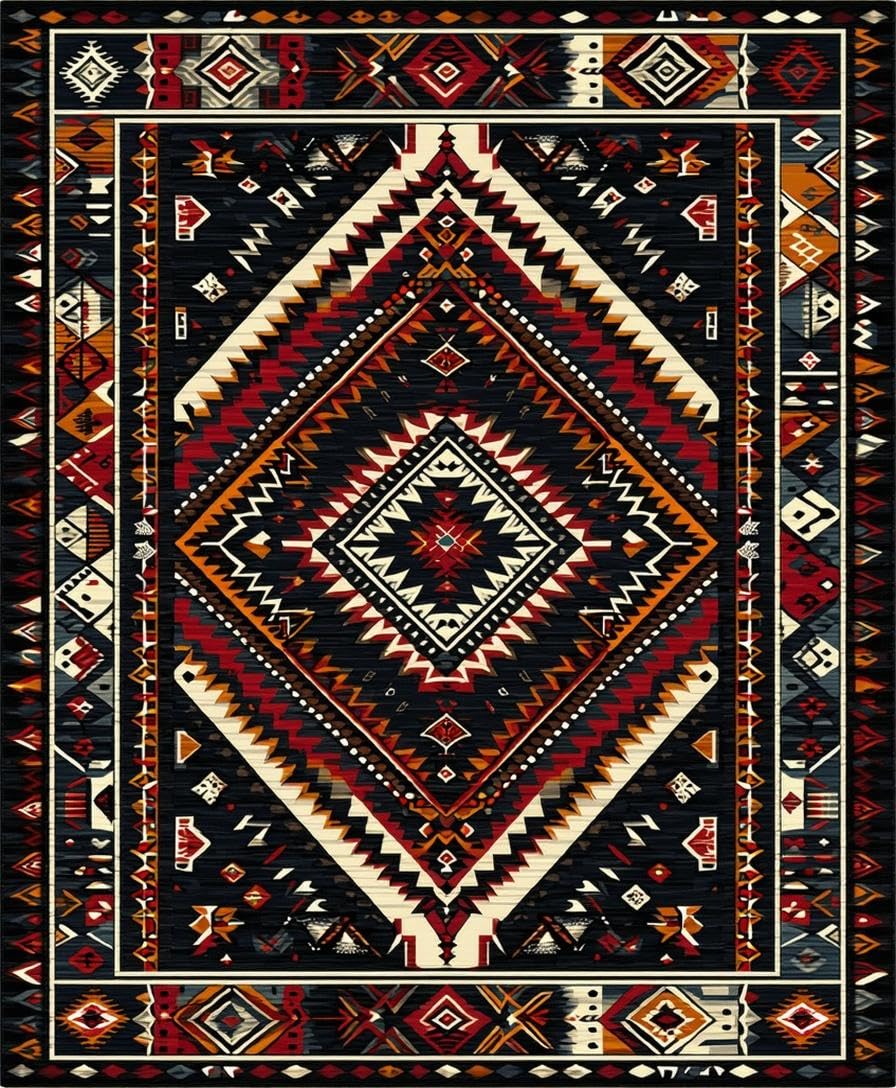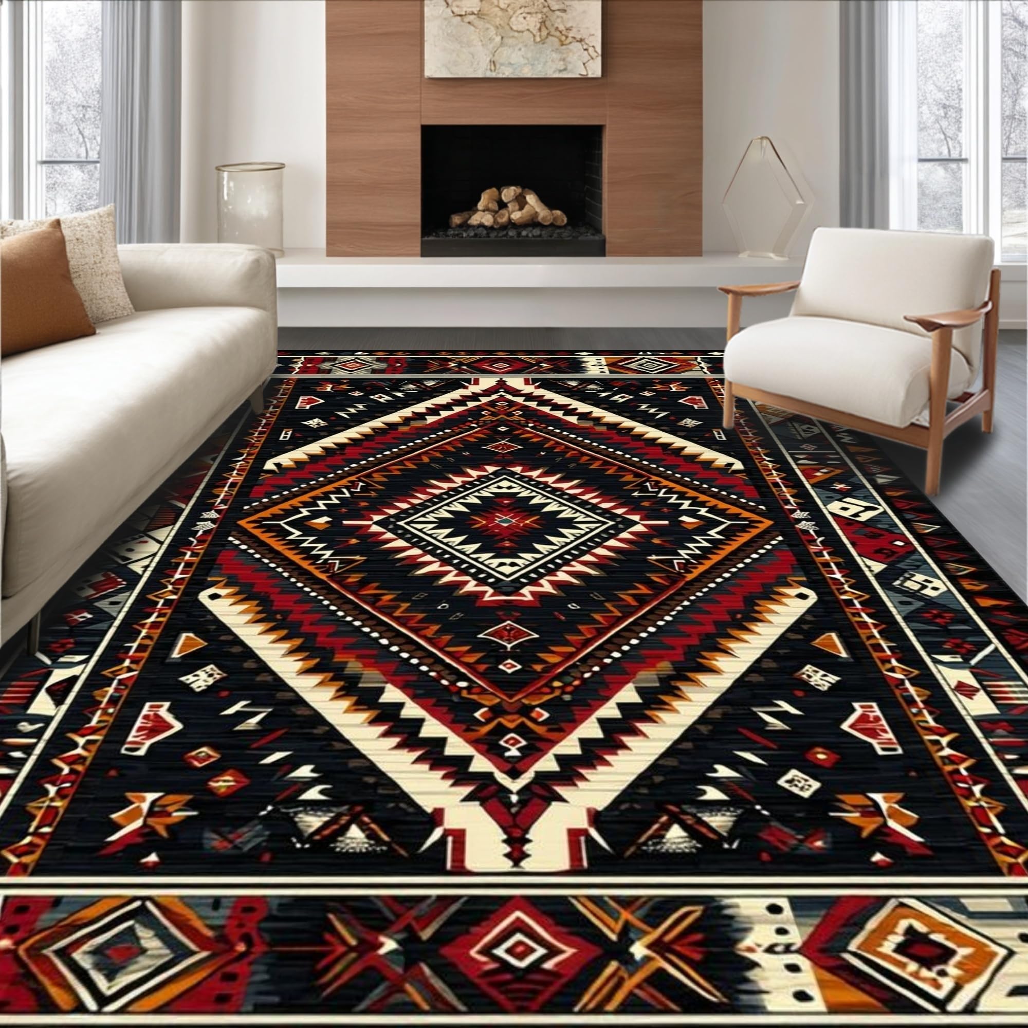 Ultra Soft Area Rug, Non Slip, Stain Resistant, Washable Area Rugs for Living Room, Bedroom, Elegant Low Pile Diamond Design(Black) Overview: