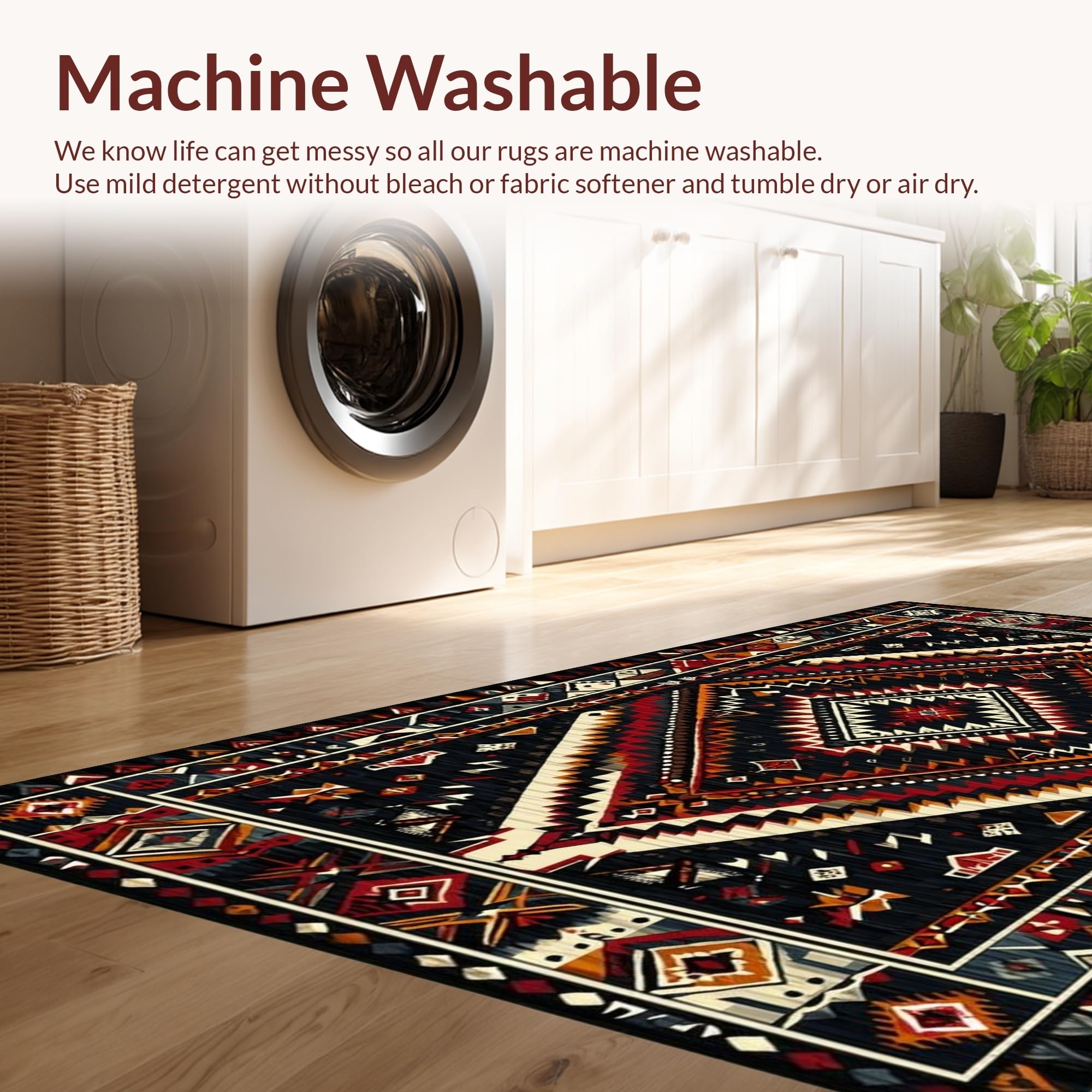 - Machine Washable: Our rugs can be easily thrown in the wash machine.