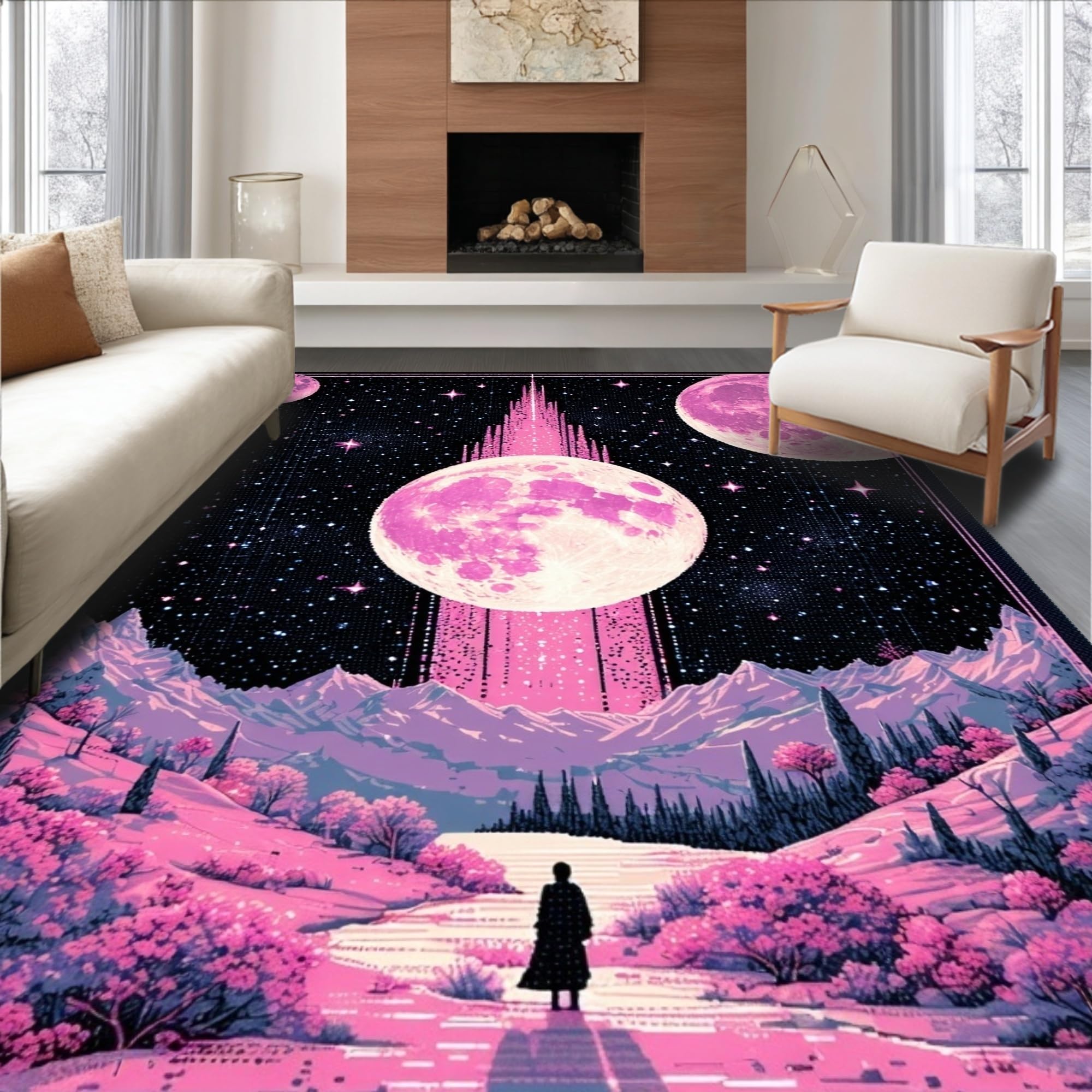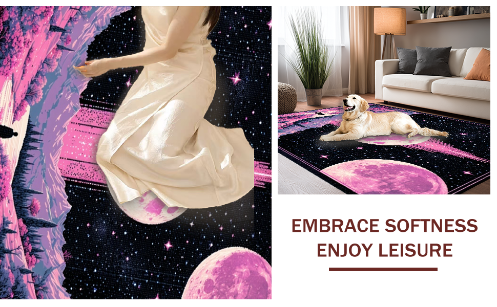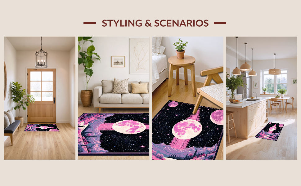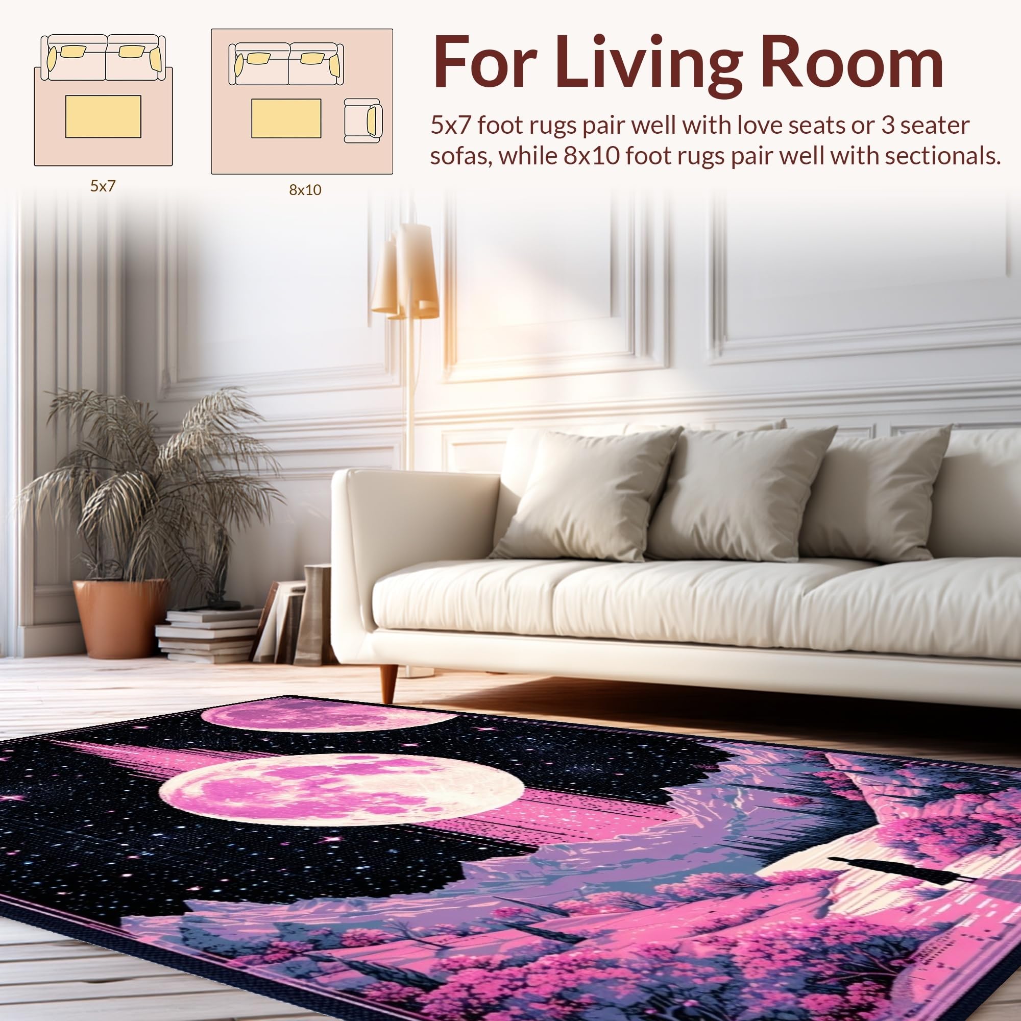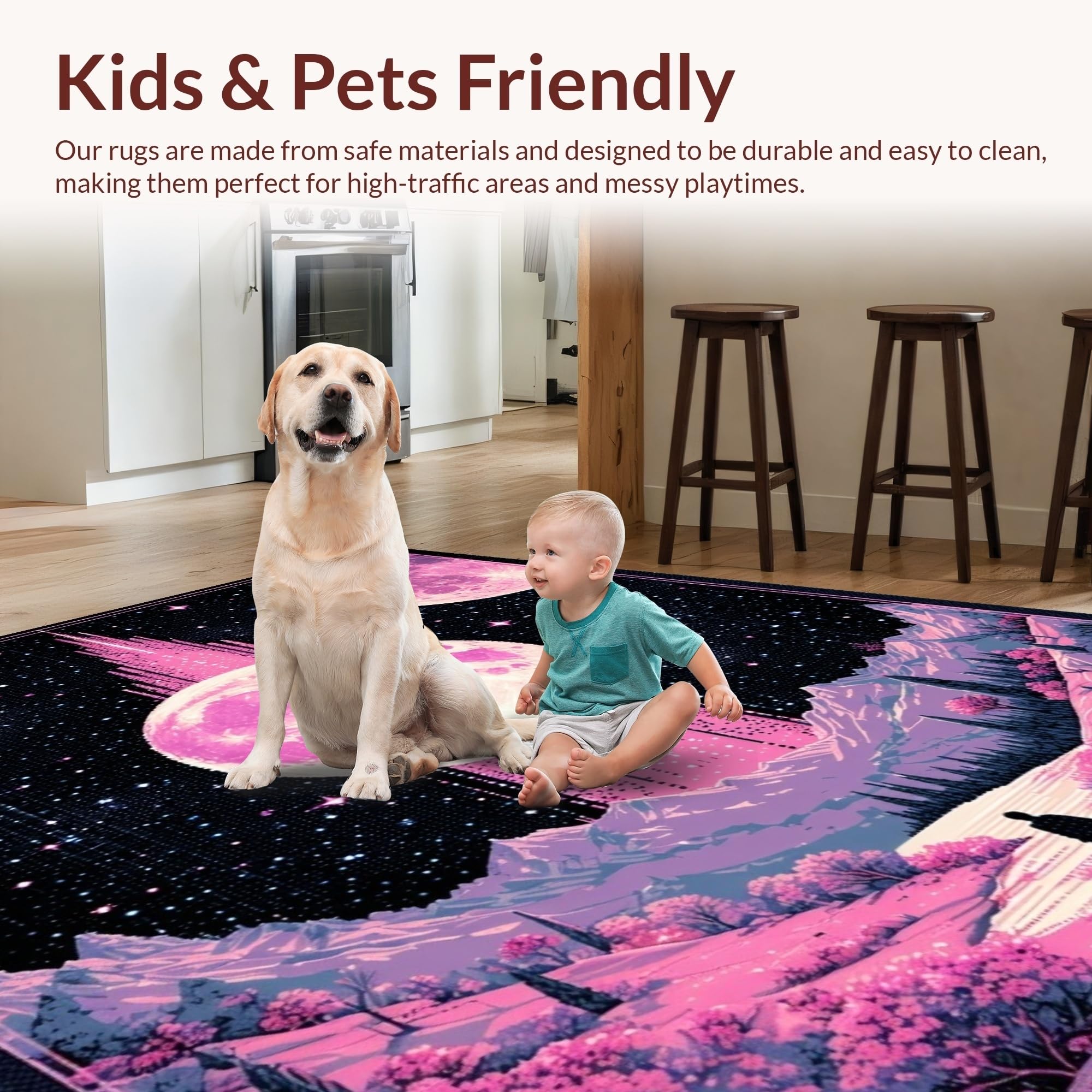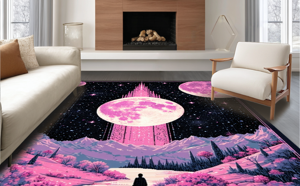 Ultra Soft Area Rug, Non Slip, Stain Resistant, Washable Area Rugs for Living Room, Bedroom, Elegant Lunar Tiled Artistry(Pink) Overview: