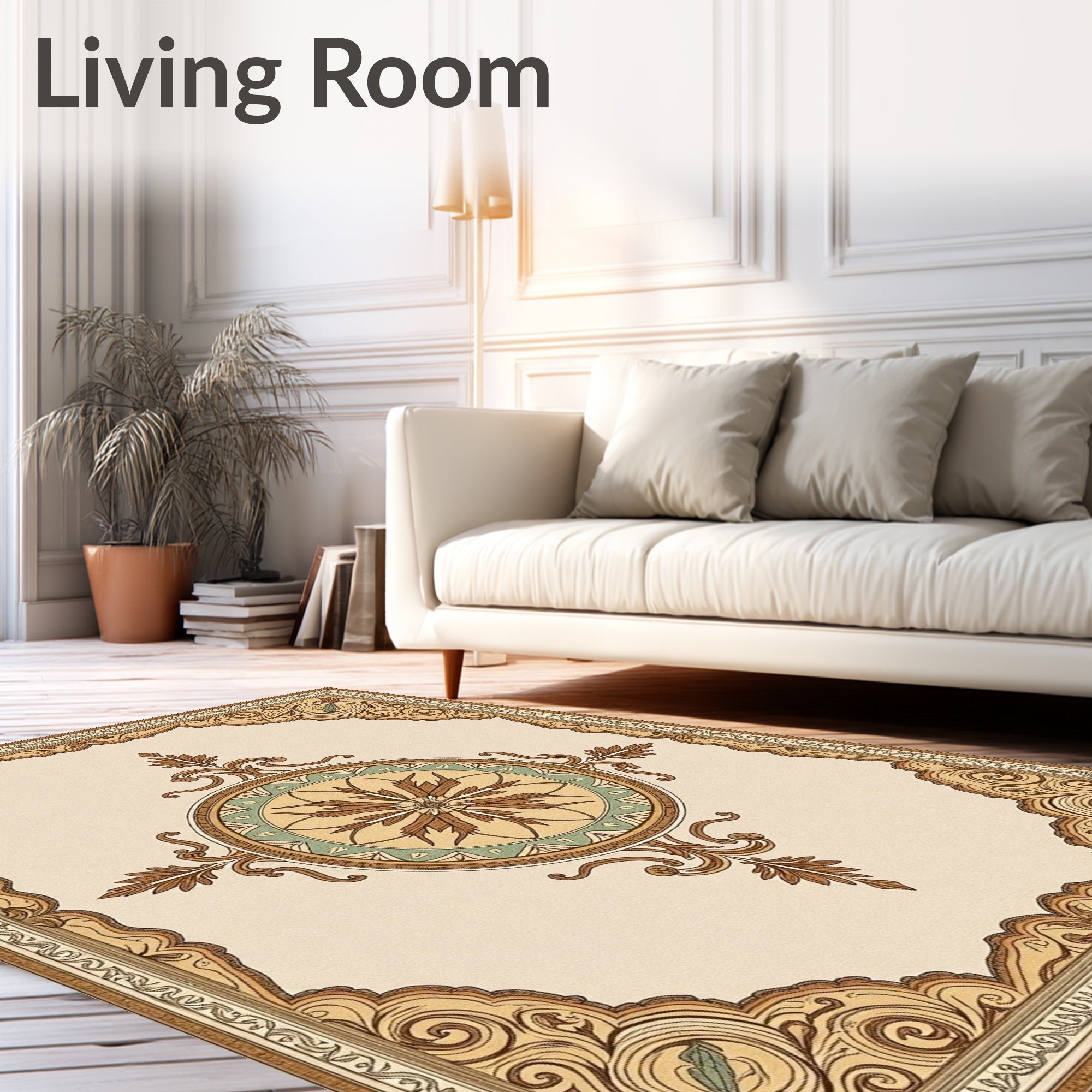 Ultra Soft Area Rug, Non Slip, Stain Resistant, Washable Area Rugs for Living Room, Bedroom, Elegant Medallion Cascade Vintage Tapestry Artisan(Beige) Overview: