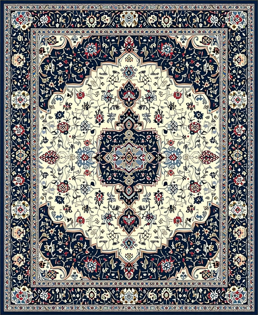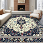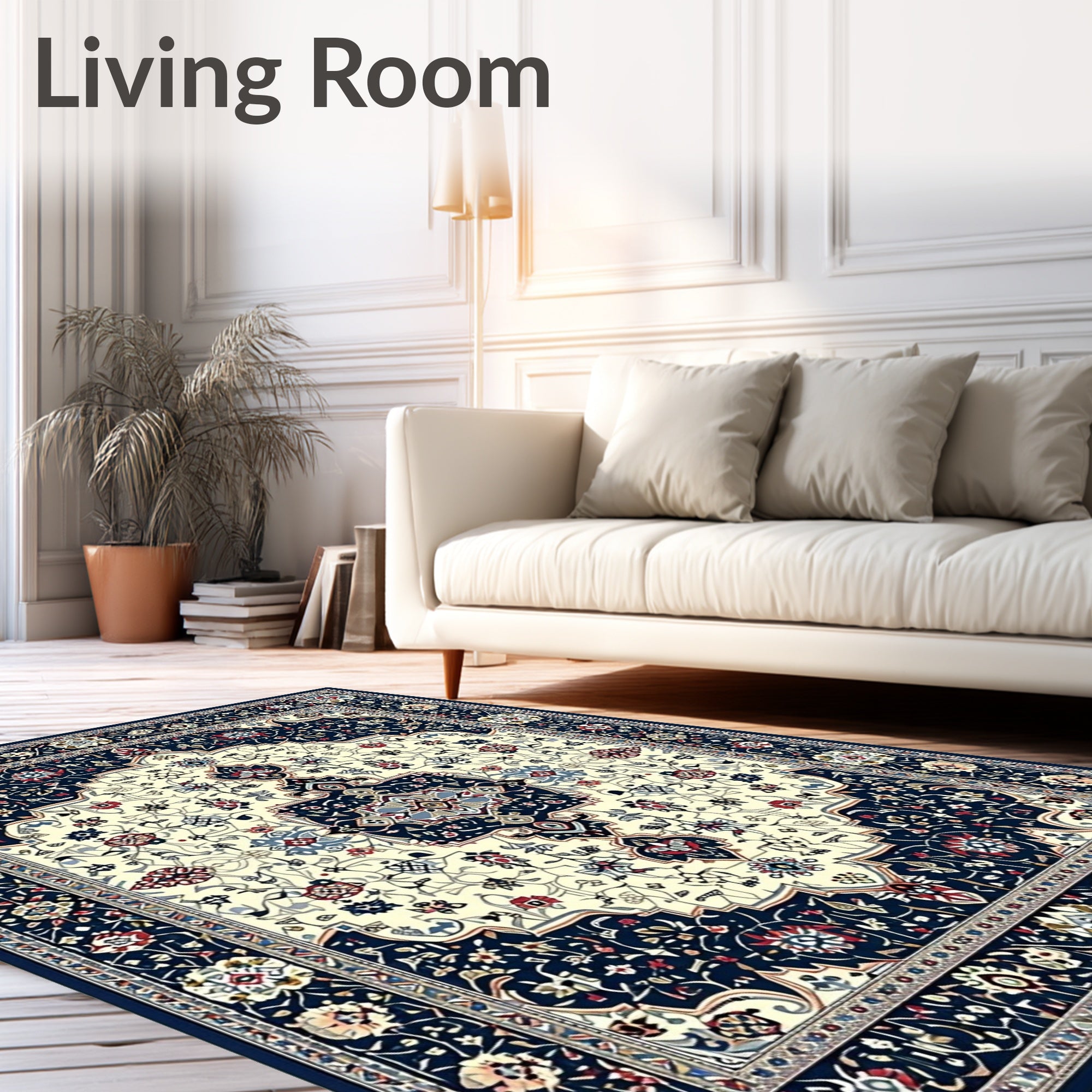 Ultra Soft Area Rug, Non Slip, Stain Resistant, Washable Area Rugs for Living Room, Bedroom, Elegant Medallion Floral Area Navy Beige Non Shedding(Blue) Overview:
