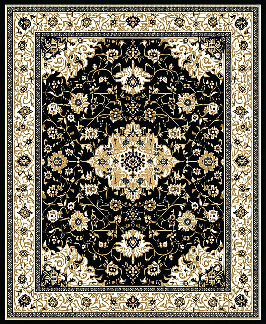 Elegant Medallion Oriental with Intricate Black and Beige Motifs(Black)