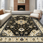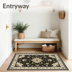 Flatwoven High Traffic Area Rug, Elegant Medallion Oriental with Intricate Black and Beige Motifs, Non Slip, Stain Resistant, Washable Area Rugs for Living Room, Bedroom (Black) Overview: