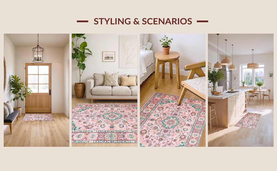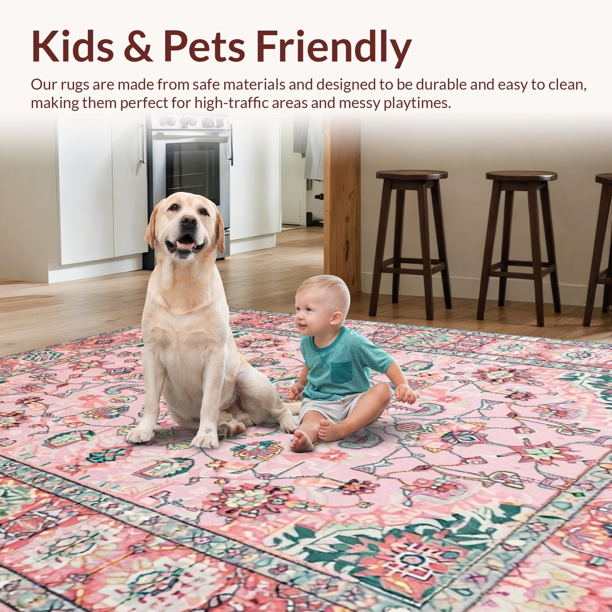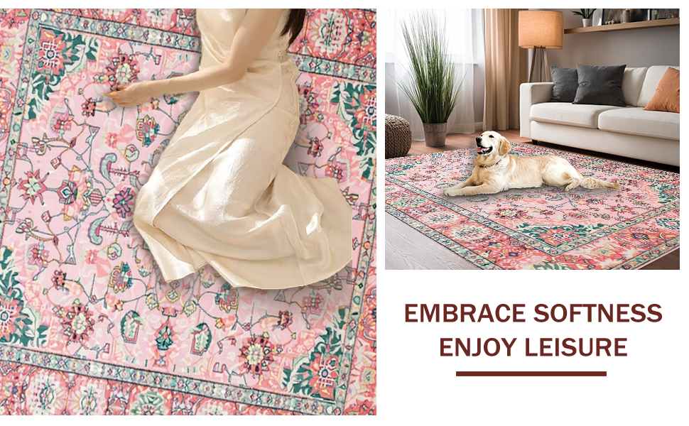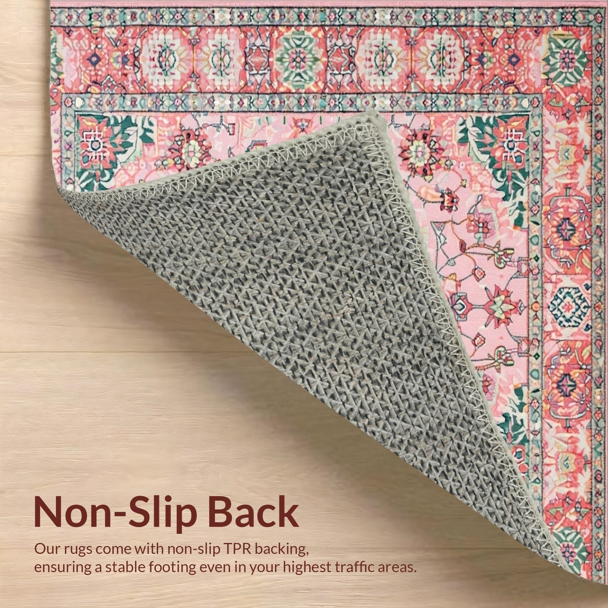 Ultra Soft Area Rug, Non Slip, Stain Resistant, Washable Area Rugs for Living Room, Bedroom, Elegant Medallion Rose Palette(Pink) Overview: