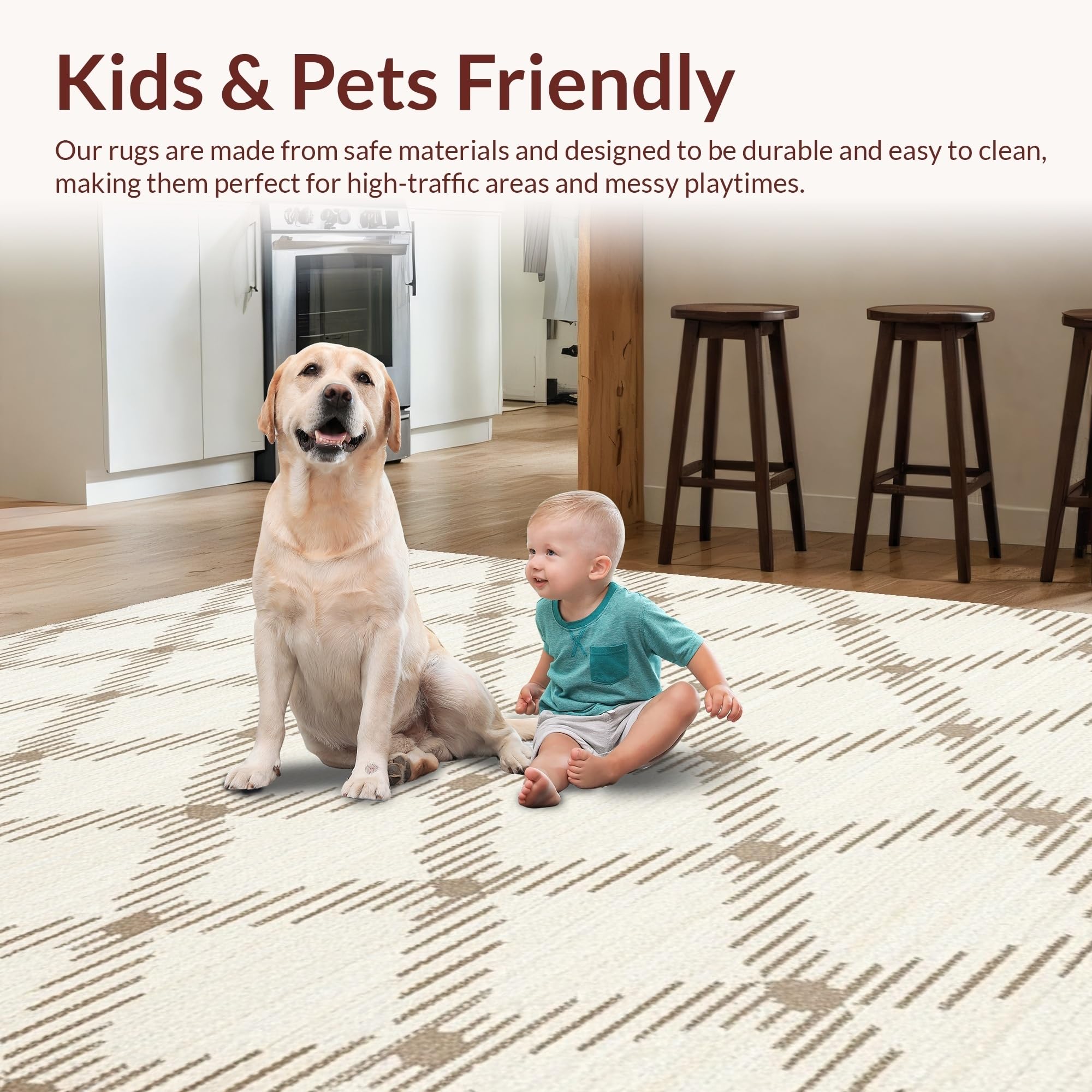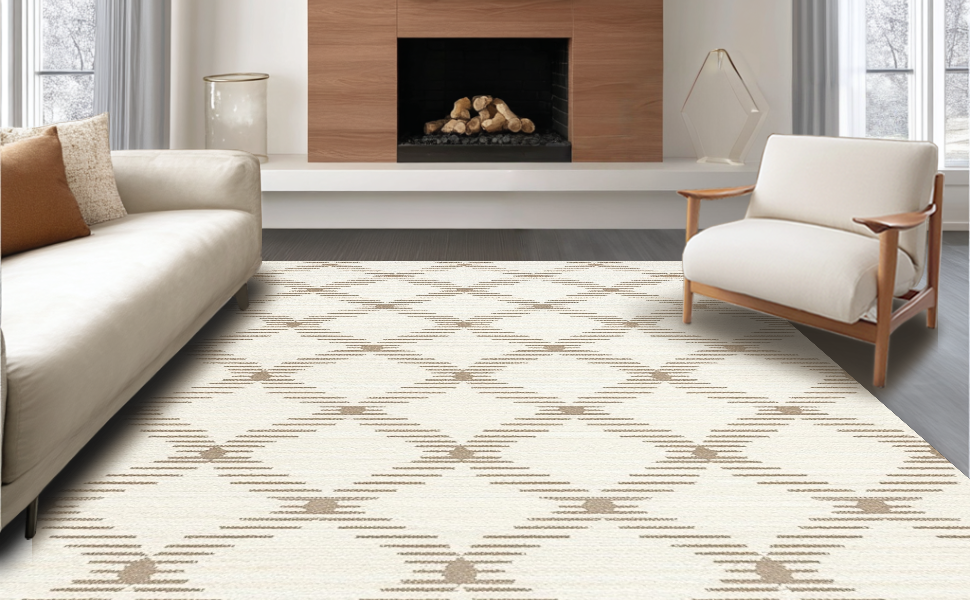 Ultra Soft Area Rug, Non Slip, Stain Resistant, Washable Area Rugs for Living Room, Bedroom, Elegant Minimalist Cream Palette(Beige) Overview: