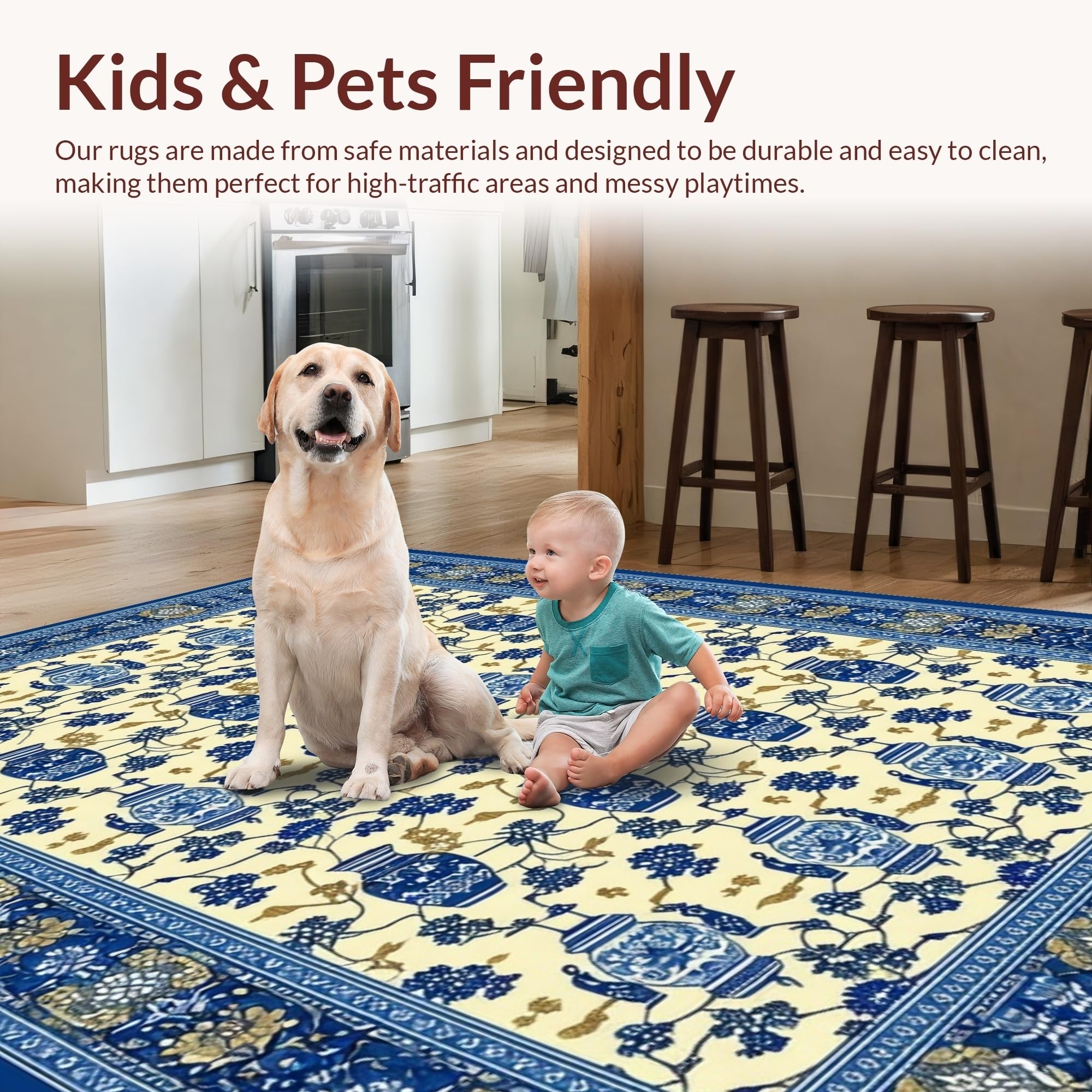 Ultra Soft Area Rug, Non Slip, Stain Resistant, Washable Area Rugs for Living Room, Bedroom, Elegant Modern Geometric Floral Arrangement(Beige) Overview: