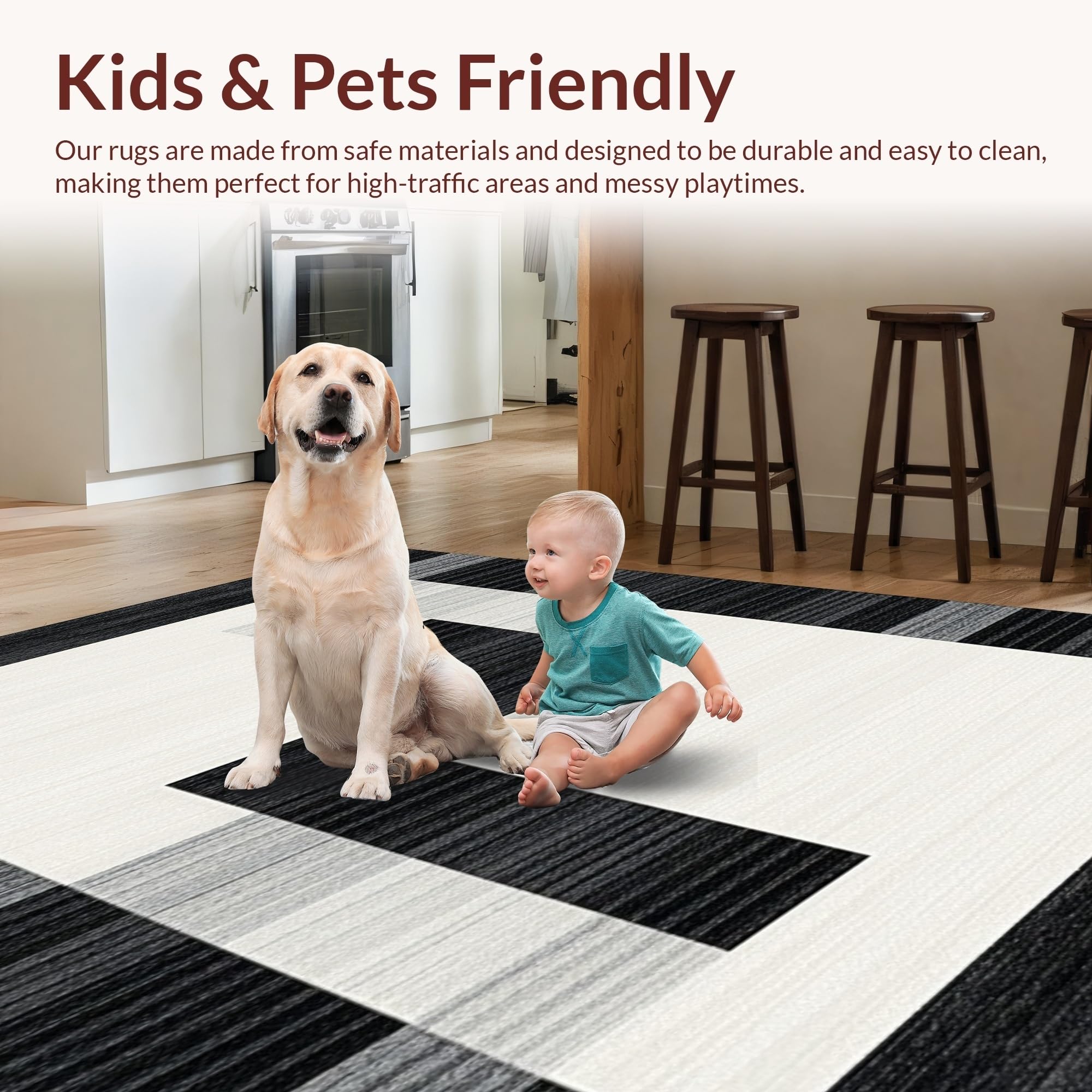 Ultra Soft Area Rug, Non Slip, Stain Resistant, Washable Area Rugs for Living Room, Bedroom, Elegant Modern Lattice Formation(Gray) Overview: