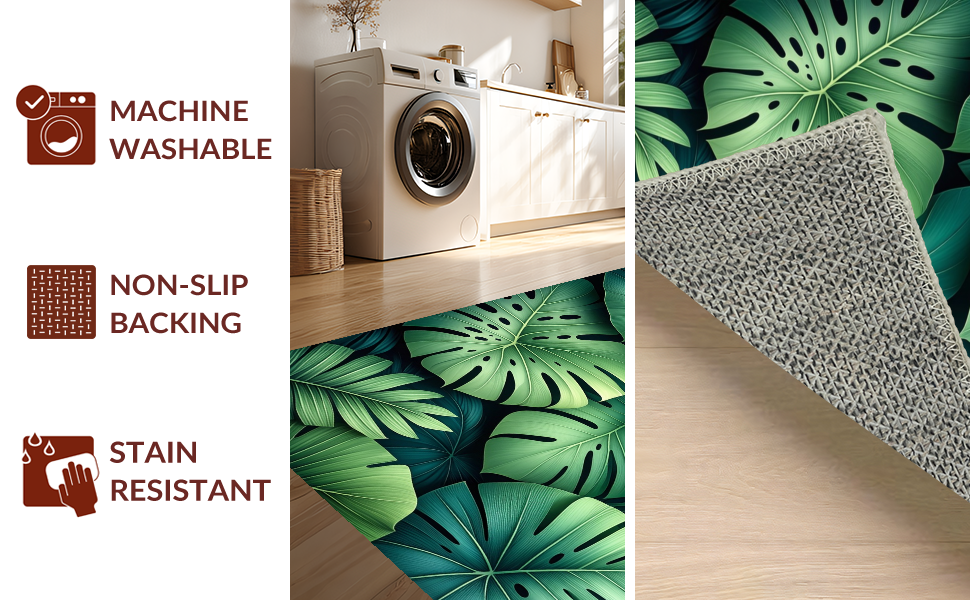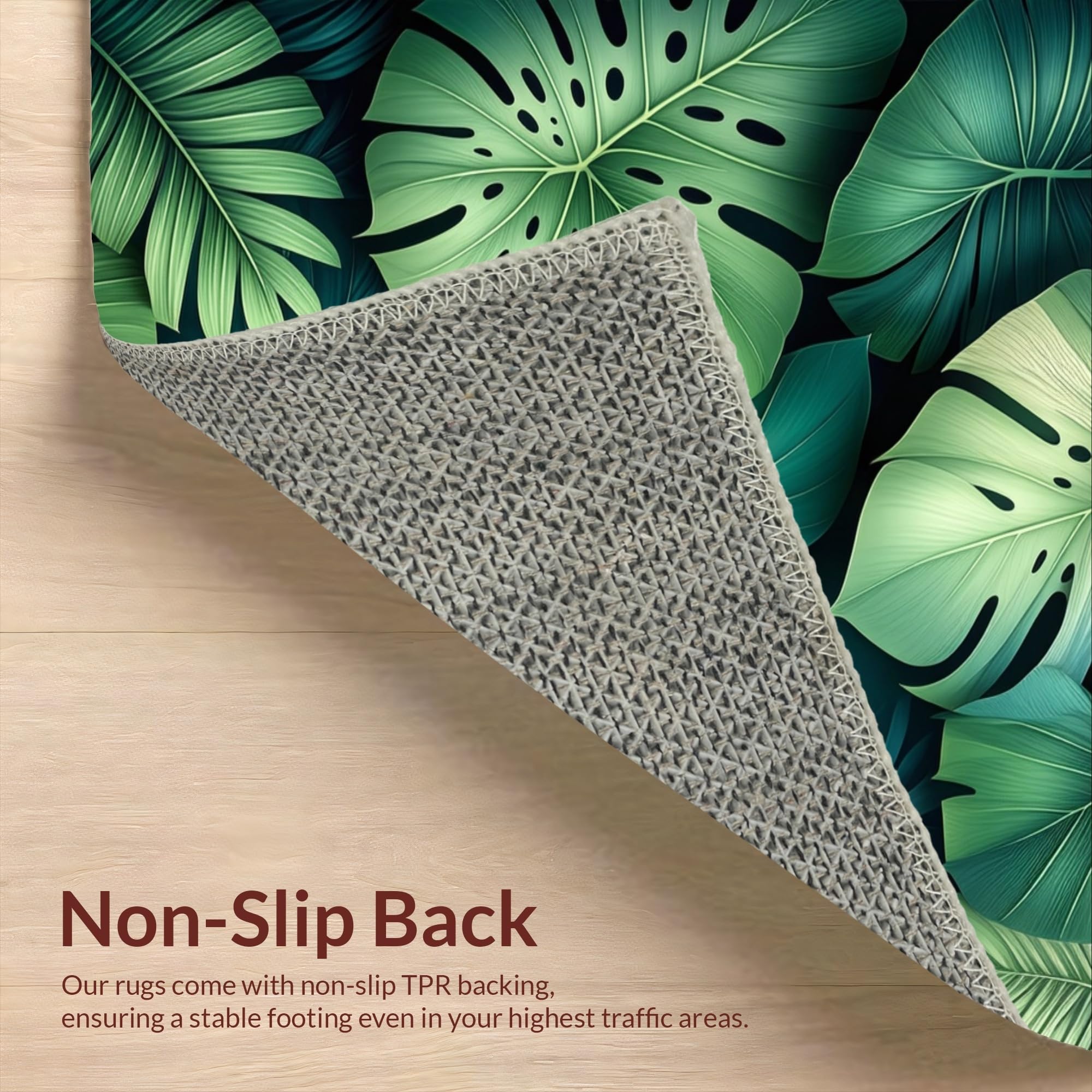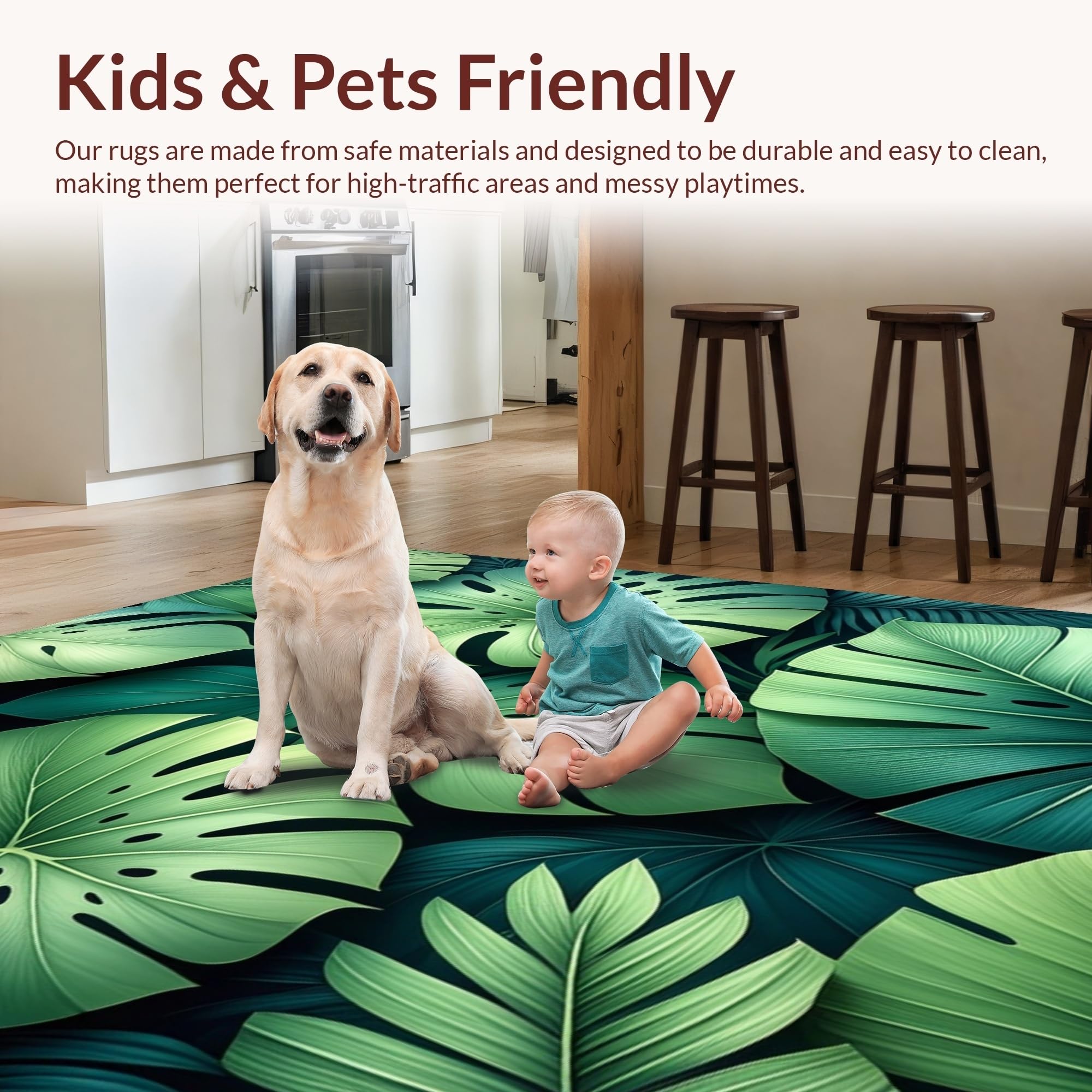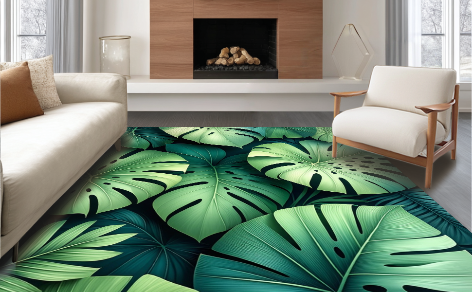 Ultra Soft Area Rug, Non Slip, Stain Resistant, Washable Area Rugs for Living Room, Bedroom, Elegant Modern Tropical Feel(Green) Overview: