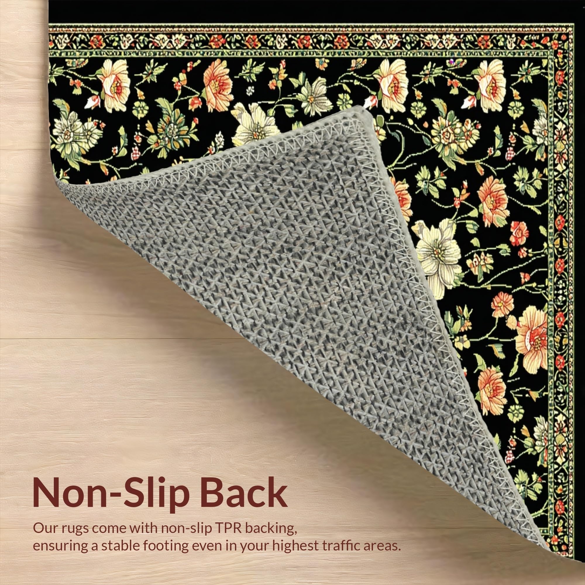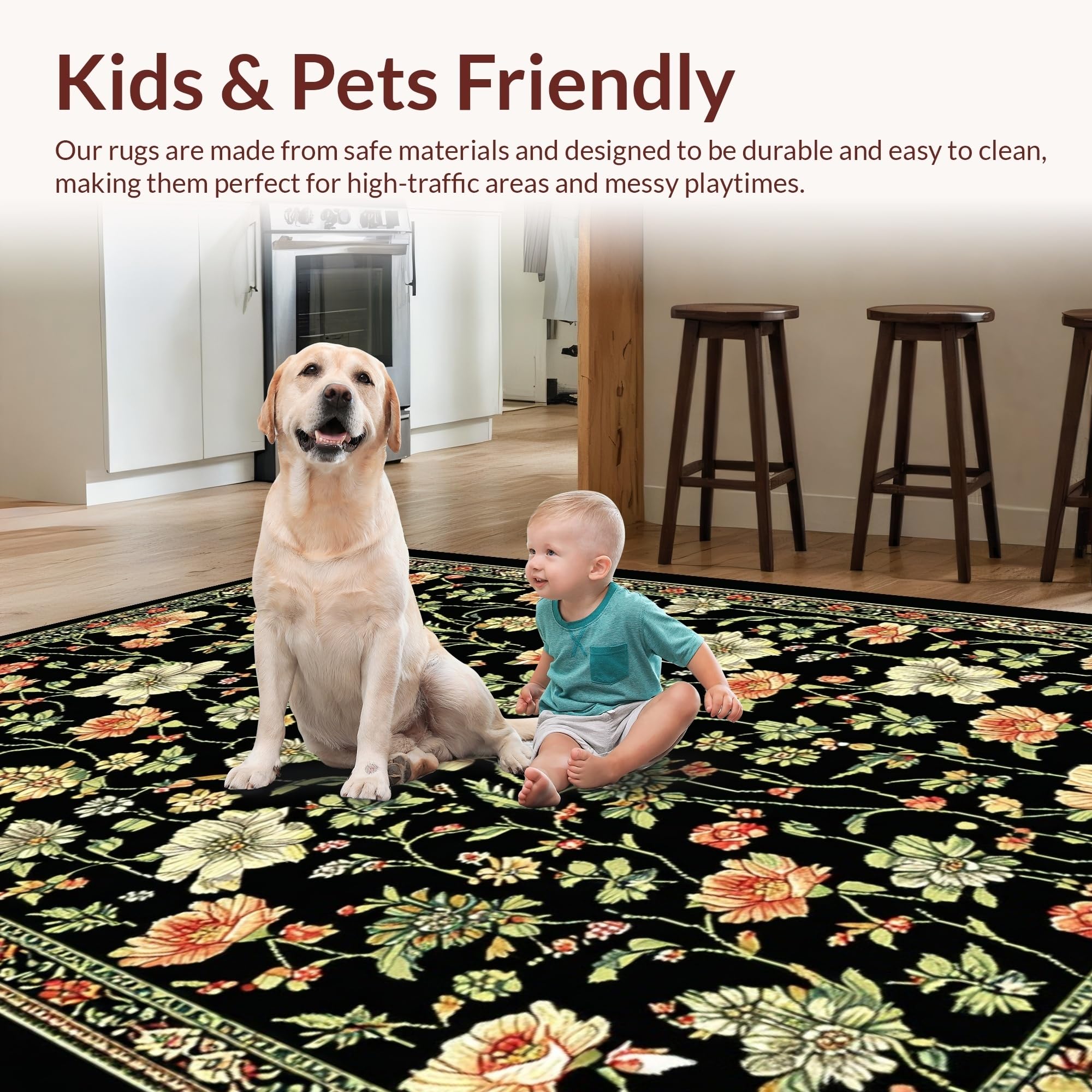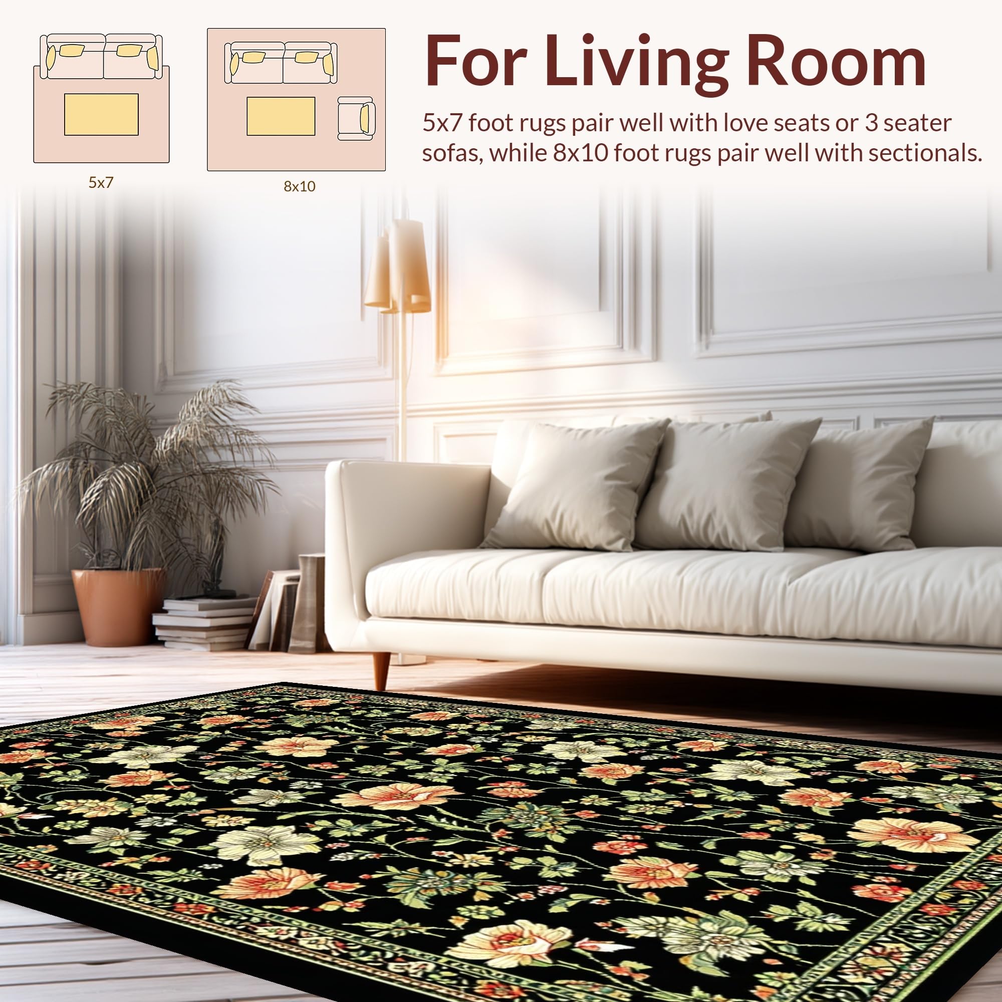 Ultra Soft Area Rug, Non Slip, Stain Resistant, Washable Area Rugs for Living Room, Bedroom, Elegant Monochrome Flower Arrangement(Black) Overview: