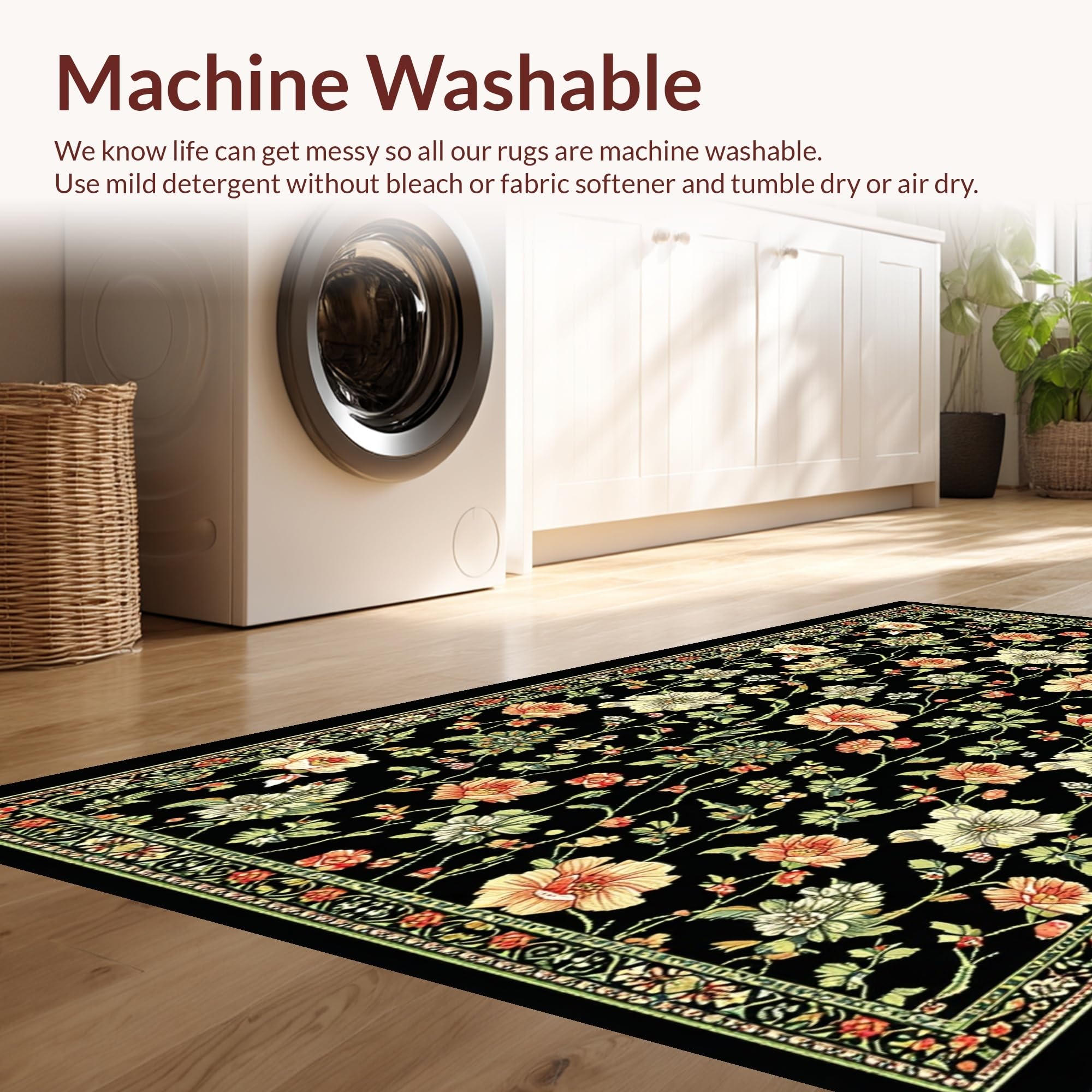 - Machine Washable: Our rugs can be easily thrown in the wash machine.