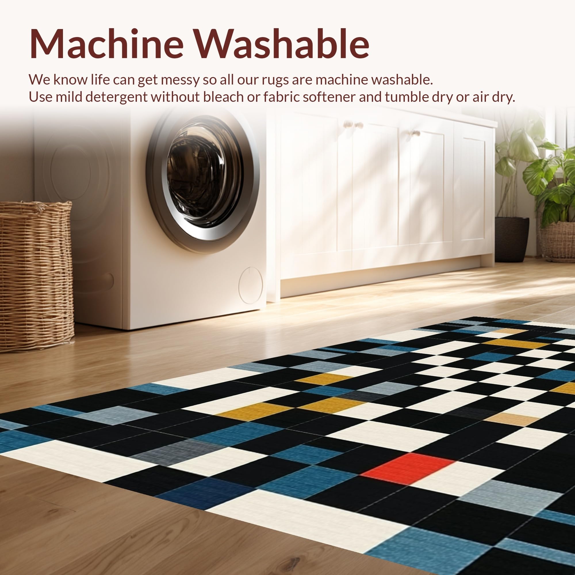 - Machine Washable: Our rugs can be easily thrown in the wash machine.