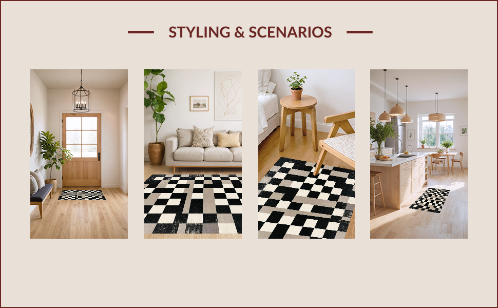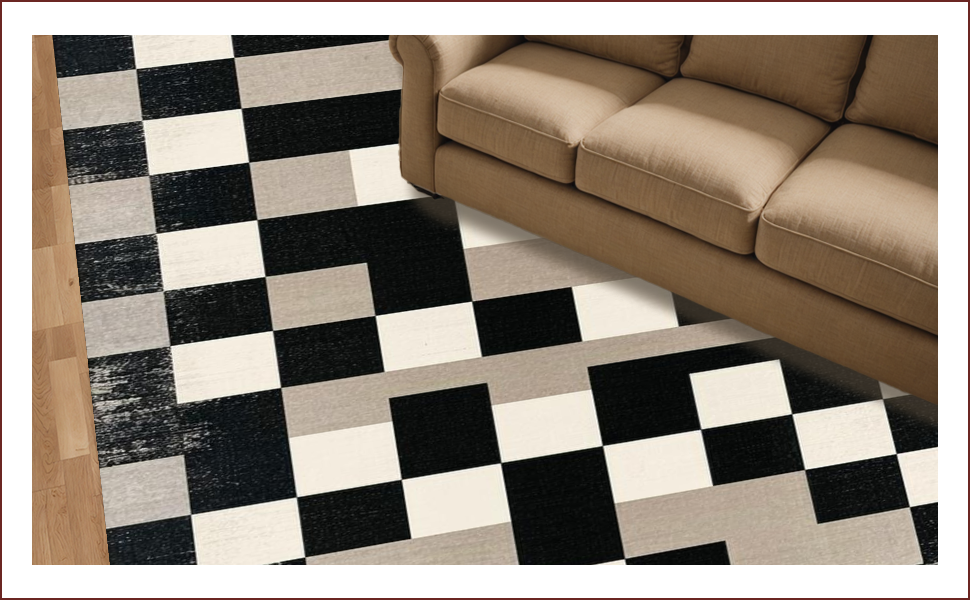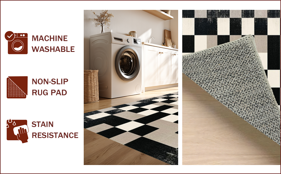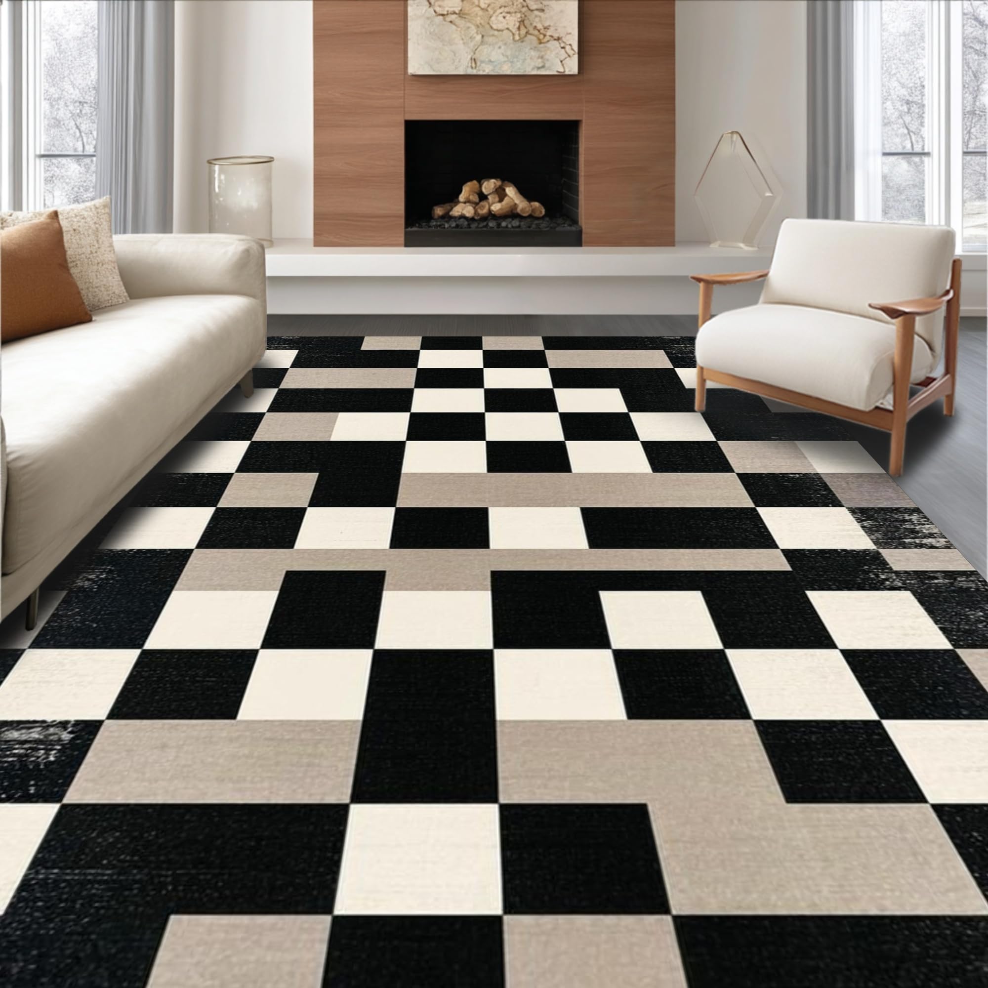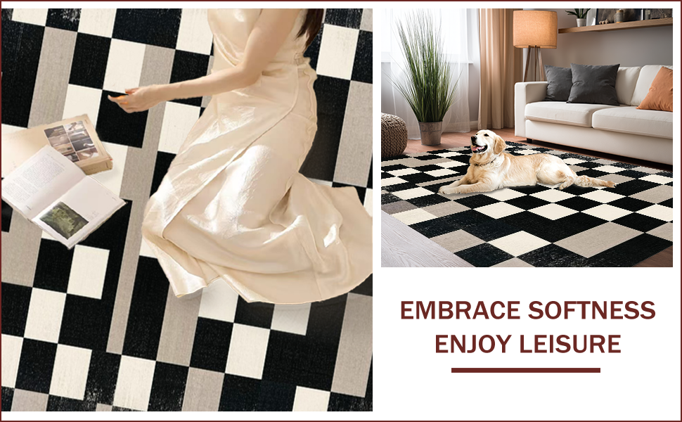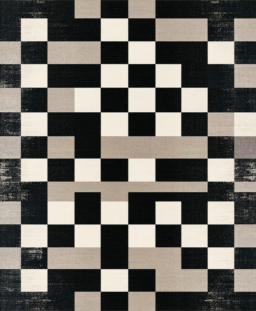 Ultra Soft Area Rug, Non Slip, Stain Resistant, Washable Area Rugs for Living Room, Bedroom, Elegant Monochrome Geometric Motif(Black) Overview: