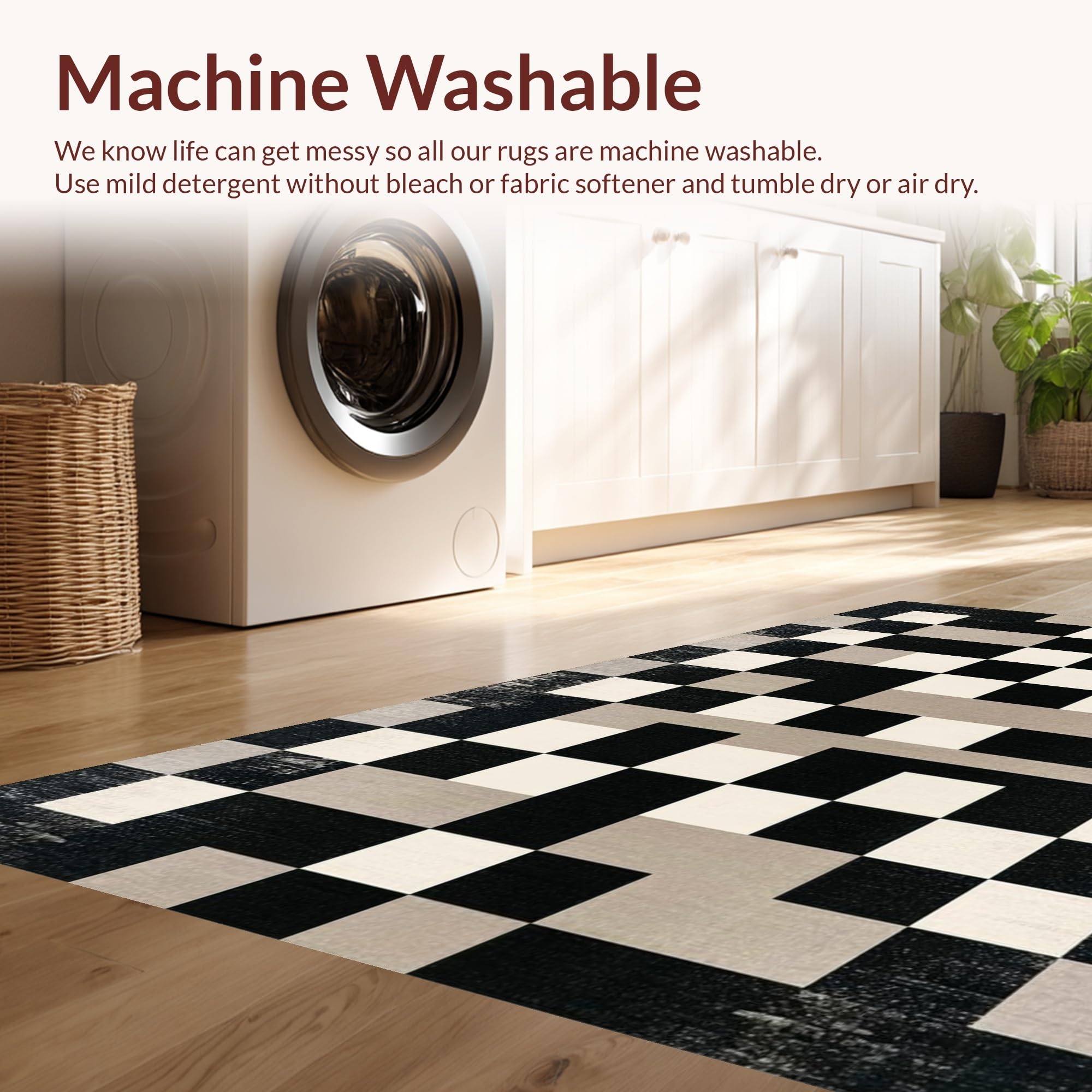 - Machine Washable: Our rugs can be easily thrown in the wash machine.