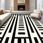 Elegant Monochrome Striped Area with Retro Vibes and Geometric Design(Beige)