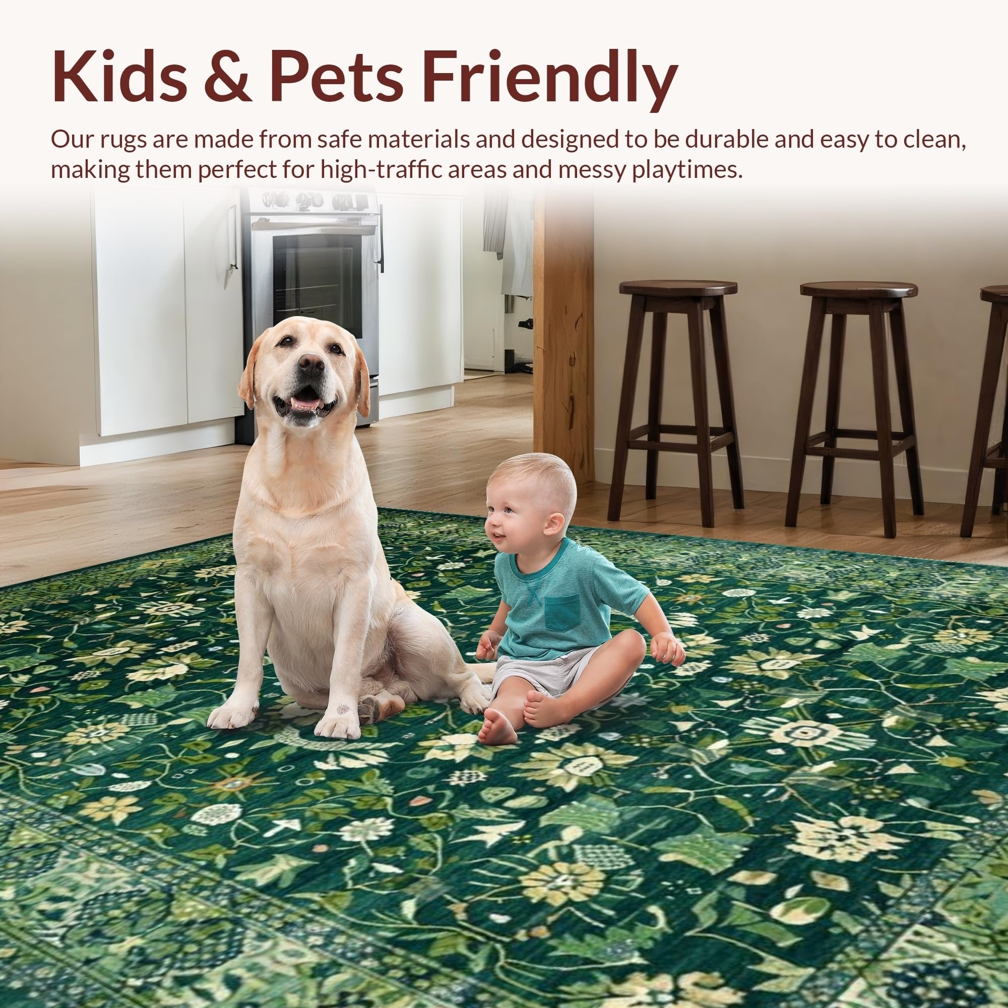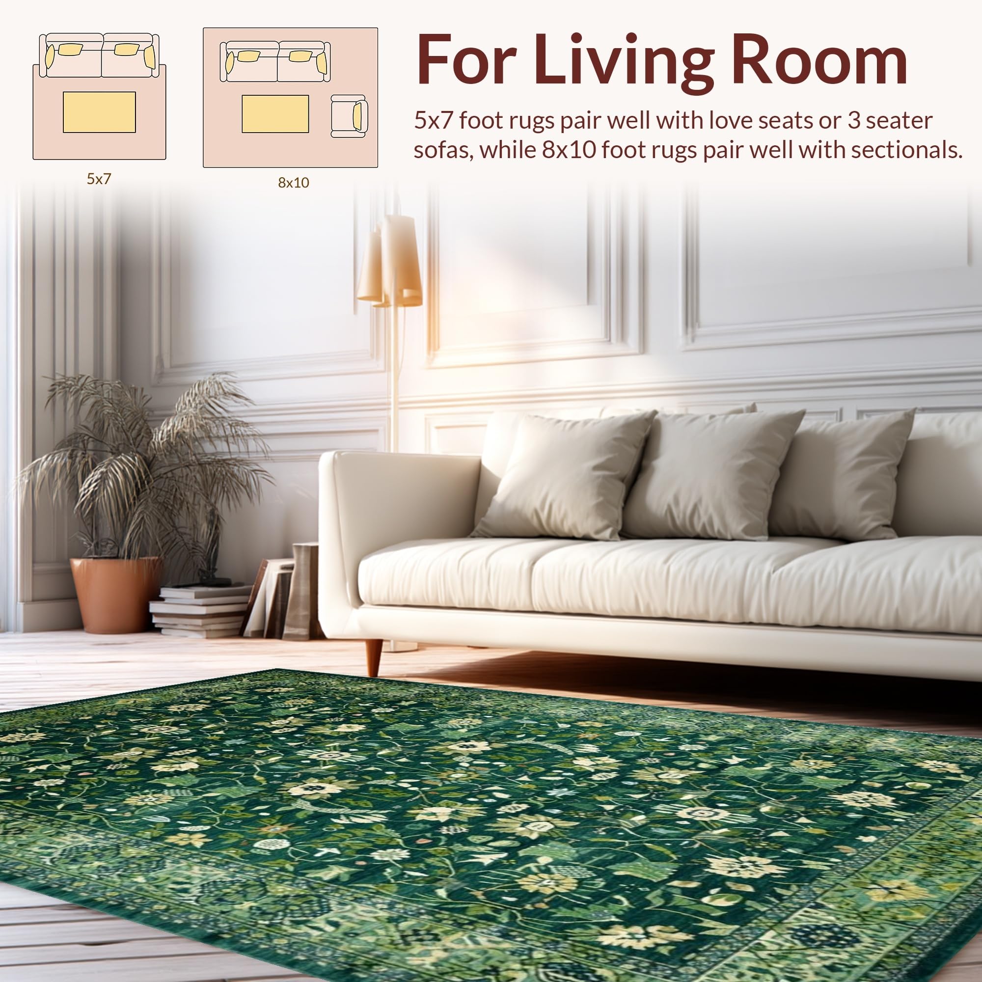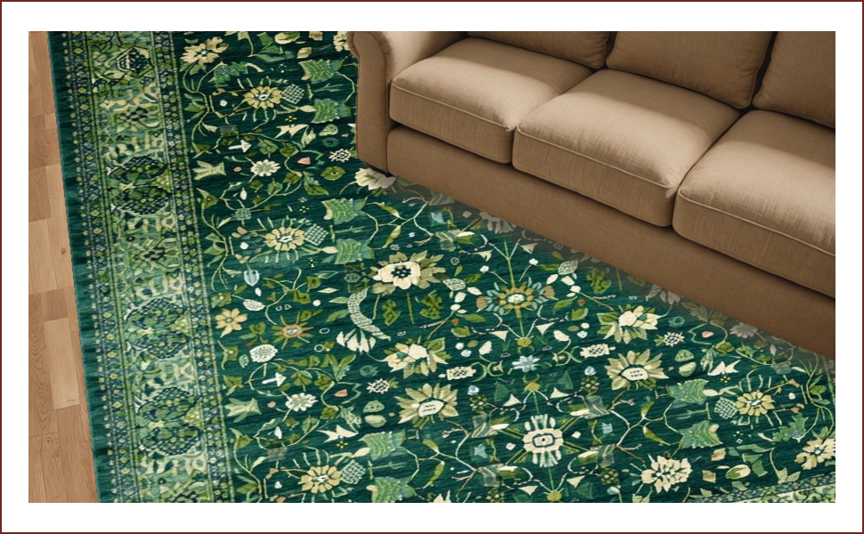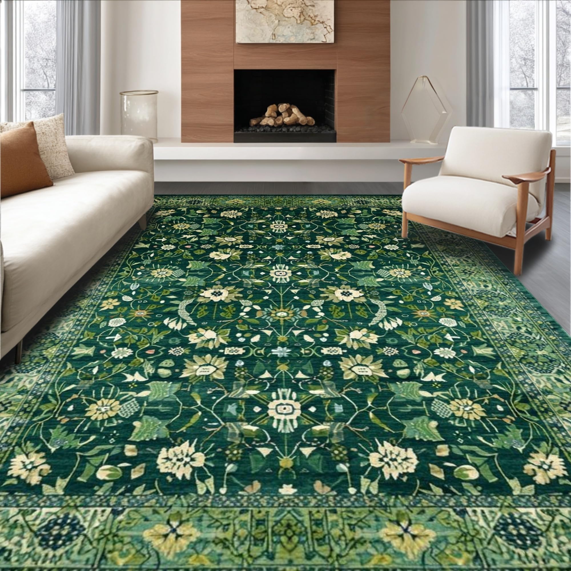 Ultra Soft Area Rug, Non Slip, Stain Resistant, Washable Area Rugs for Living Room, Bedroom, Elegant Moss-Tone Botanical Design(Green) Overview: