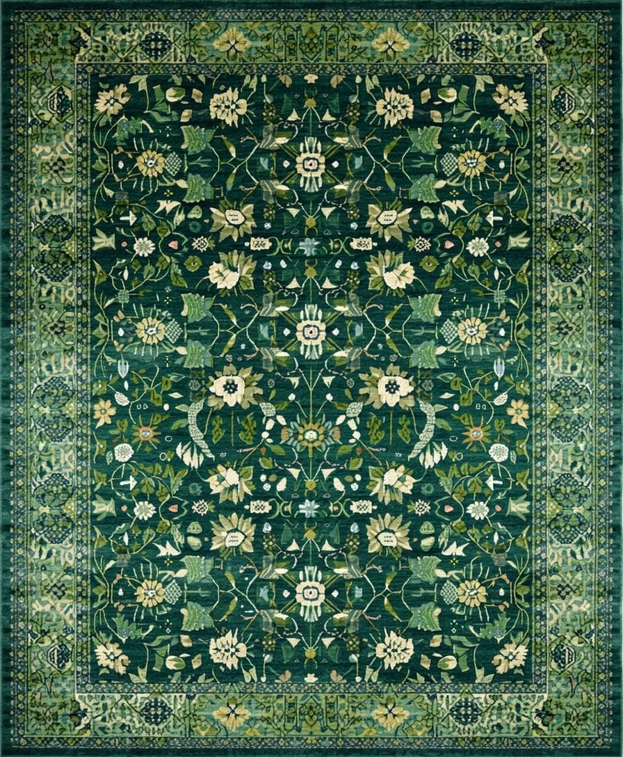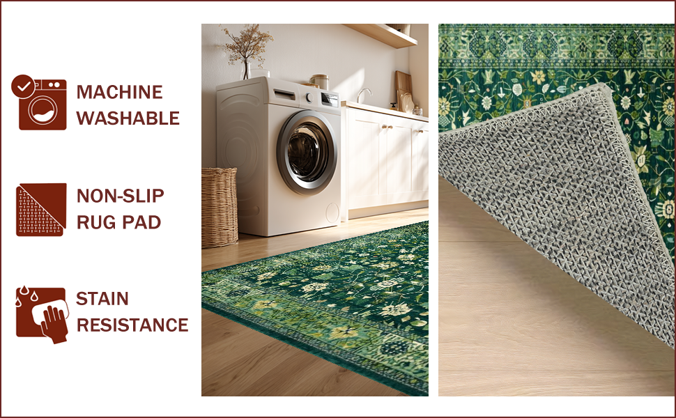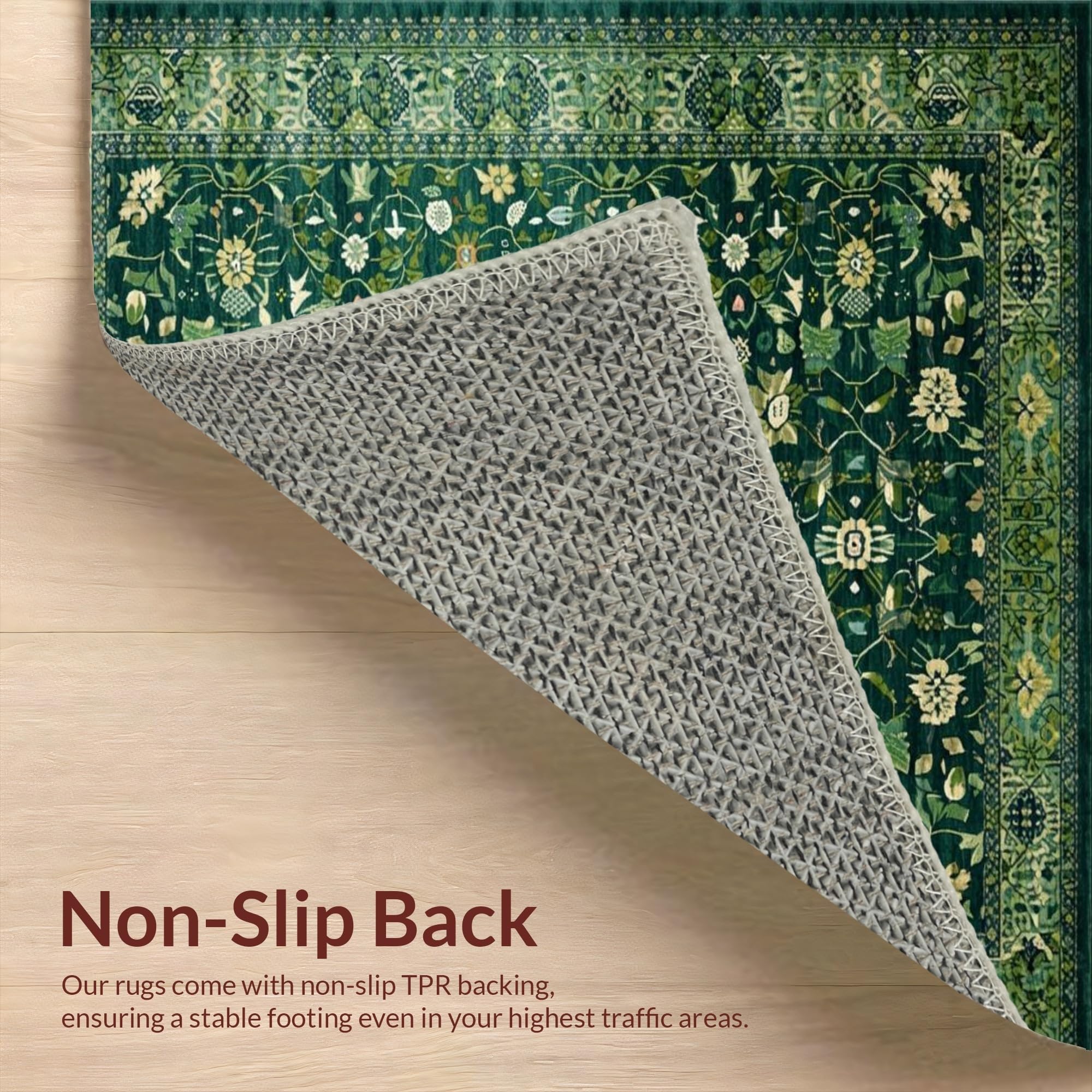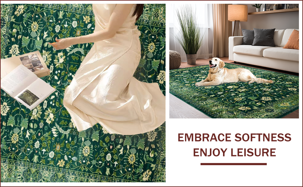Ultra Soft Area Rug, Non Slip, Stain Resistant, Washable Area Rugs for Living Room, Bedroom, Elegant Moss-Tone Botanical Design(Green) Overview: