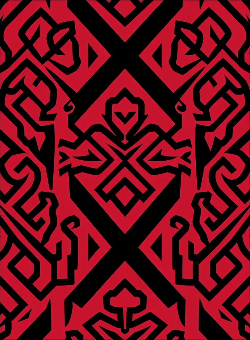 Elegant Motif Featuring Interlocking Chevron and Shapes(Red)