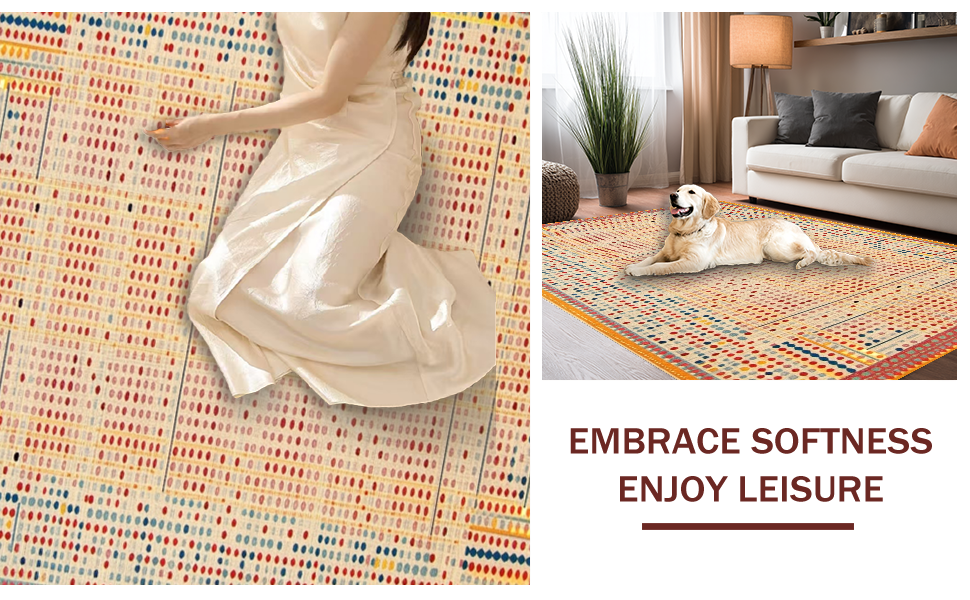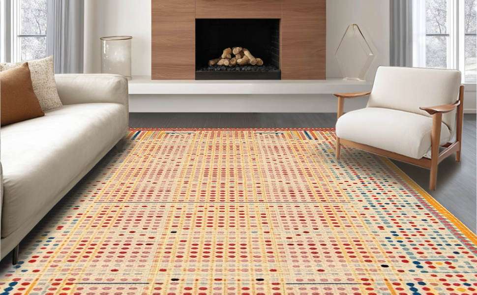 Ultra Soft Area Rug, Non Slip, Stain Resistant, Washable Area Rugs for Living Room, Bedroom, Elegant Multi-Hued Dot Composition(Red) Overview: