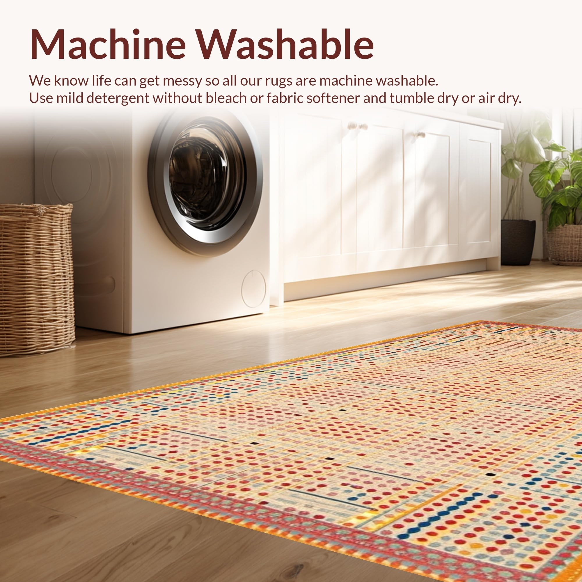 - Machine Washable: Our rugs can be easily thrown in the wash machine.