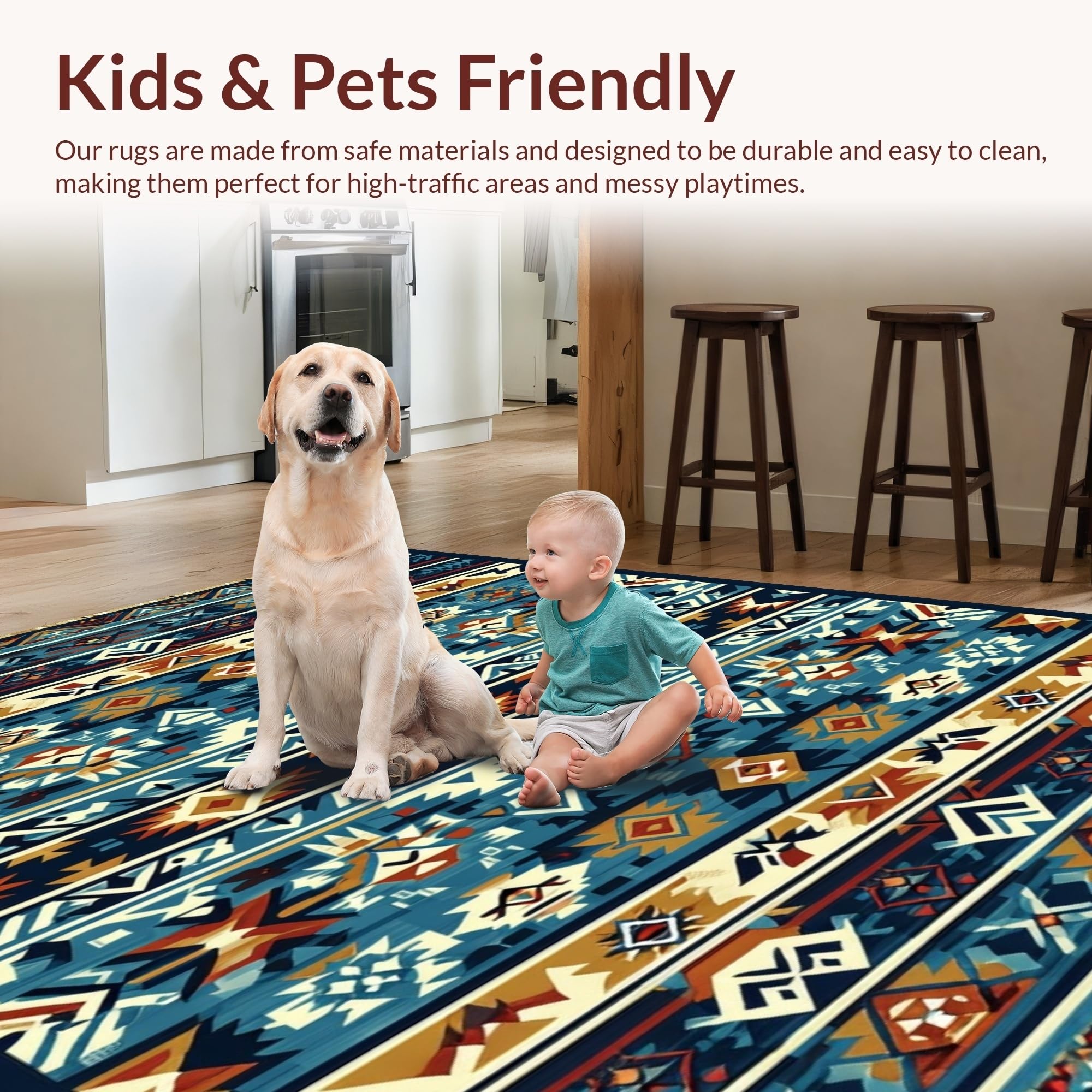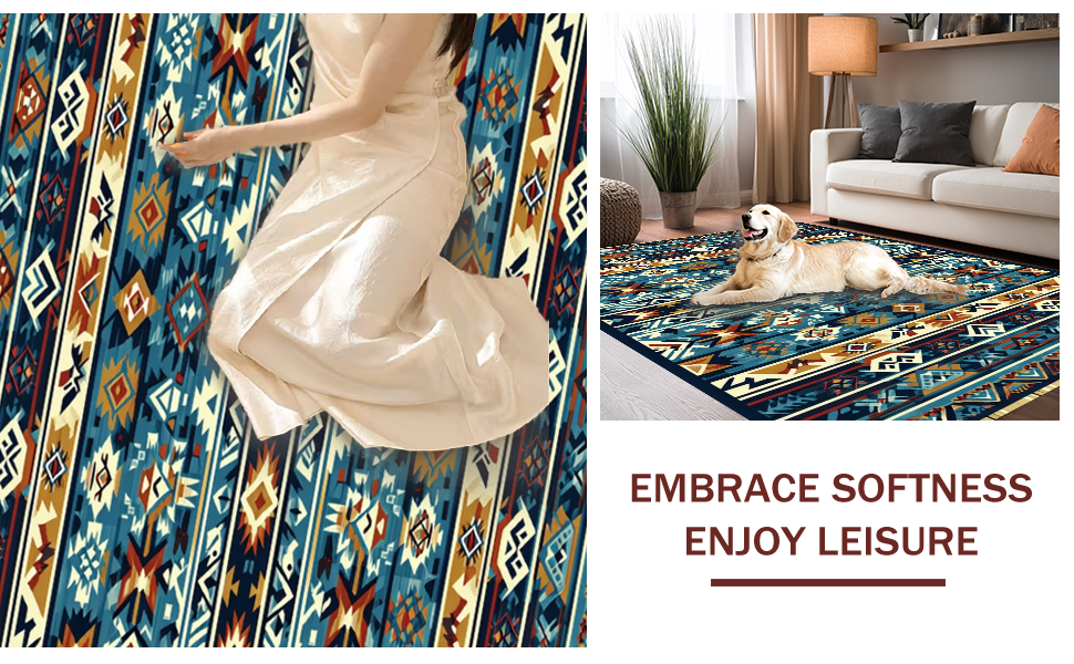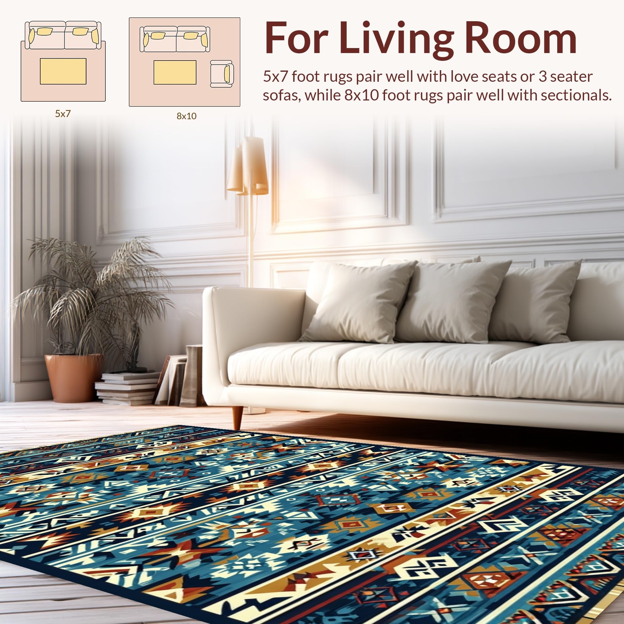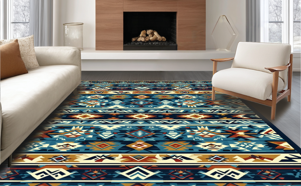 Ultra Soft Area Rug, Non Slip, Stain Resistant, Washable Area Rugs for Living Room, Bedroom, Elegant Native American Design Influence(Blue) Overview: