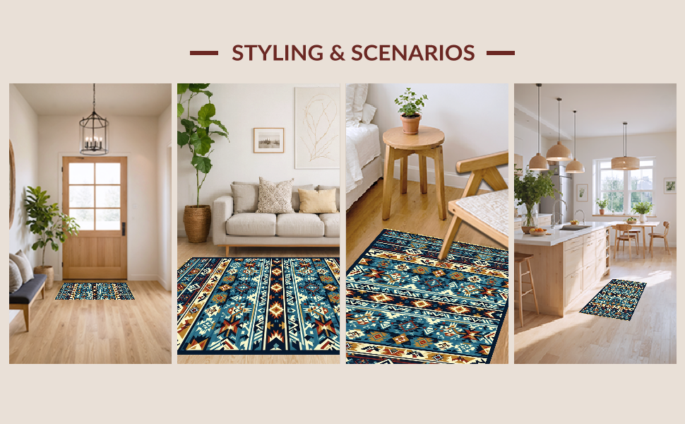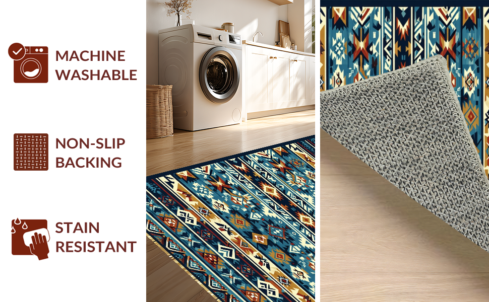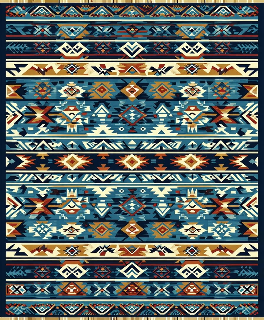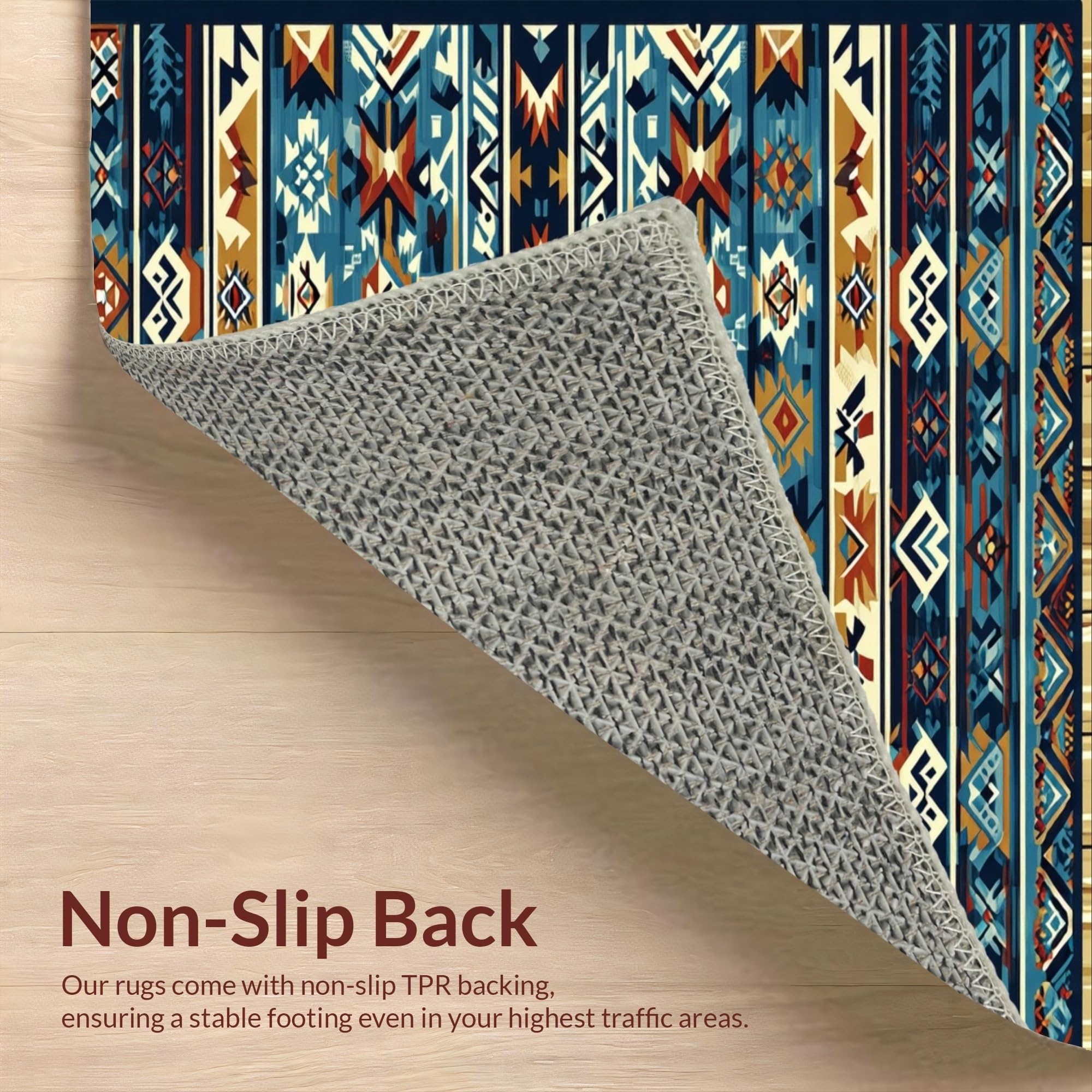 Ultra Soft Area Rug, Non Slip, Stain Resistant, Washable Area Rugs for Living Room, Bedroom, Elegant Native American Design Influence(Blue) Overview: