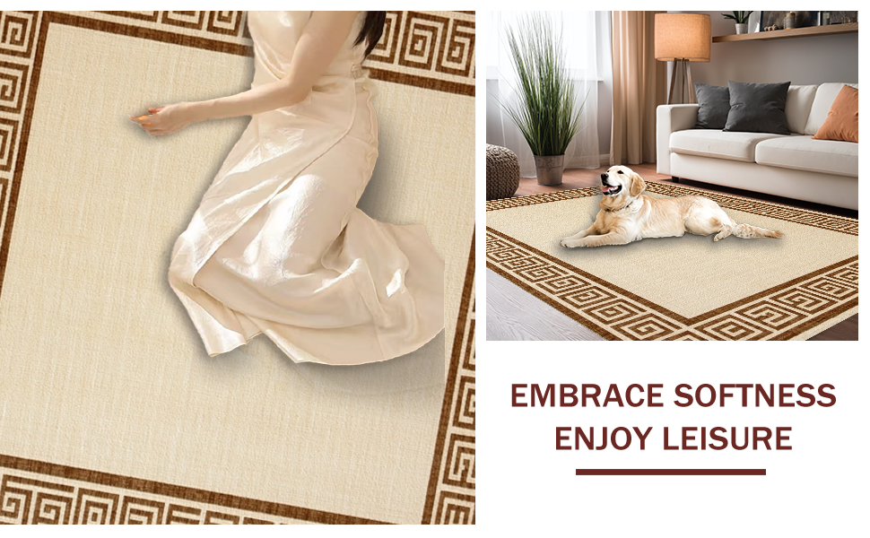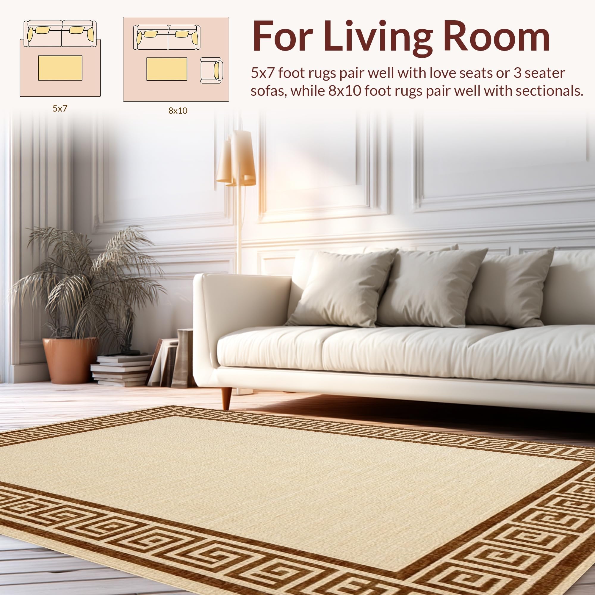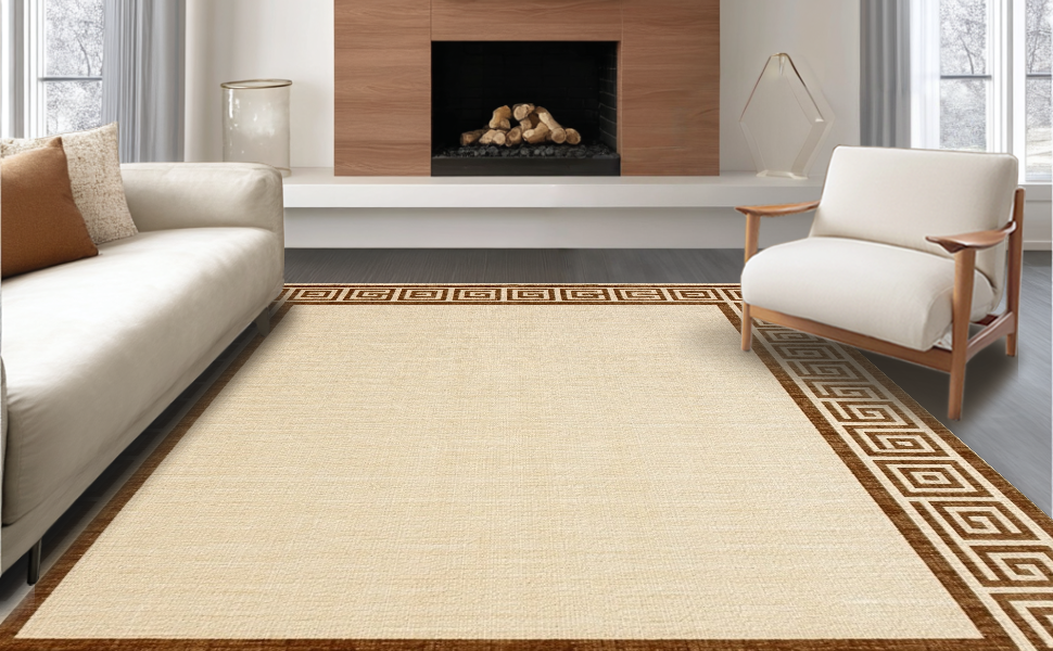 Ultra Soft Area Rug, Non Slip, Stain Resistant, Washable Area Rugs for Living Room, Bedroom, Elegant Natural Fiber Trellis Motif(Beige) Overview: