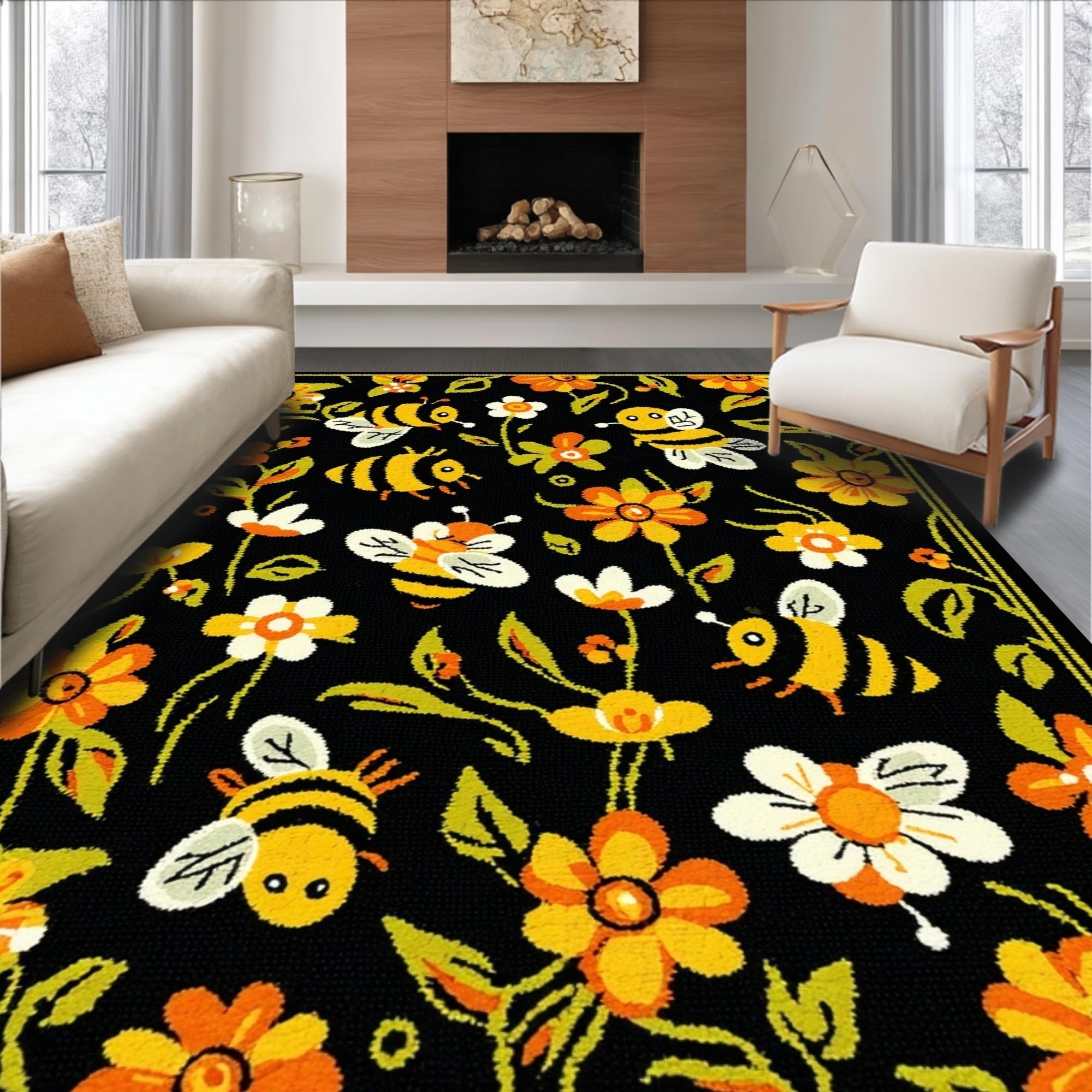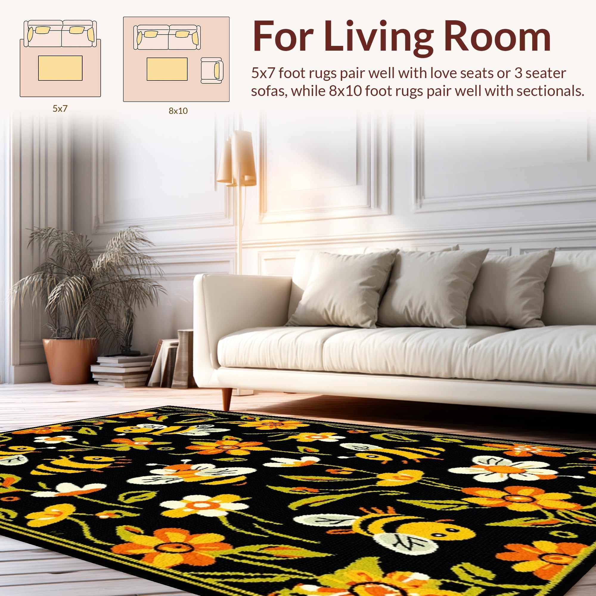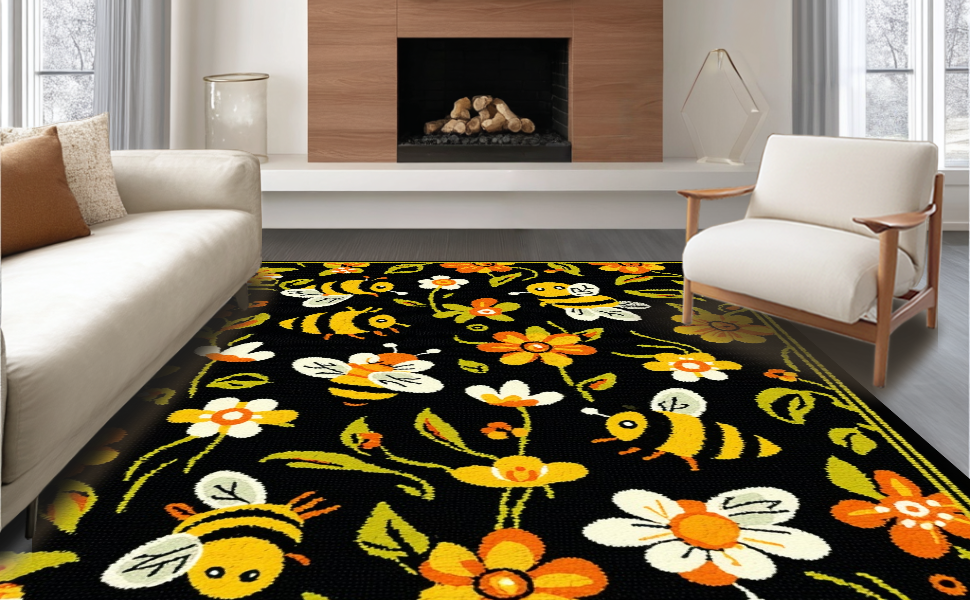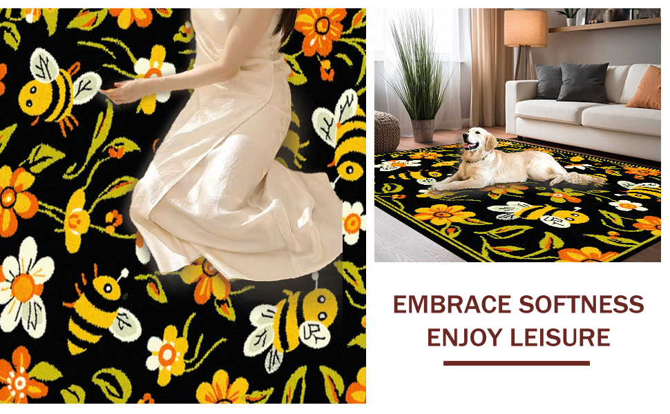 Ultra Soft Area Rug, Non Slip, Stain Resistant, Washable Area Rugs for Living Room, Bedroom, Elegant Nature-Inspired Curves(Black) Overview:
